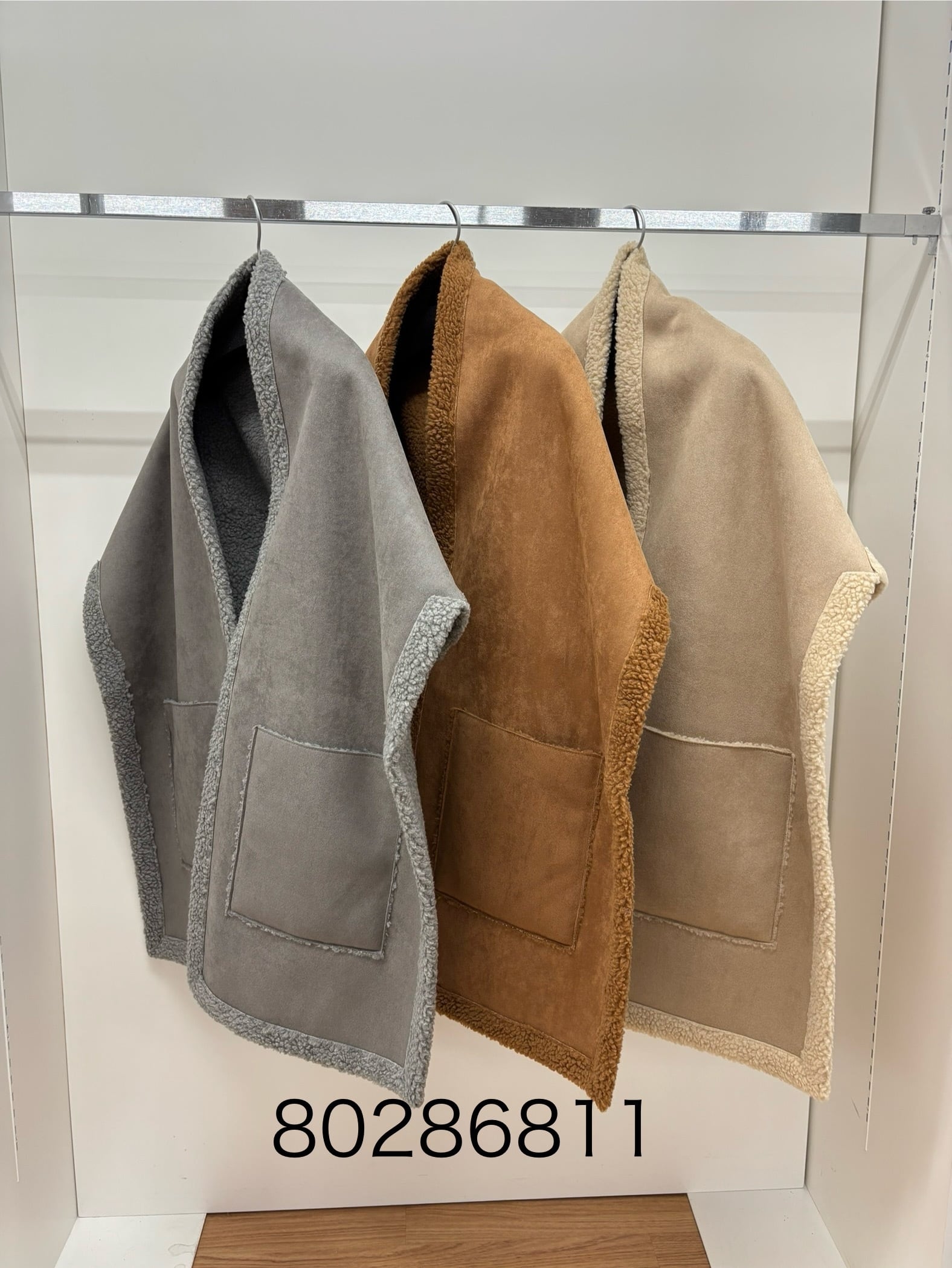 大きなポケットが付いた両面使えるエコムートンショール登場!