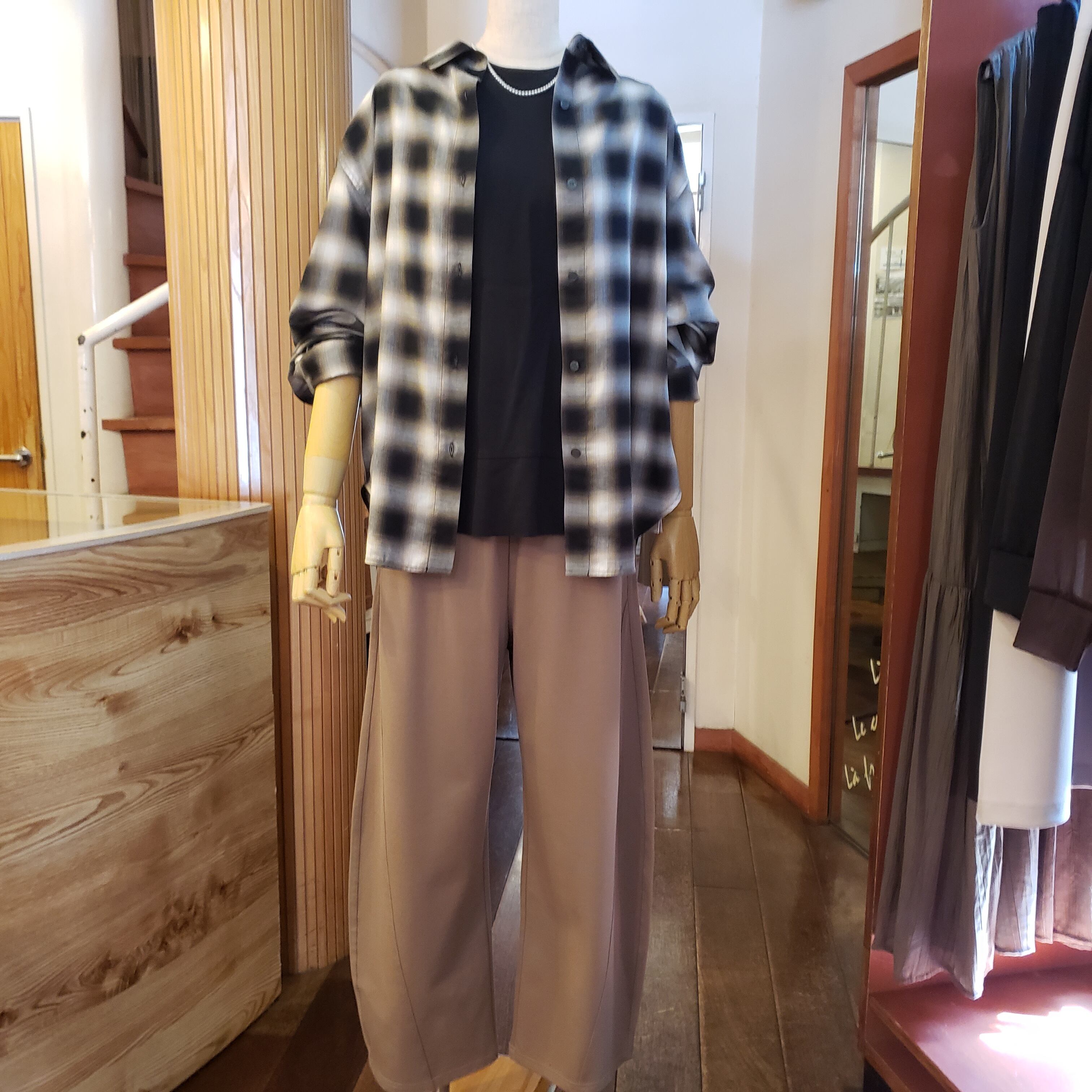羽織りとしても、一枚でオーバーシャツ風に着ても秋を感じさせるコーディネートが完成!