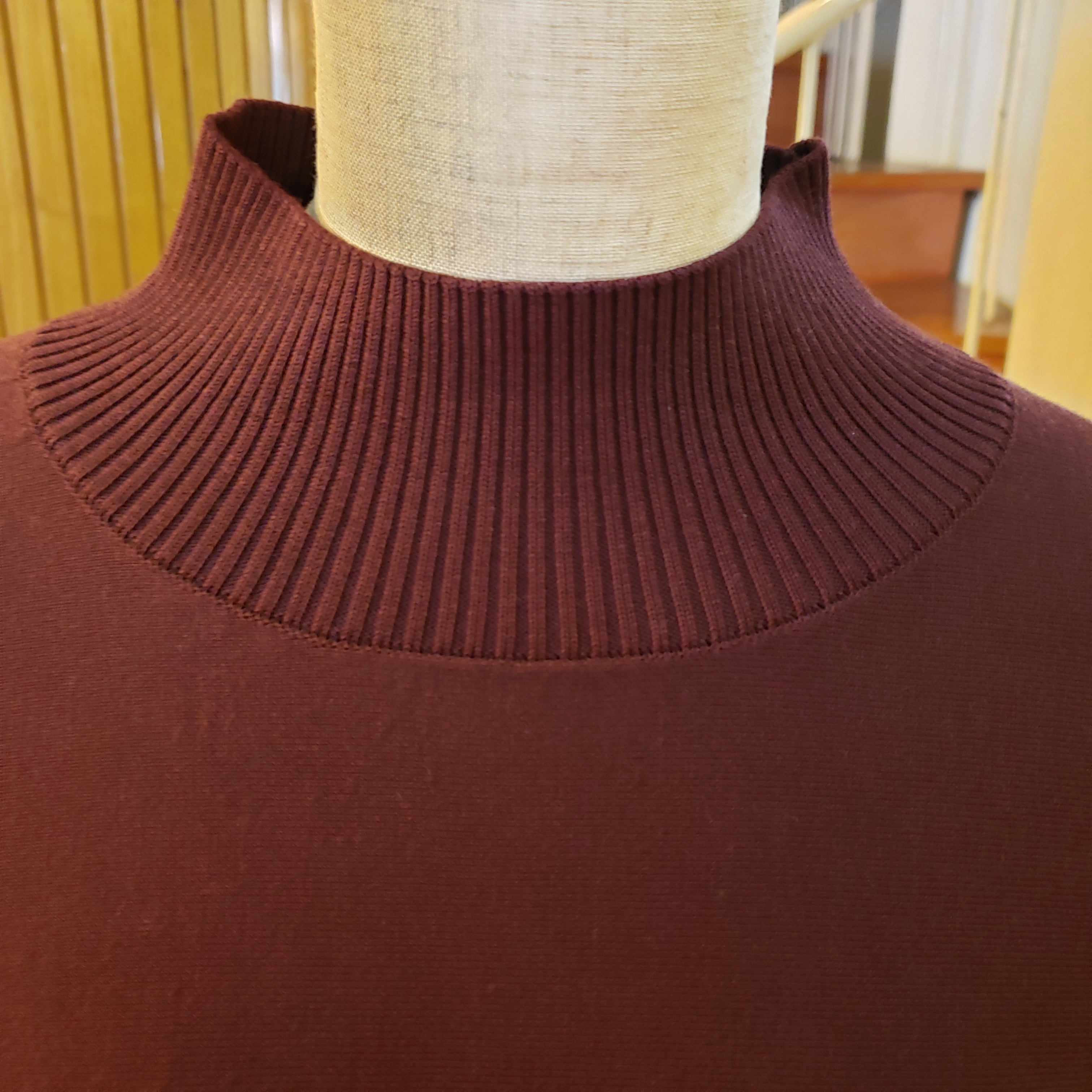 衿、袖、裾はリブ編み仕様。一枚あると頼りになる大人の上質ニットです。