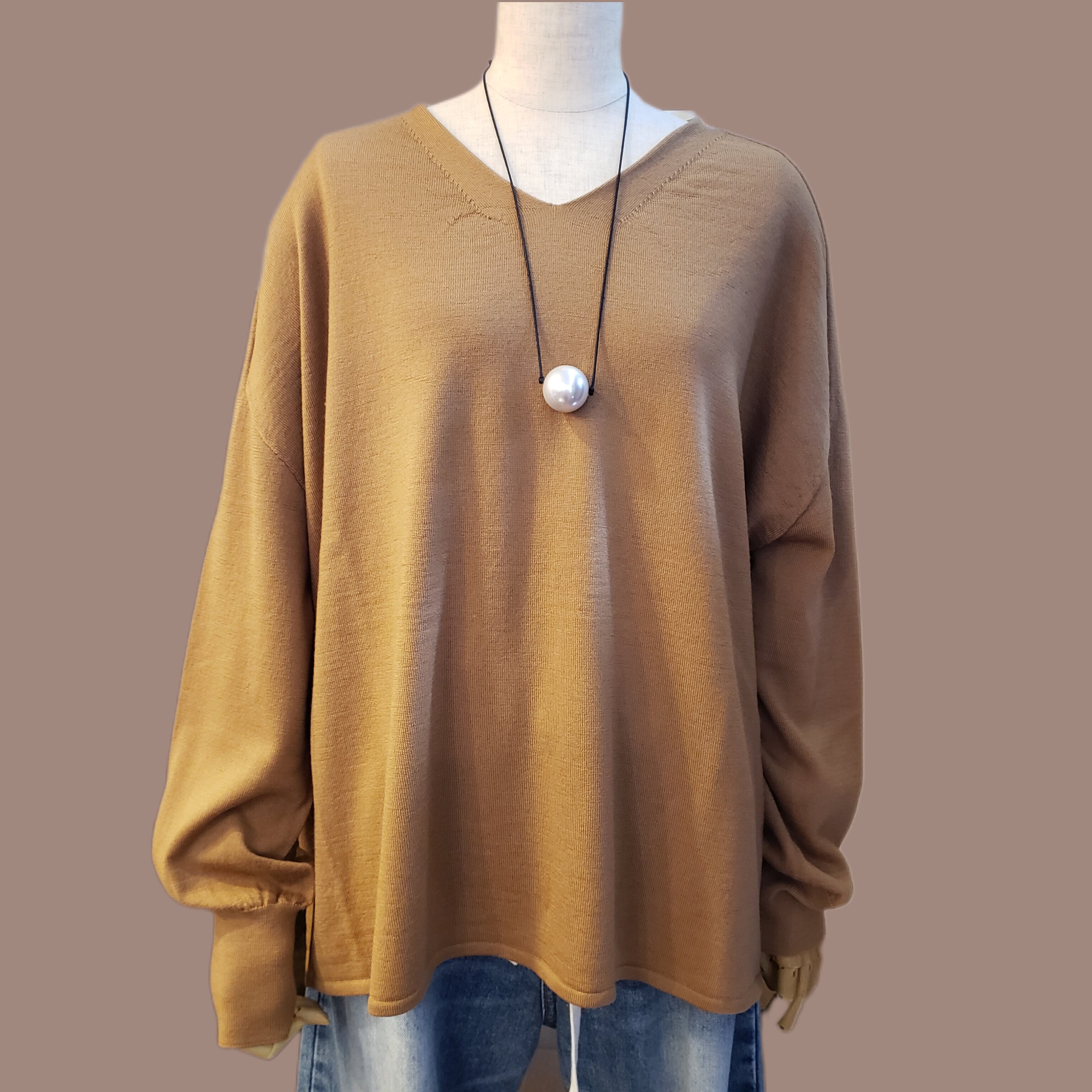 上品な開きのVネックが女性らしく、ニットの良さを存分に堪能出来ますよ。