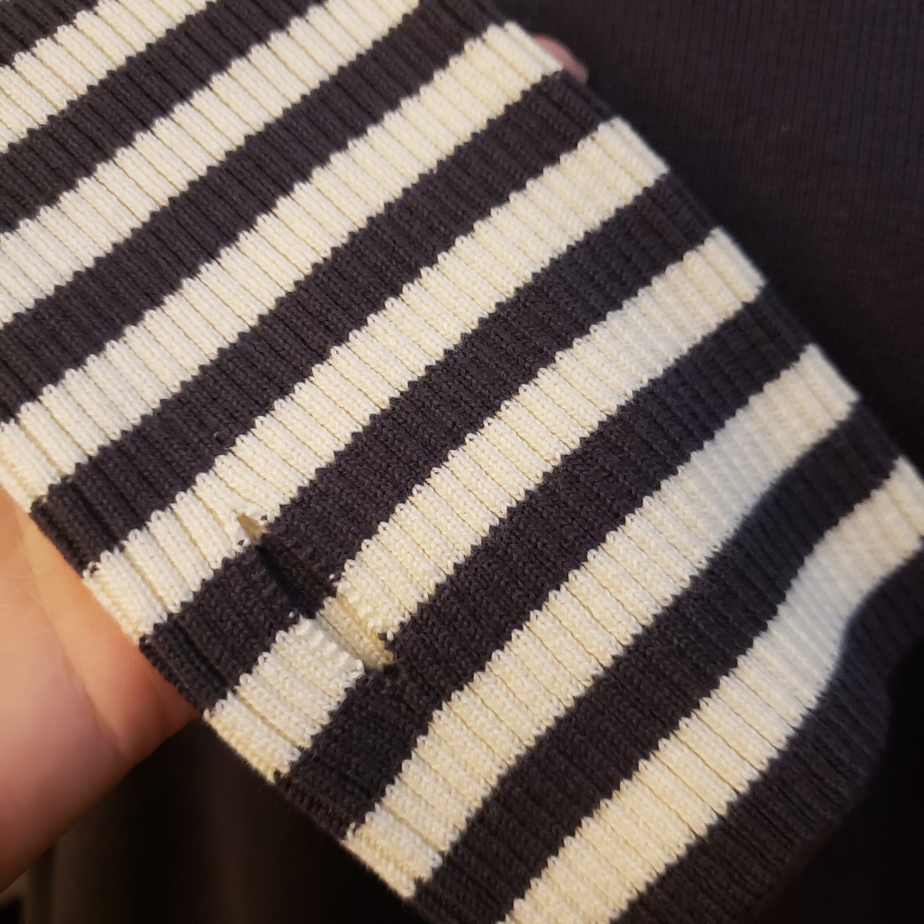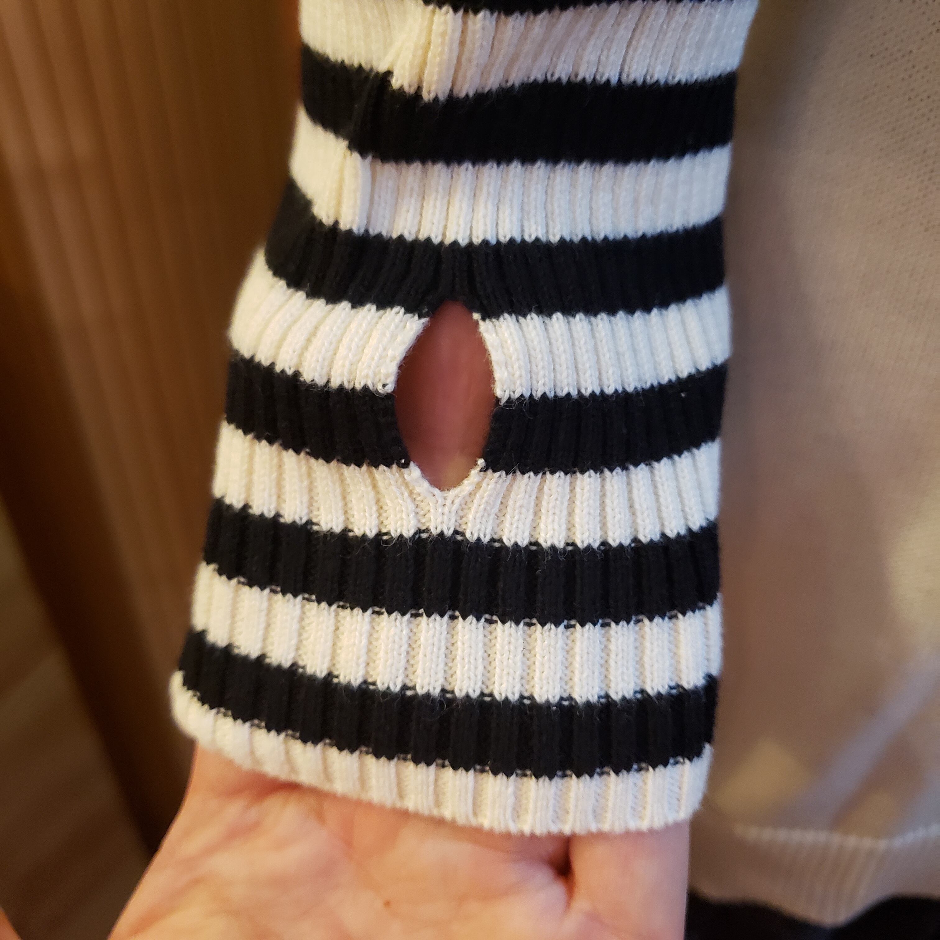 袖口のボーダーリブは長めで指が出せる仕様です。