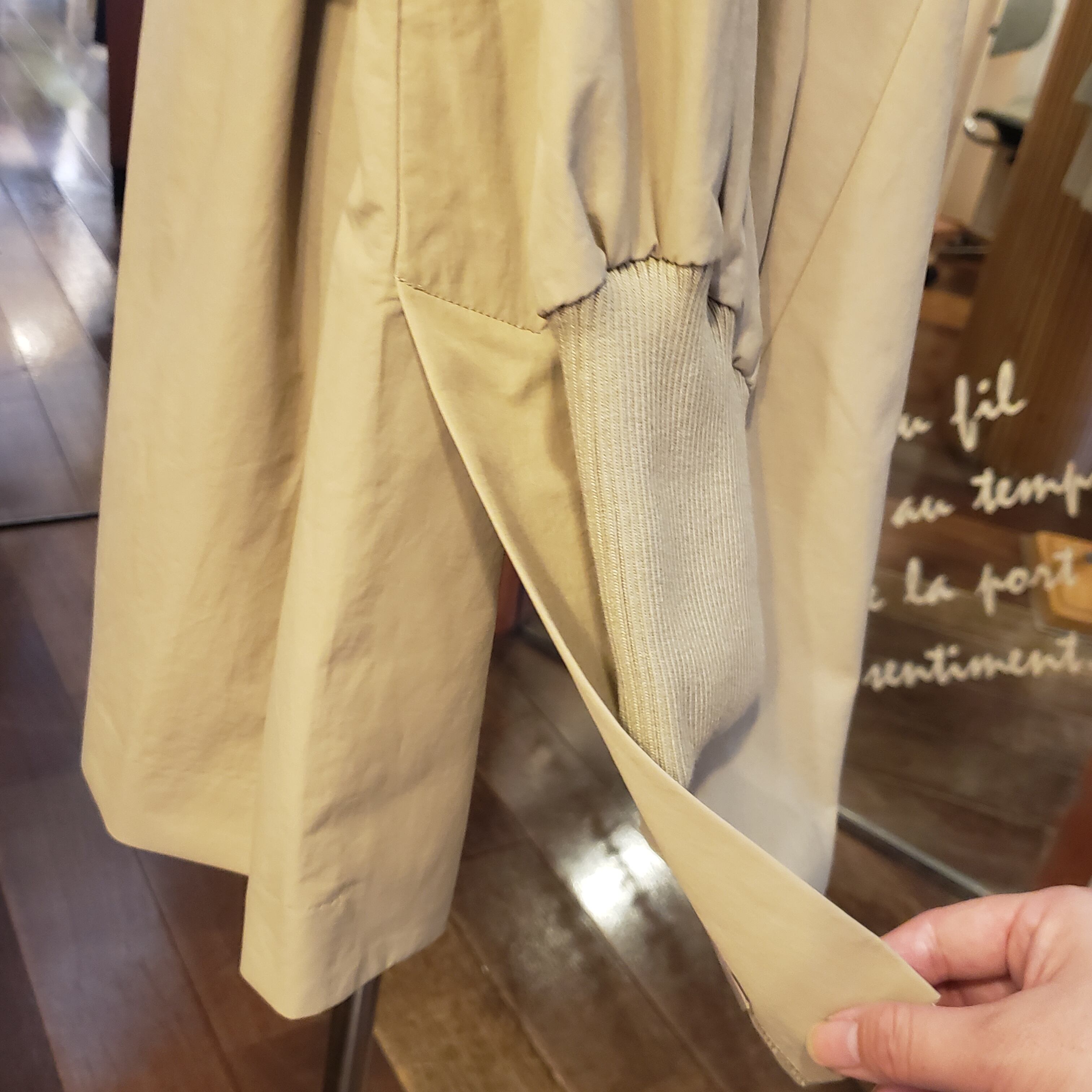 袖リブも斜めにカッティングされ、捲し上げた時のフォルムが素敵!