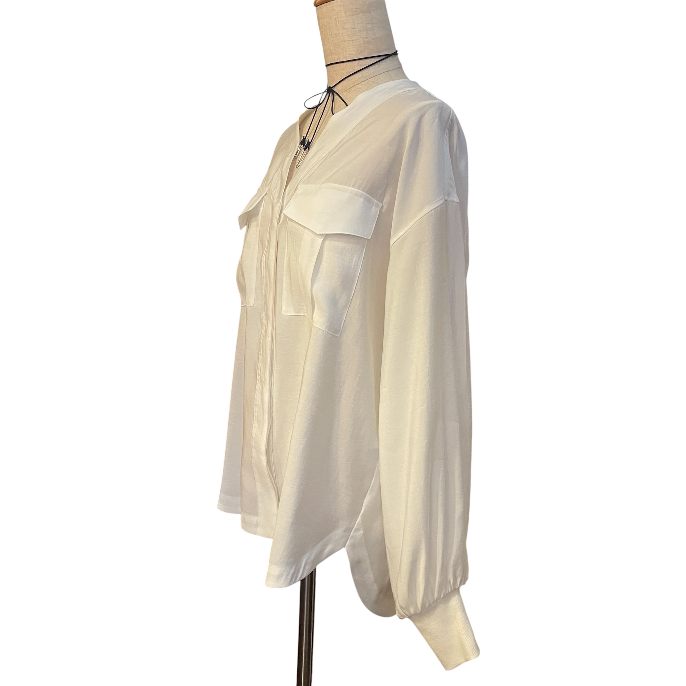 微光沢が上品なモダールブロード素材を使用したVネック。