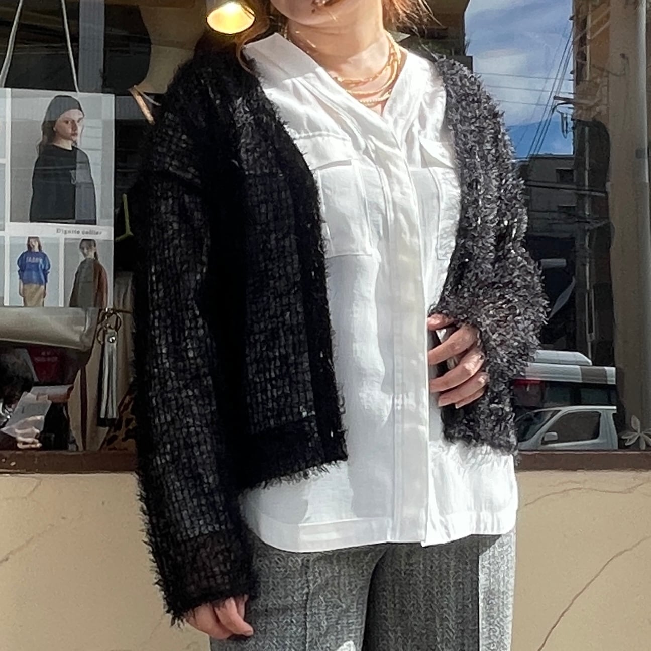 左右のフラップポケットと袖口リブ仕様等、ボタンを開けてブルゾン風に羽織つて