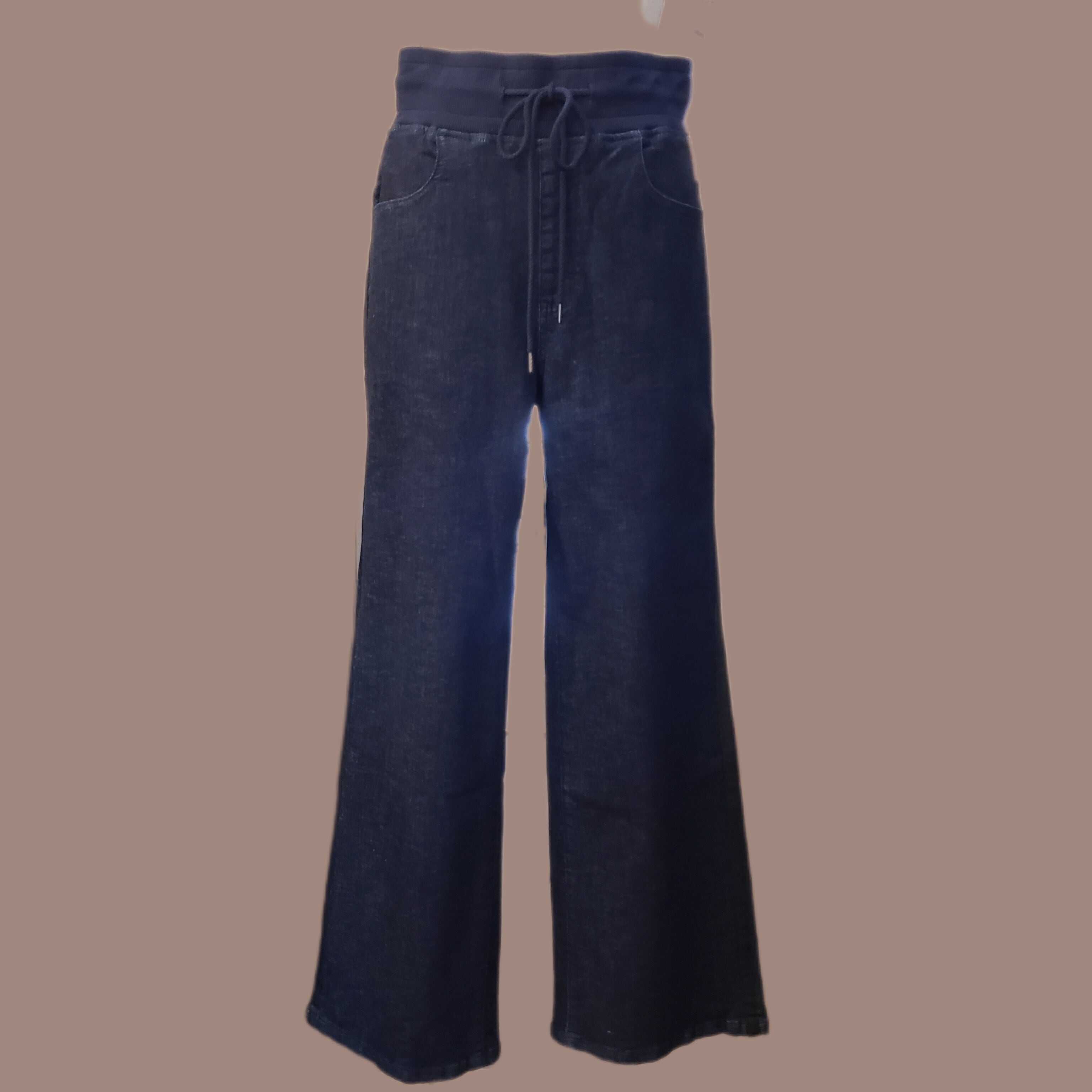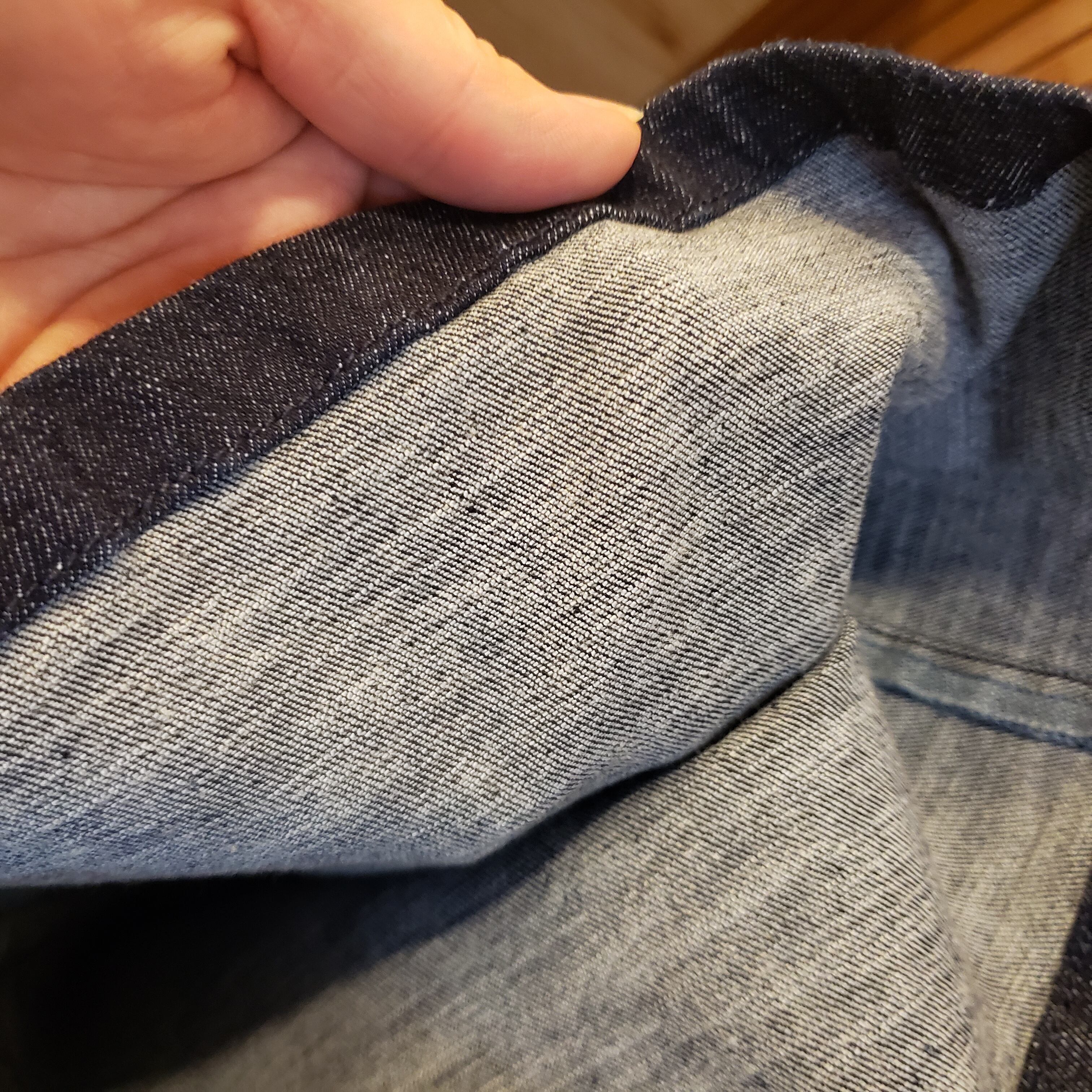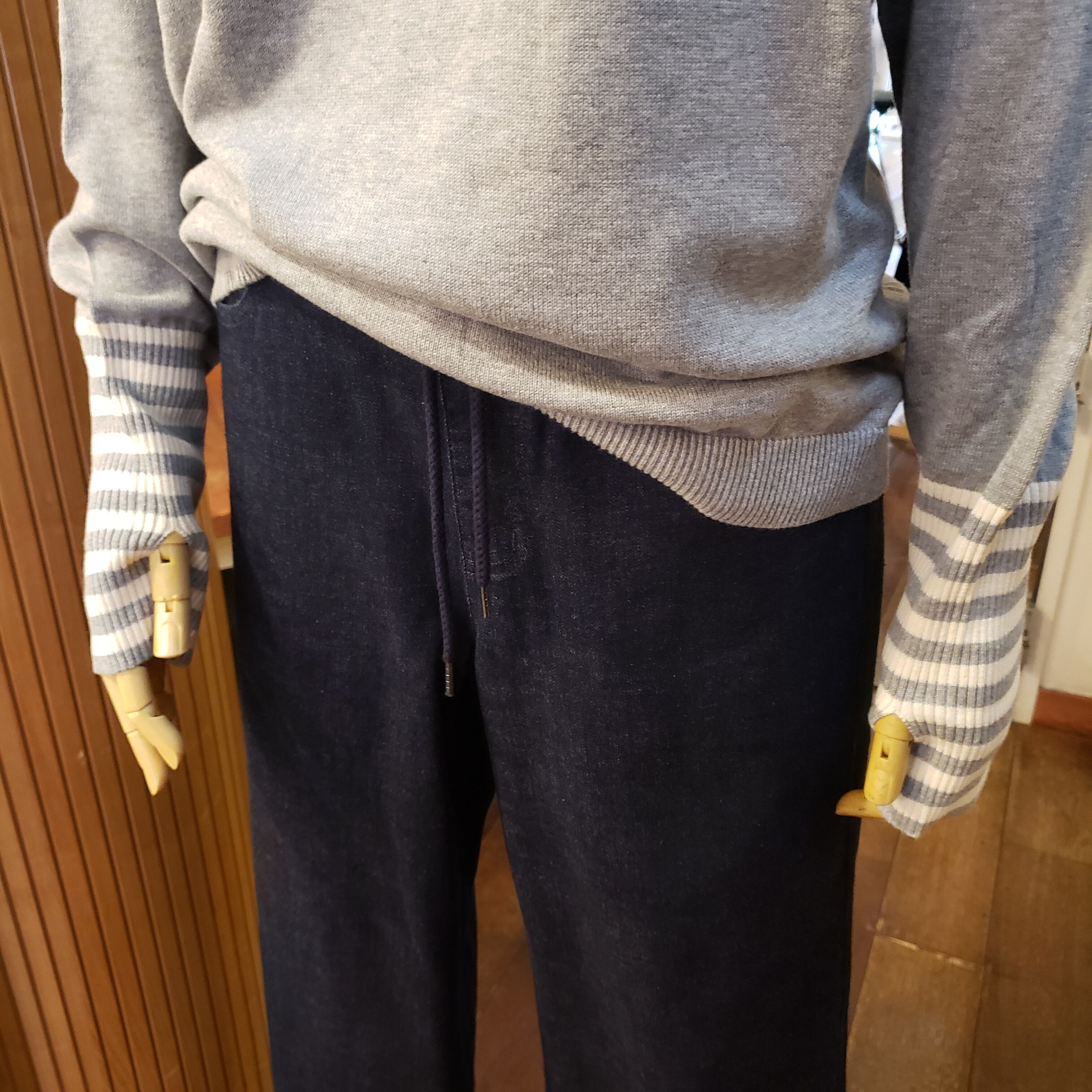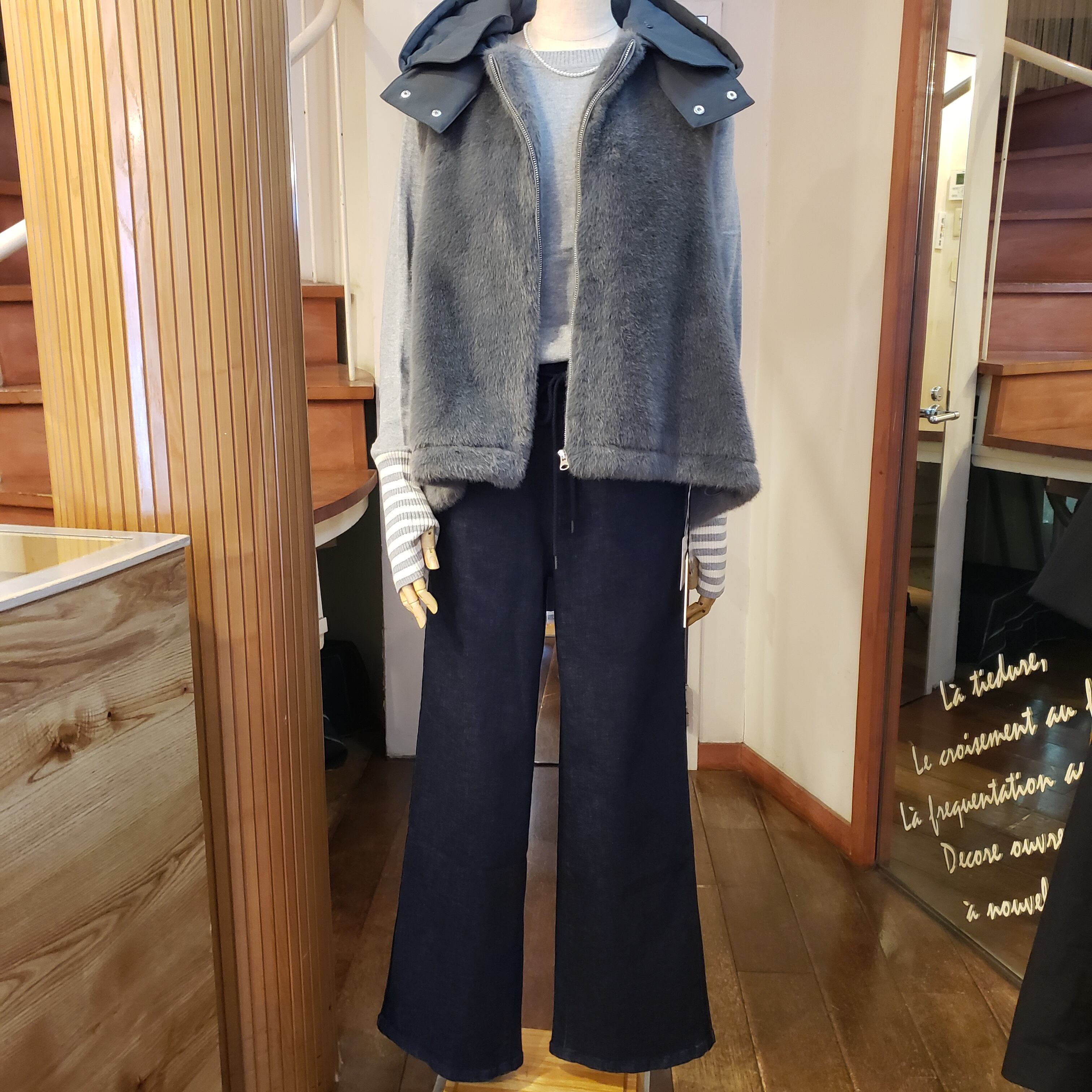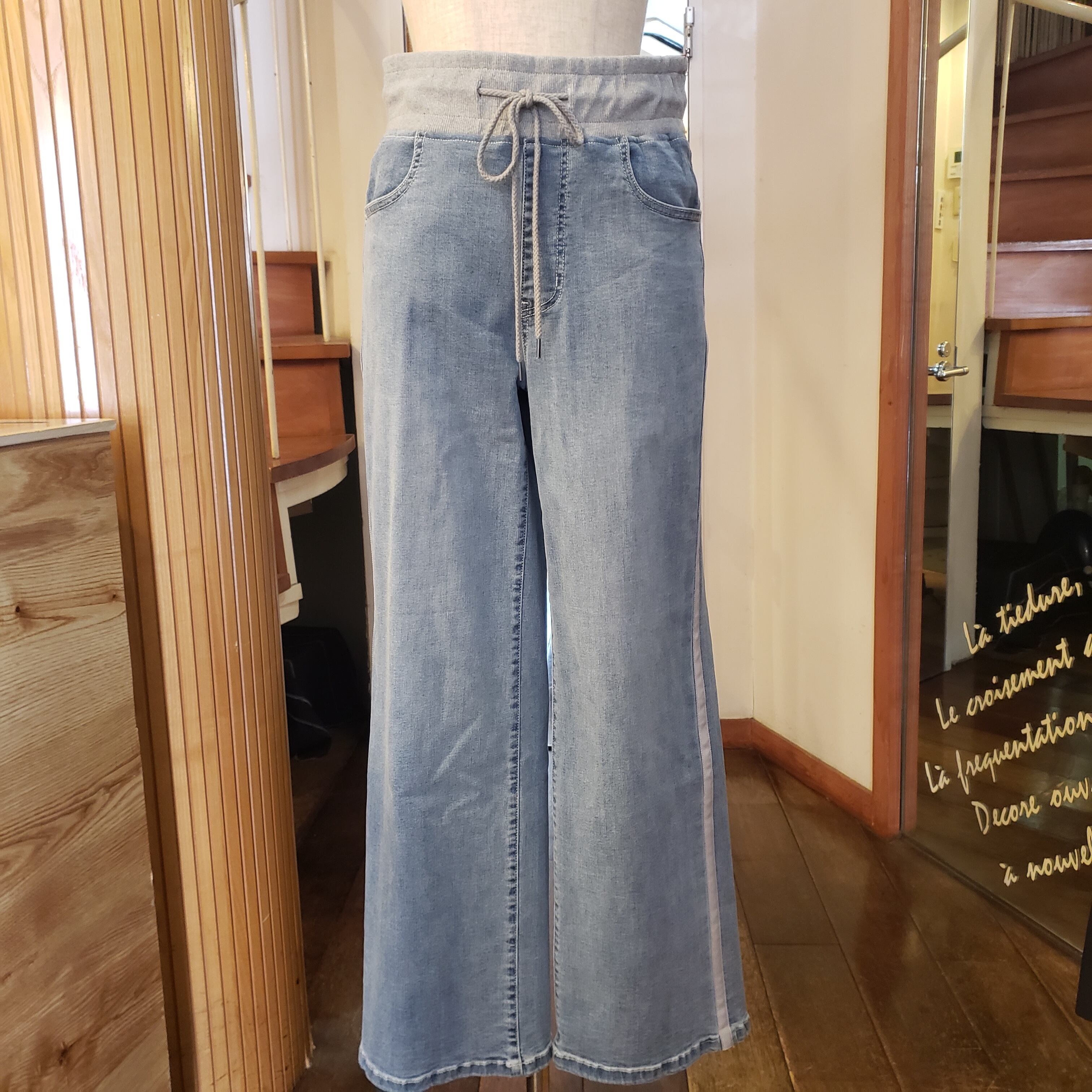 裾に向けわずかに広がる脚長美人効果大のデニム。両サイドのグログランテープ使いの
