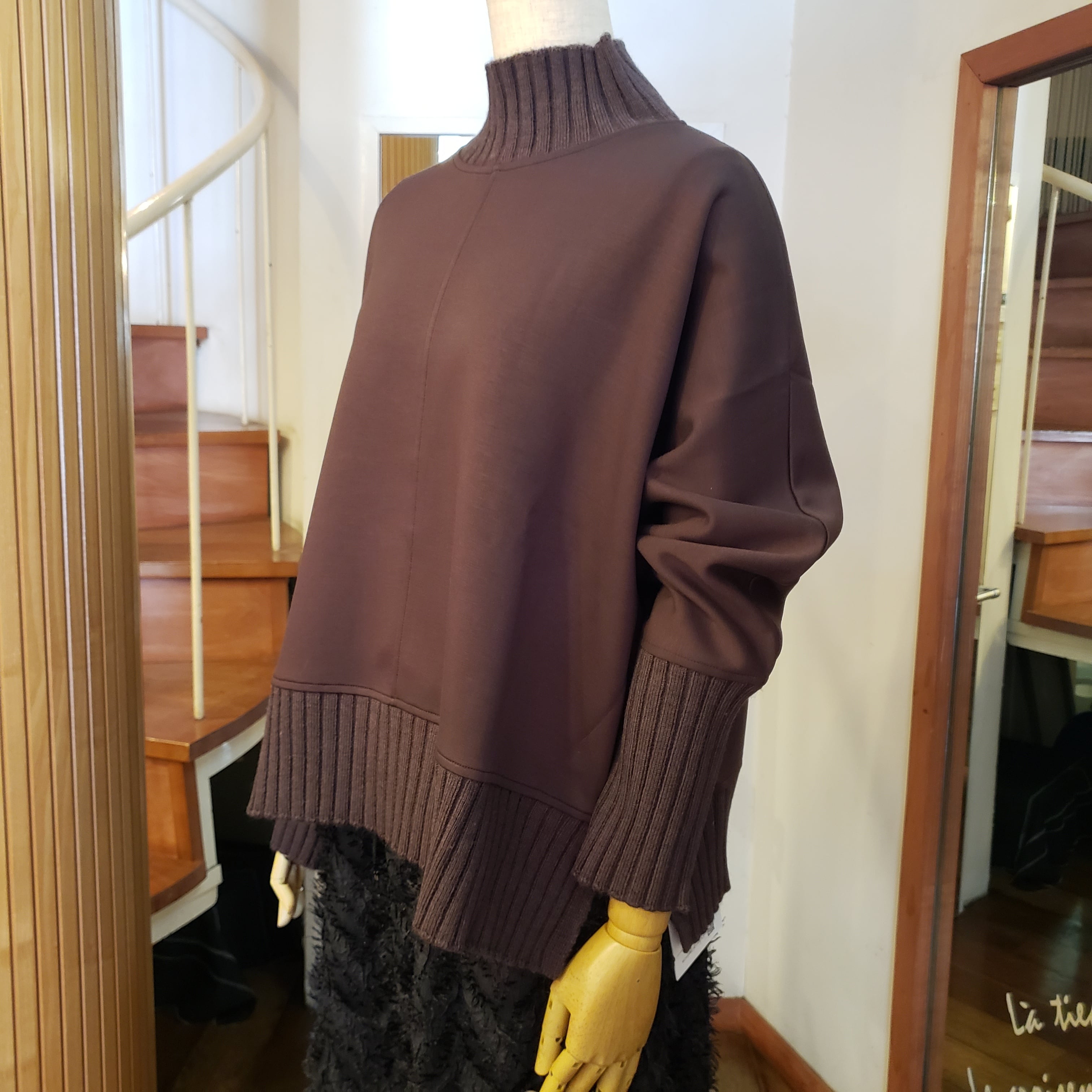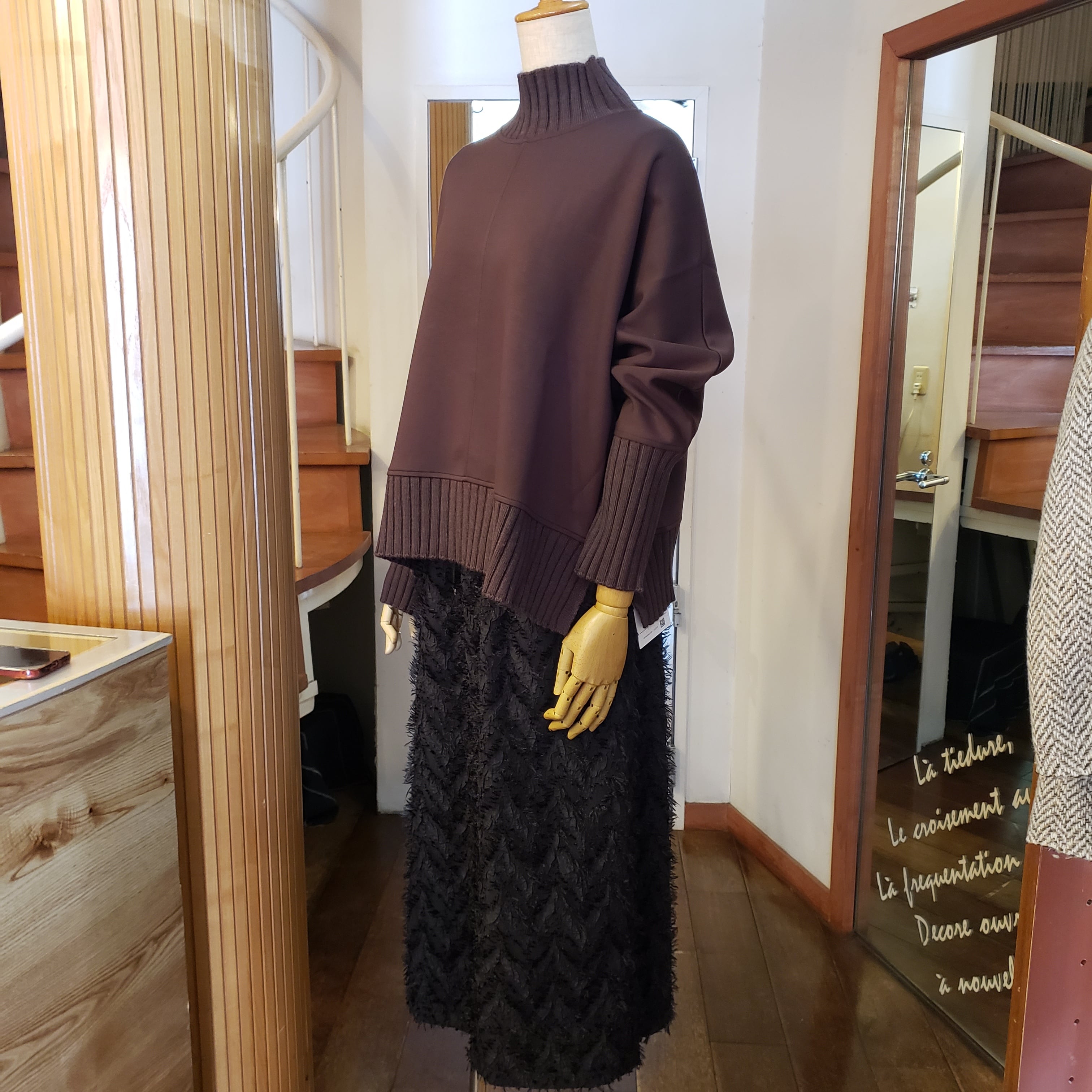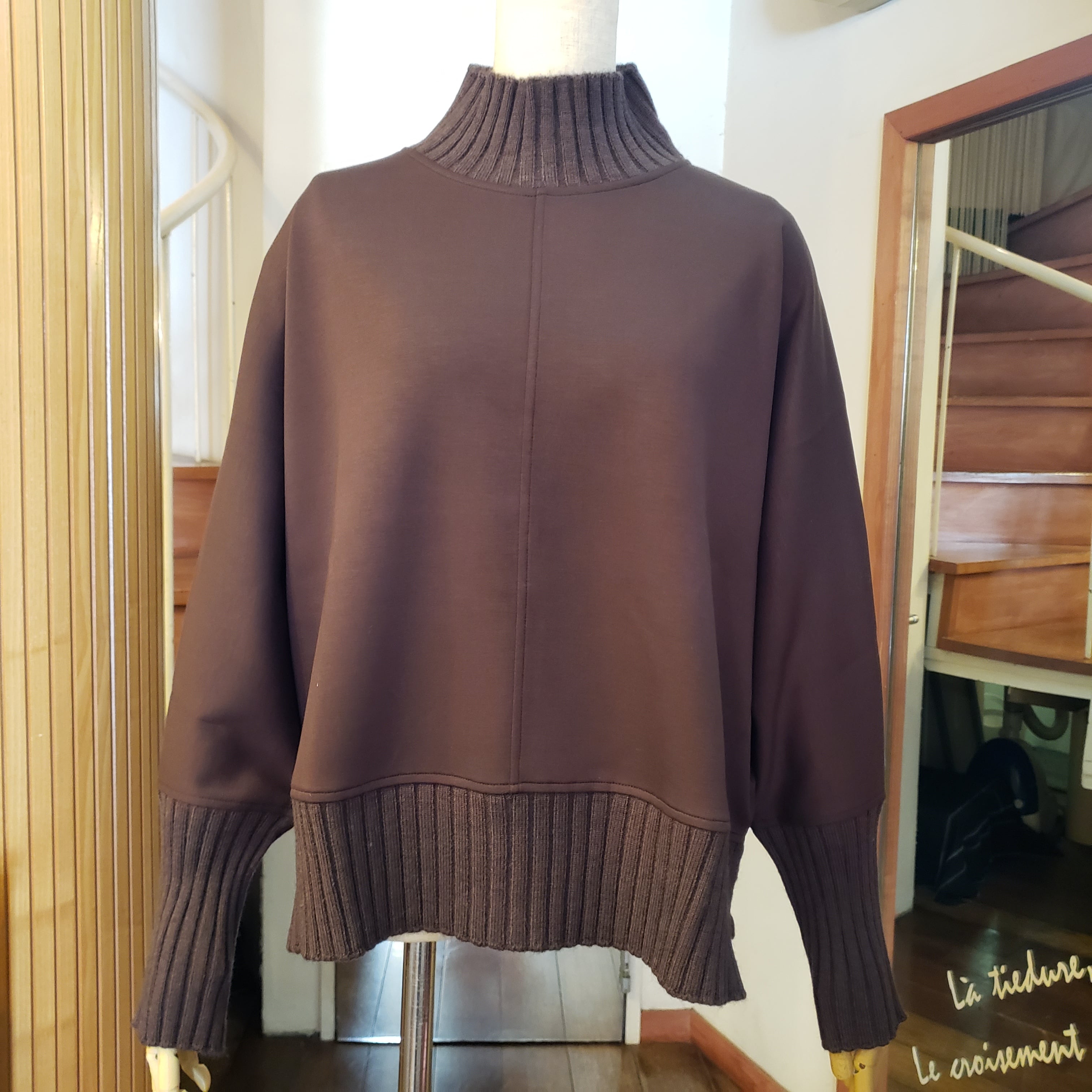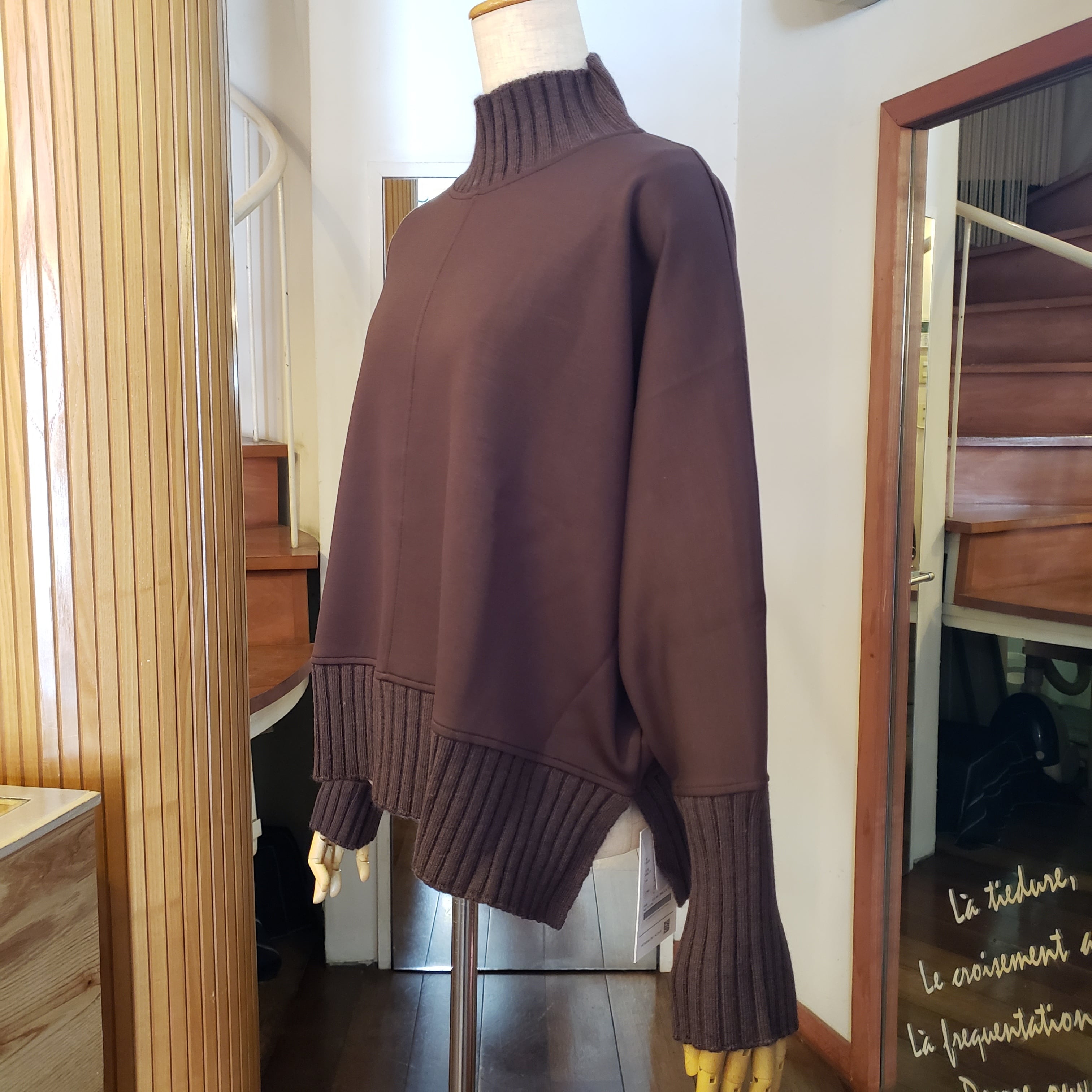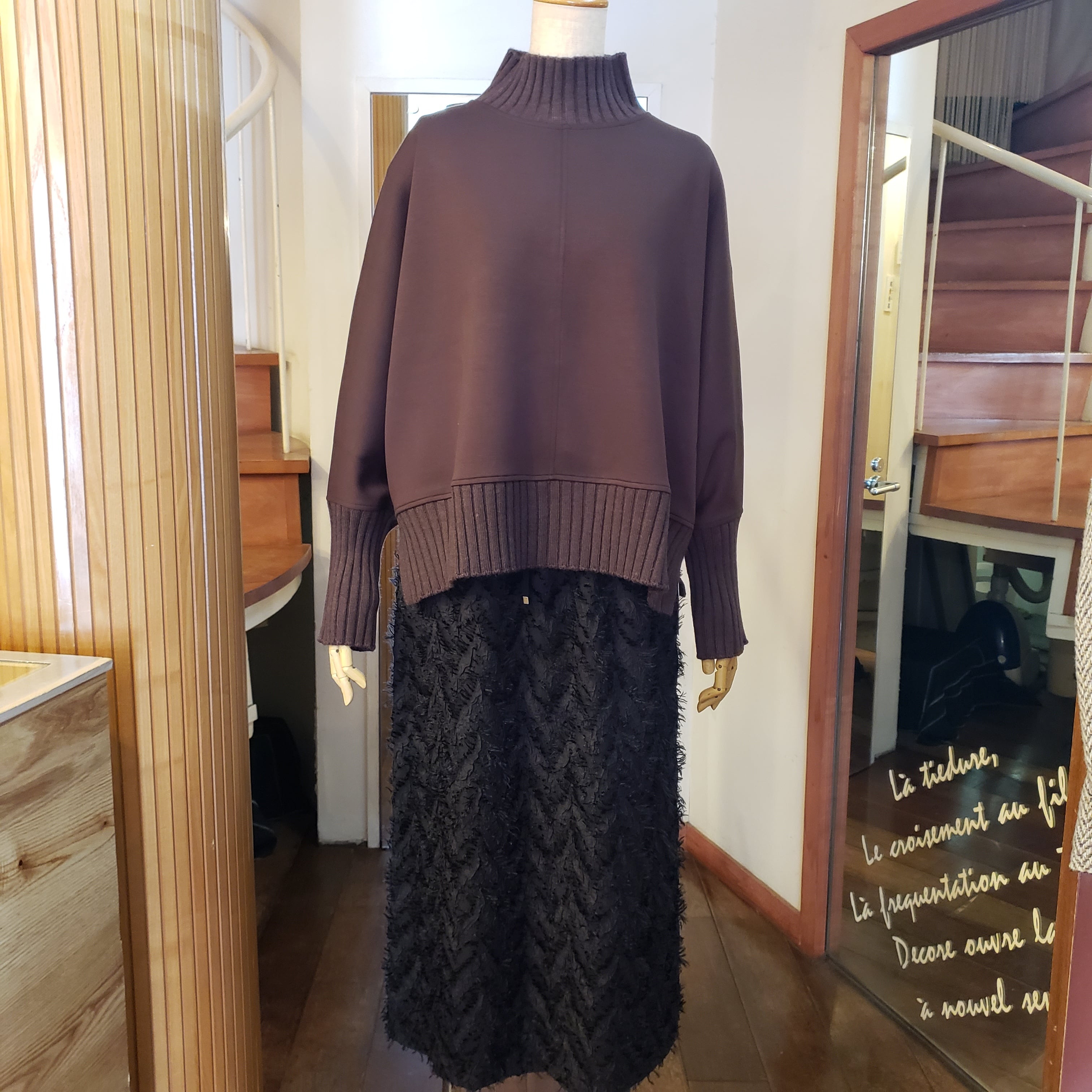 もちもちとしたダンボールニットとリブニットの切替がメリハリ感のあるプルオーバーです。