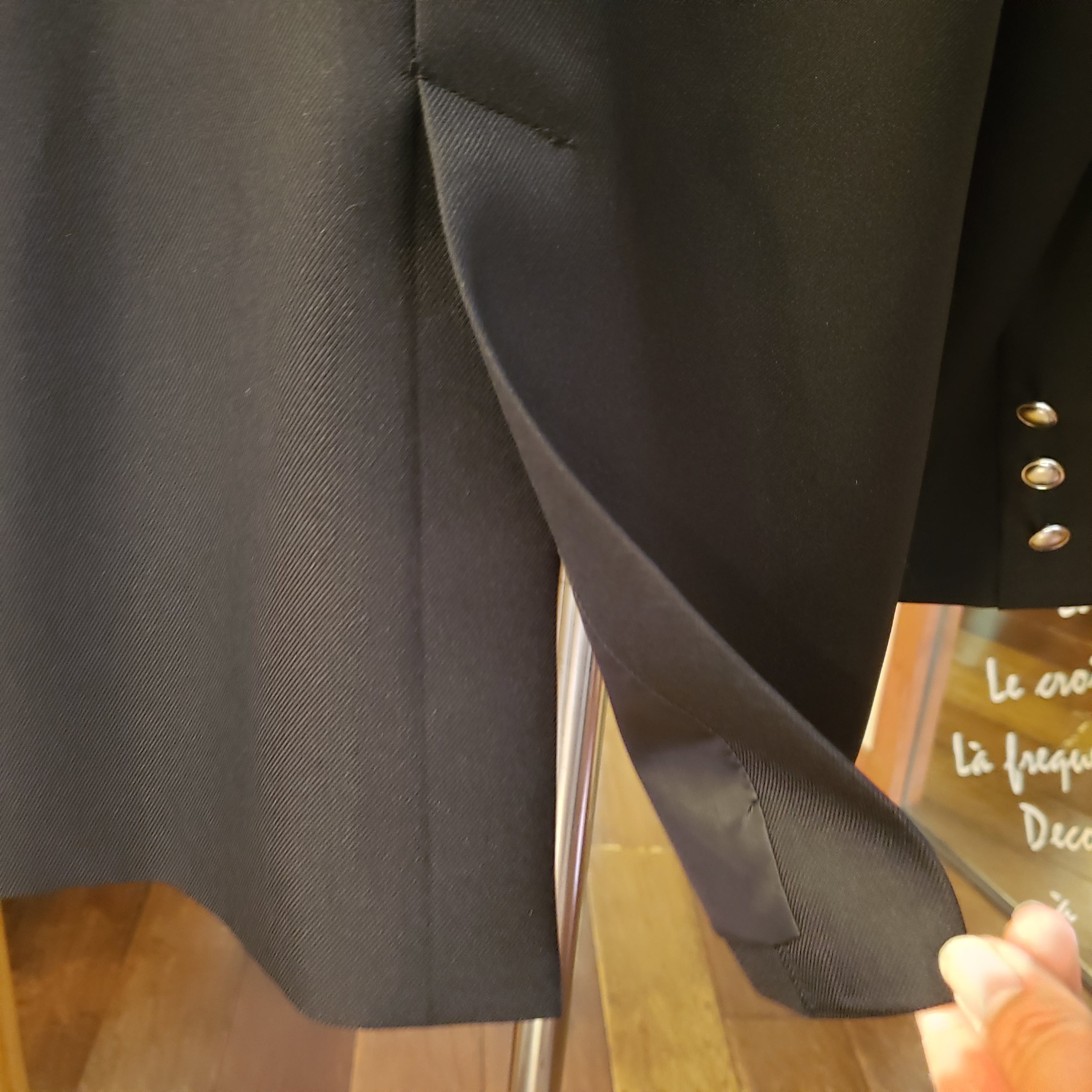 シルバーの四つボタンがトラッドで上品見え!