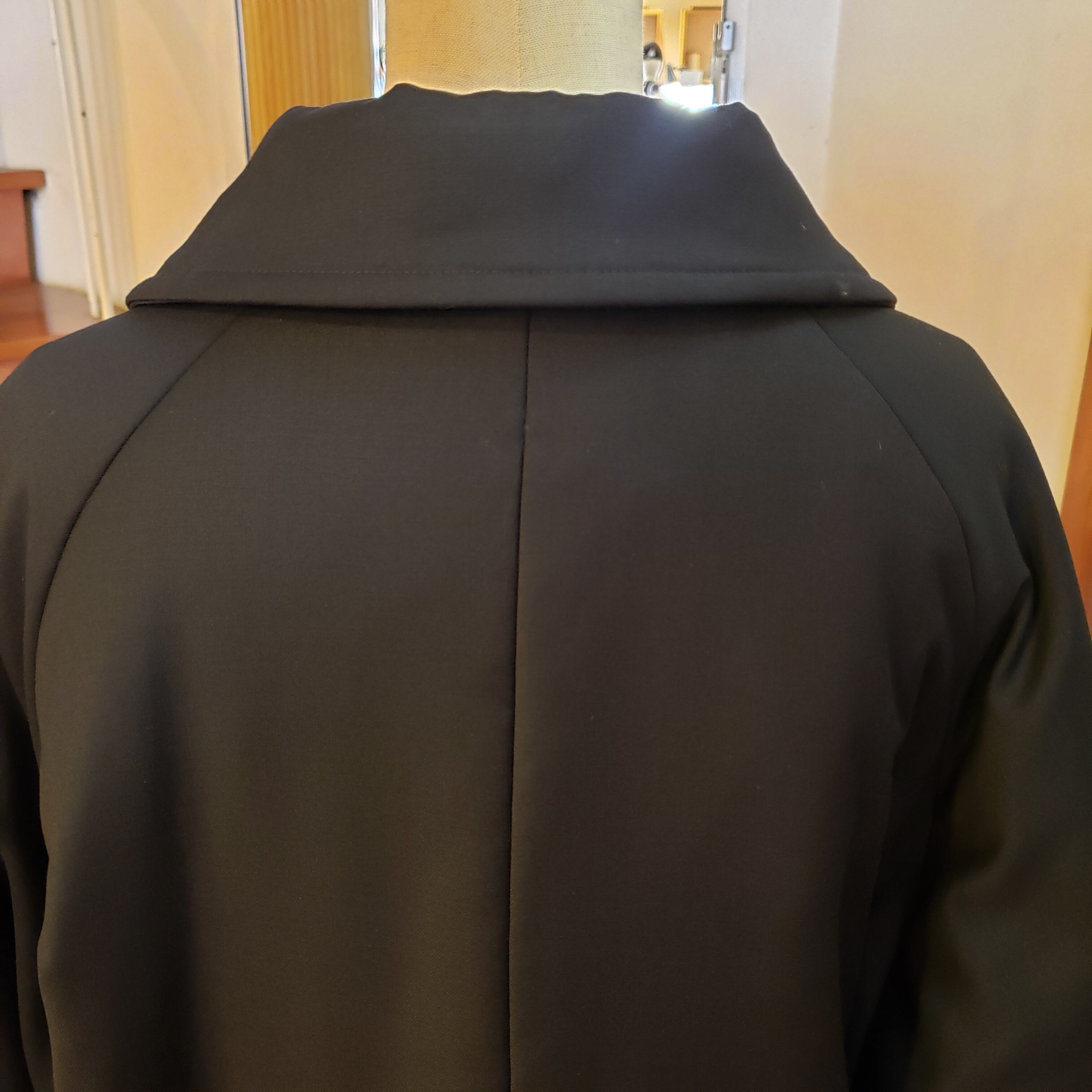 袖付けも前はセットイン後はラグランスリーブと工夫を凝らしたディテール。