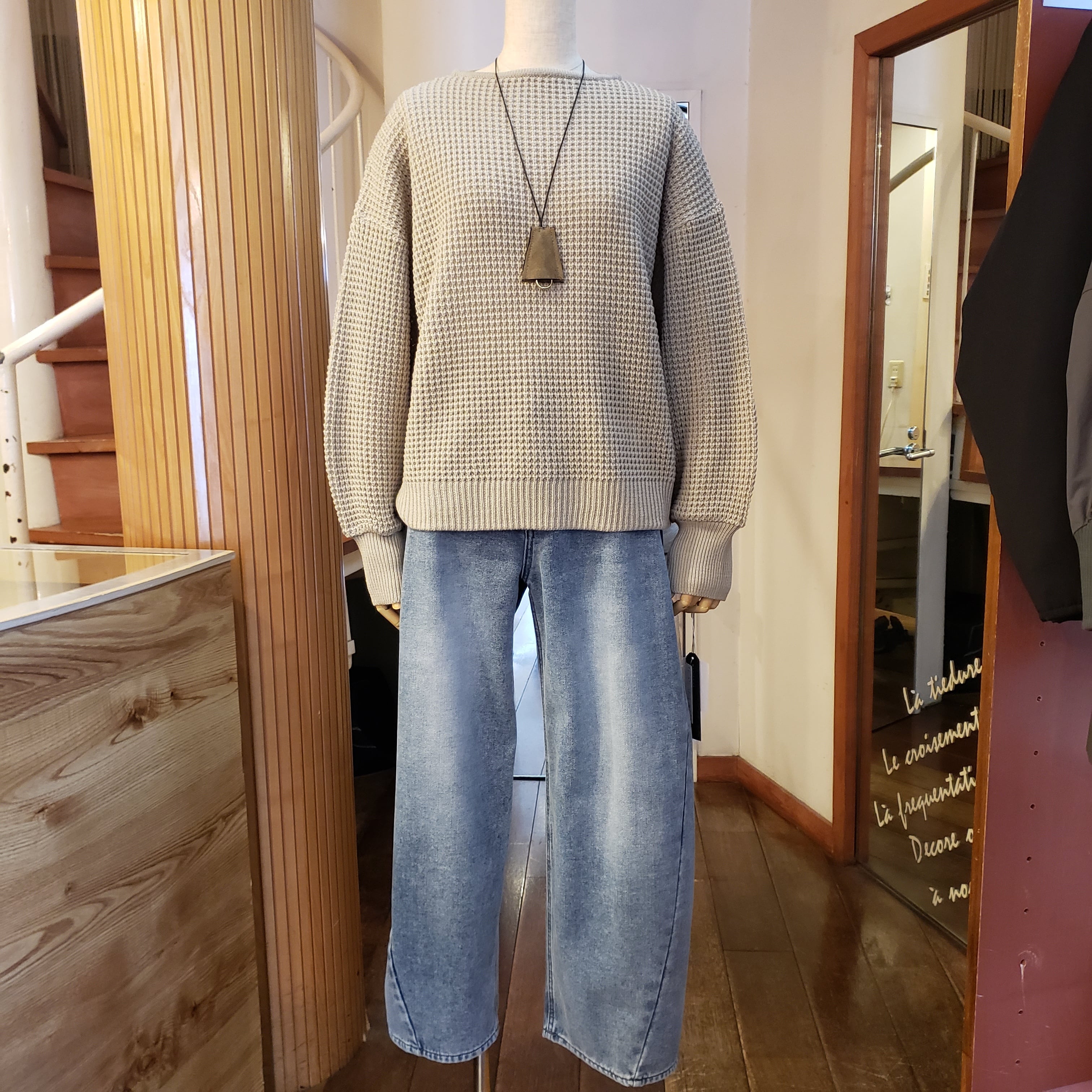 立体感のあるバスケット編みでスウェット感覚で着用出来ます。