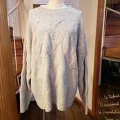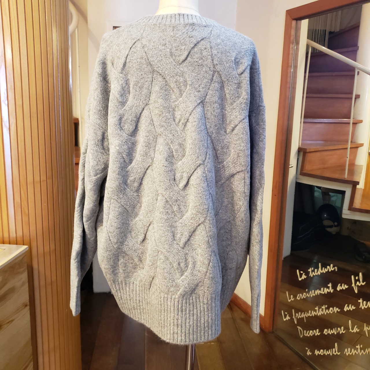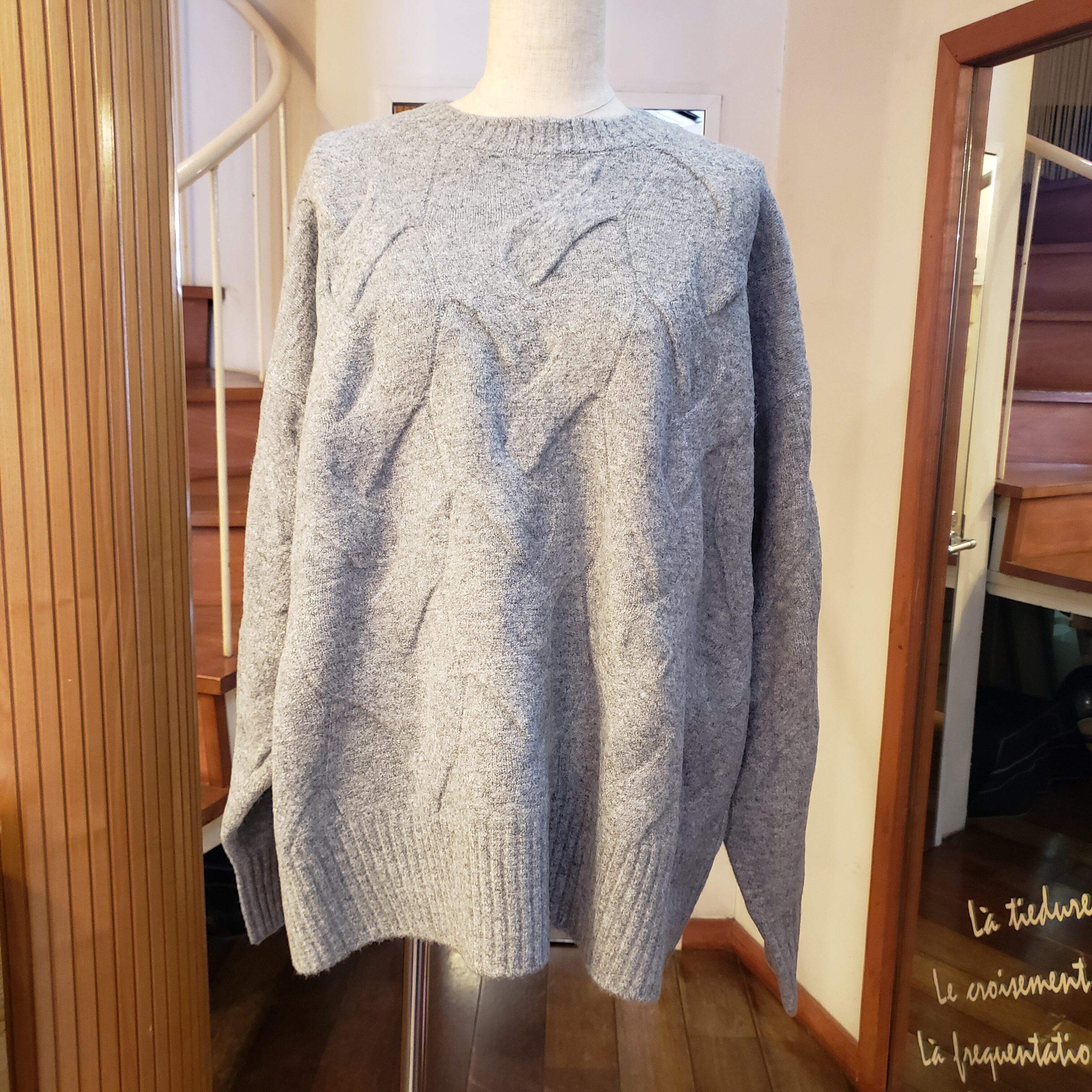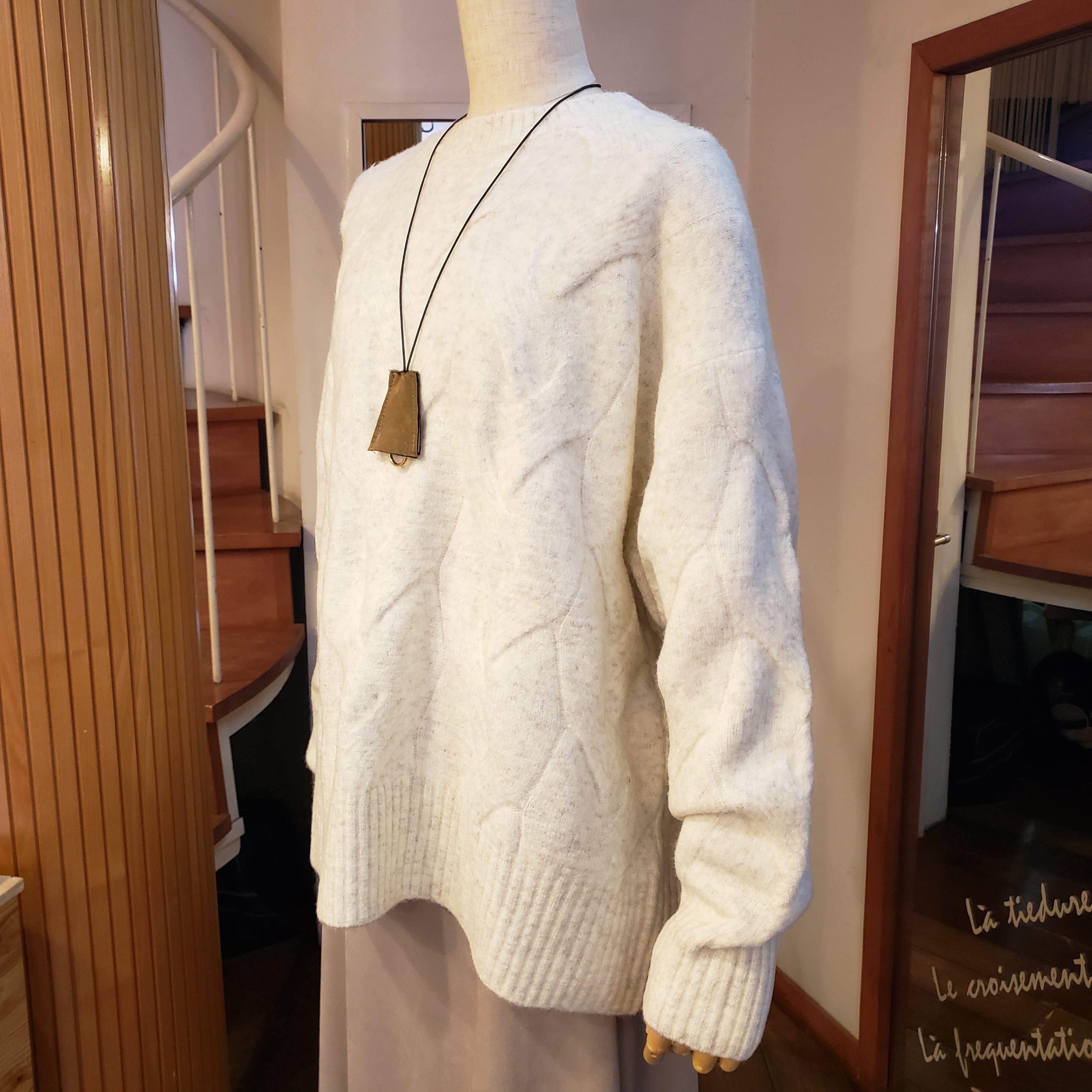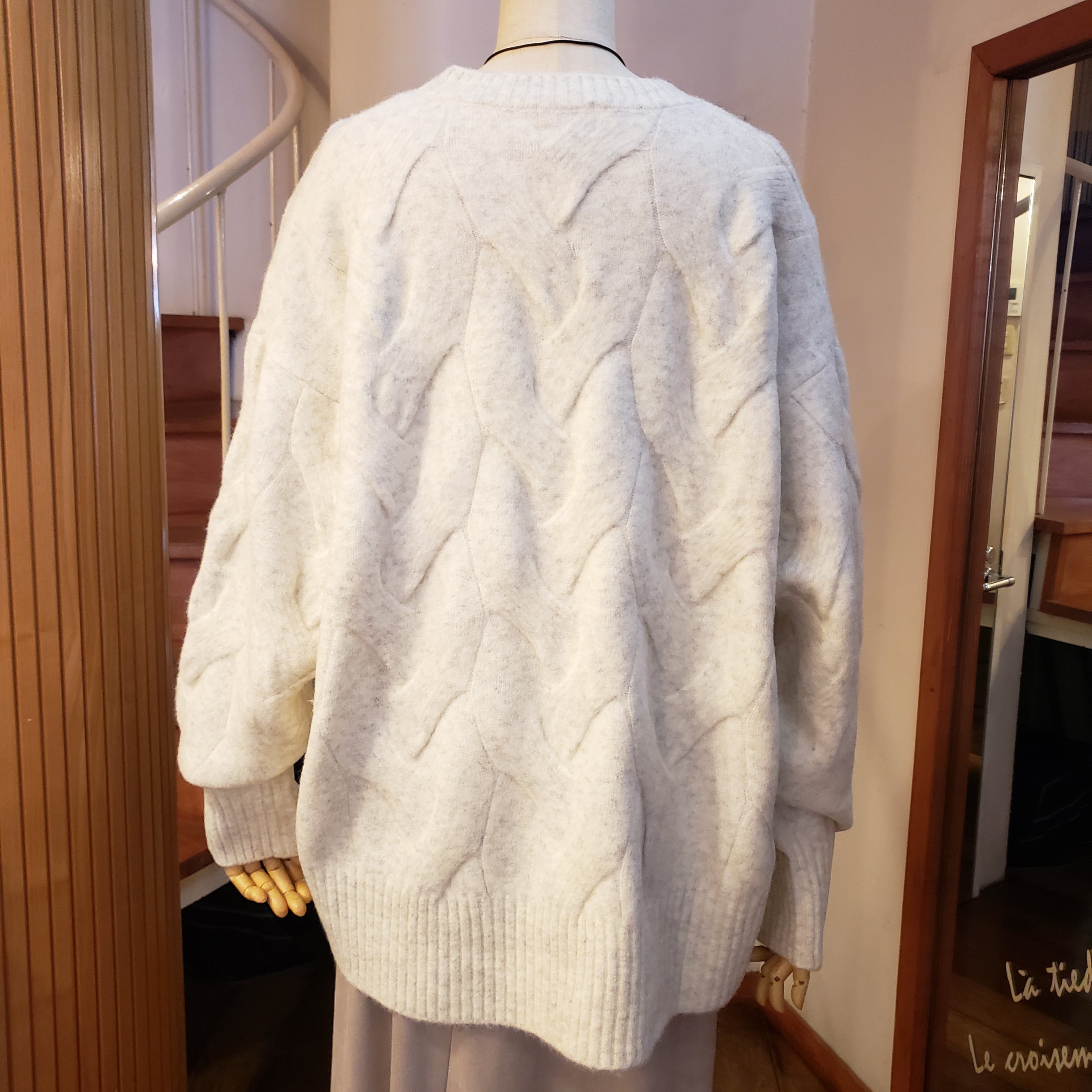 ワイドシルエットで、ざっくりとした立体感のあるケーブル編みが目を引きます♪