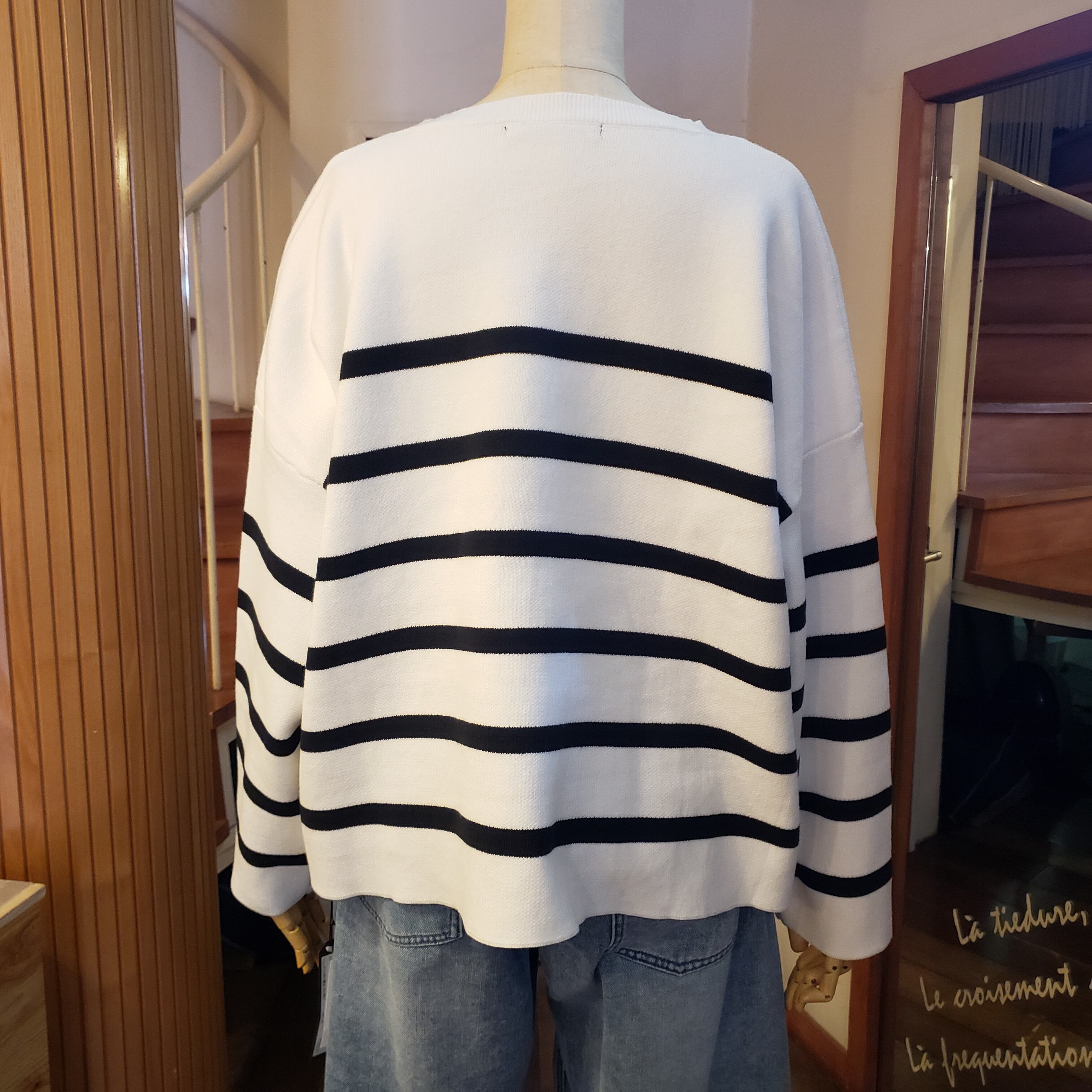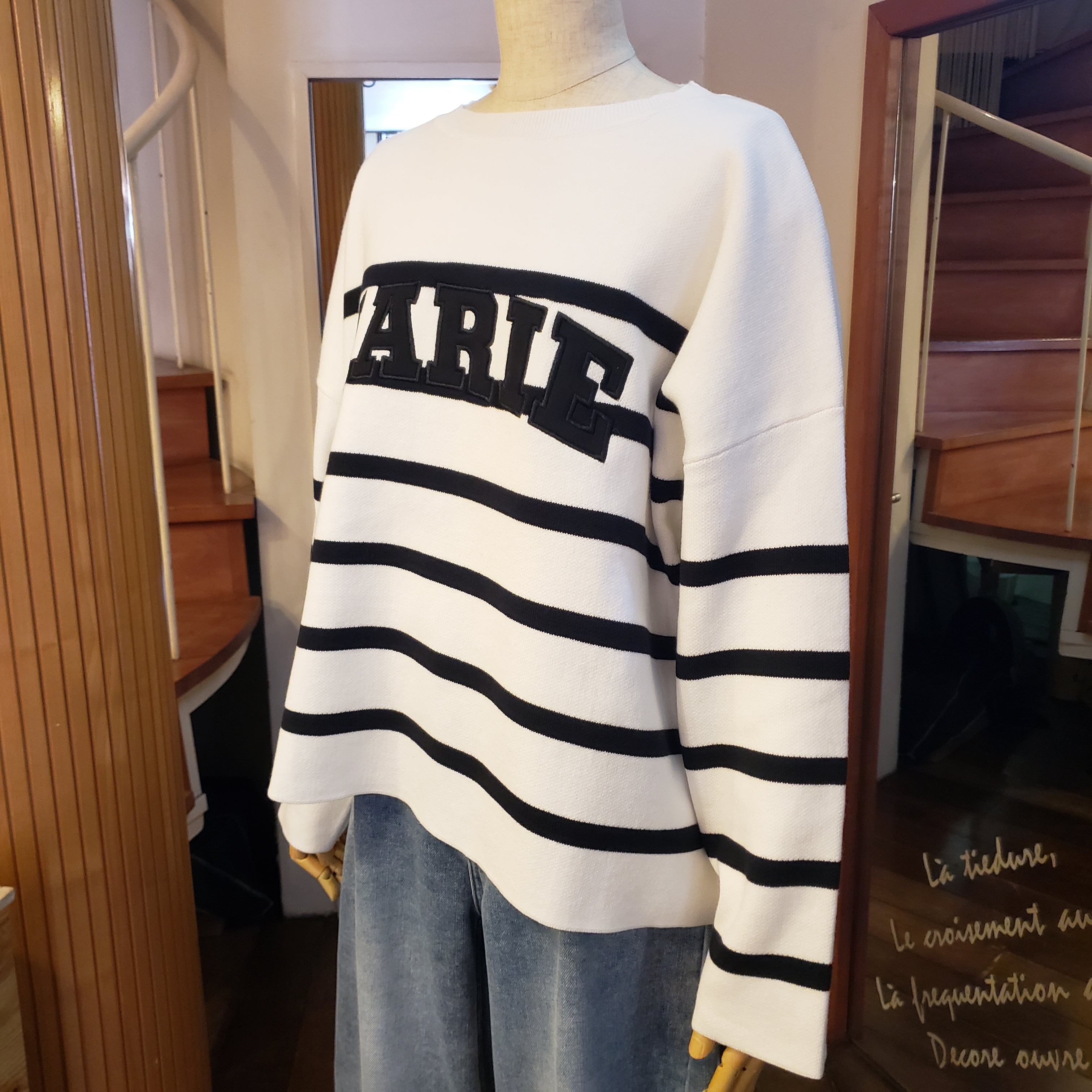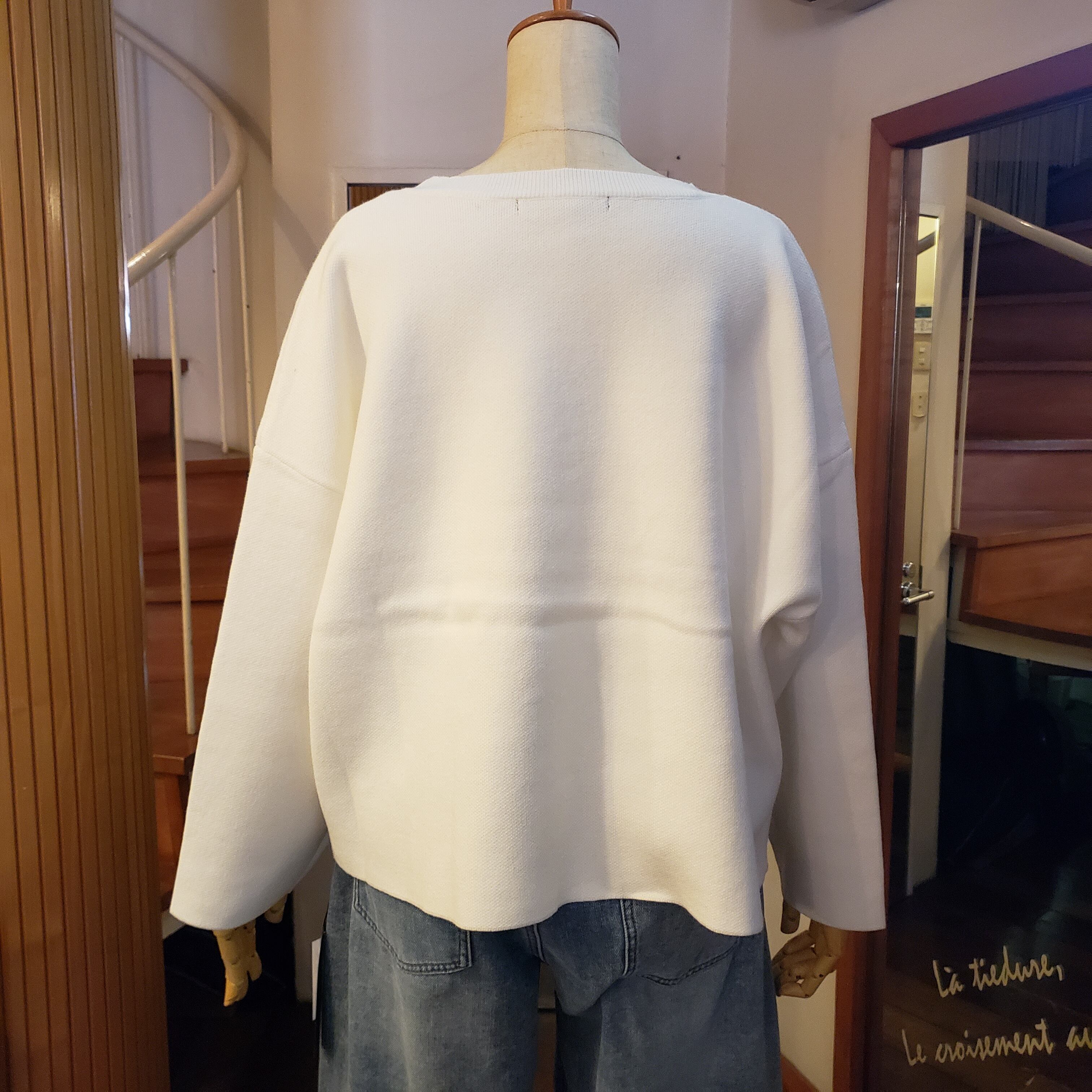 袖が太めでこなれ感あり。#オフホワイト(無地)×ブラックロゴもあり品番95197