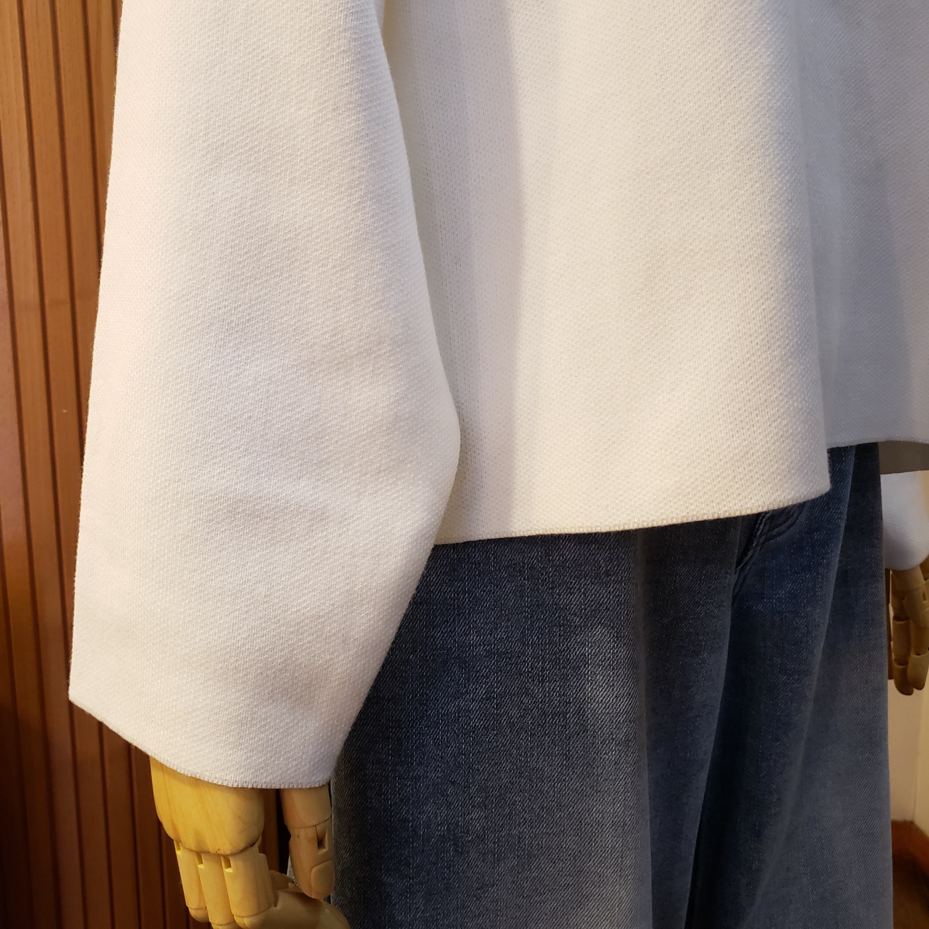 ゆったりした身頃にやや短めの丈なので、体型拾わずスタイルアップ効果大。
