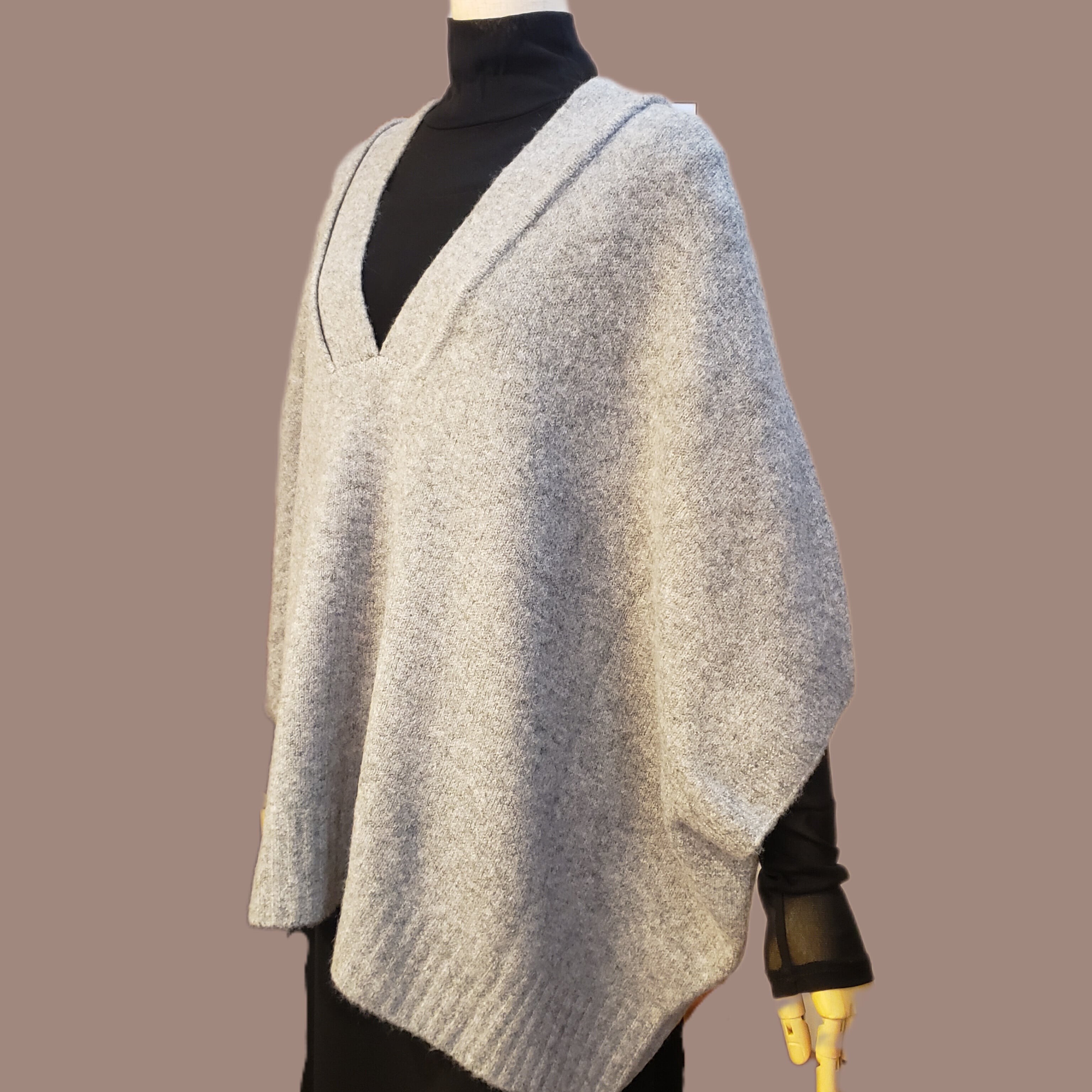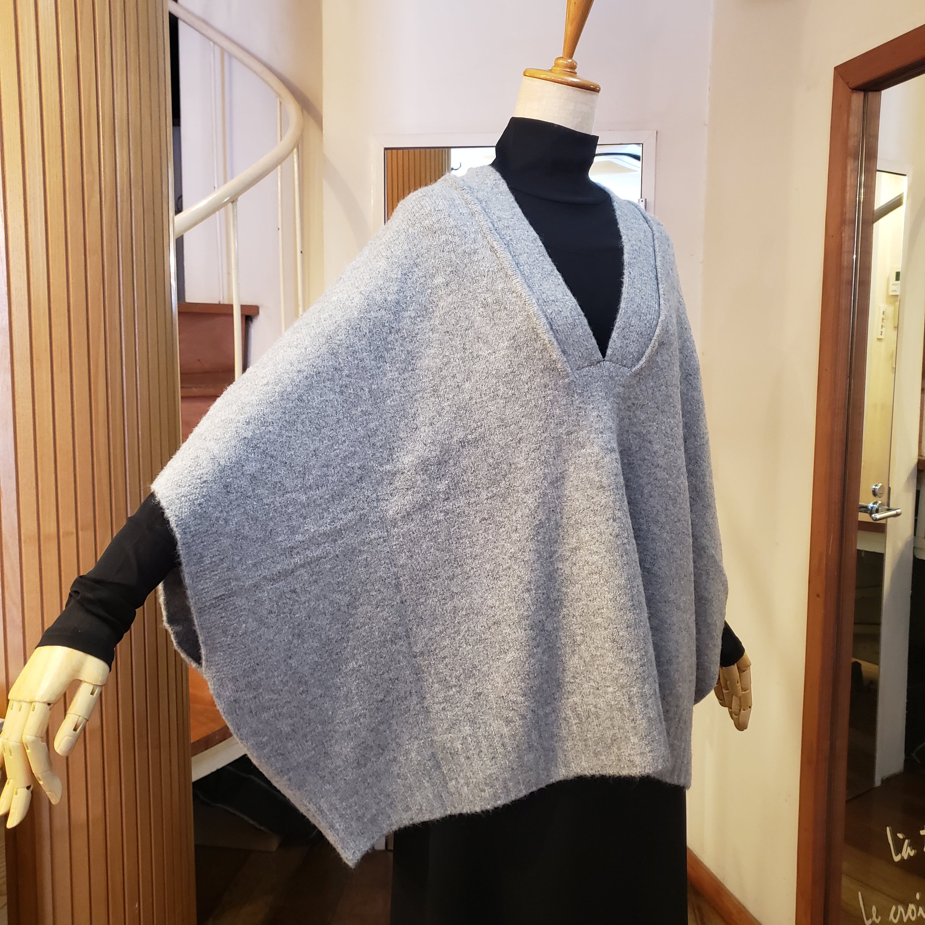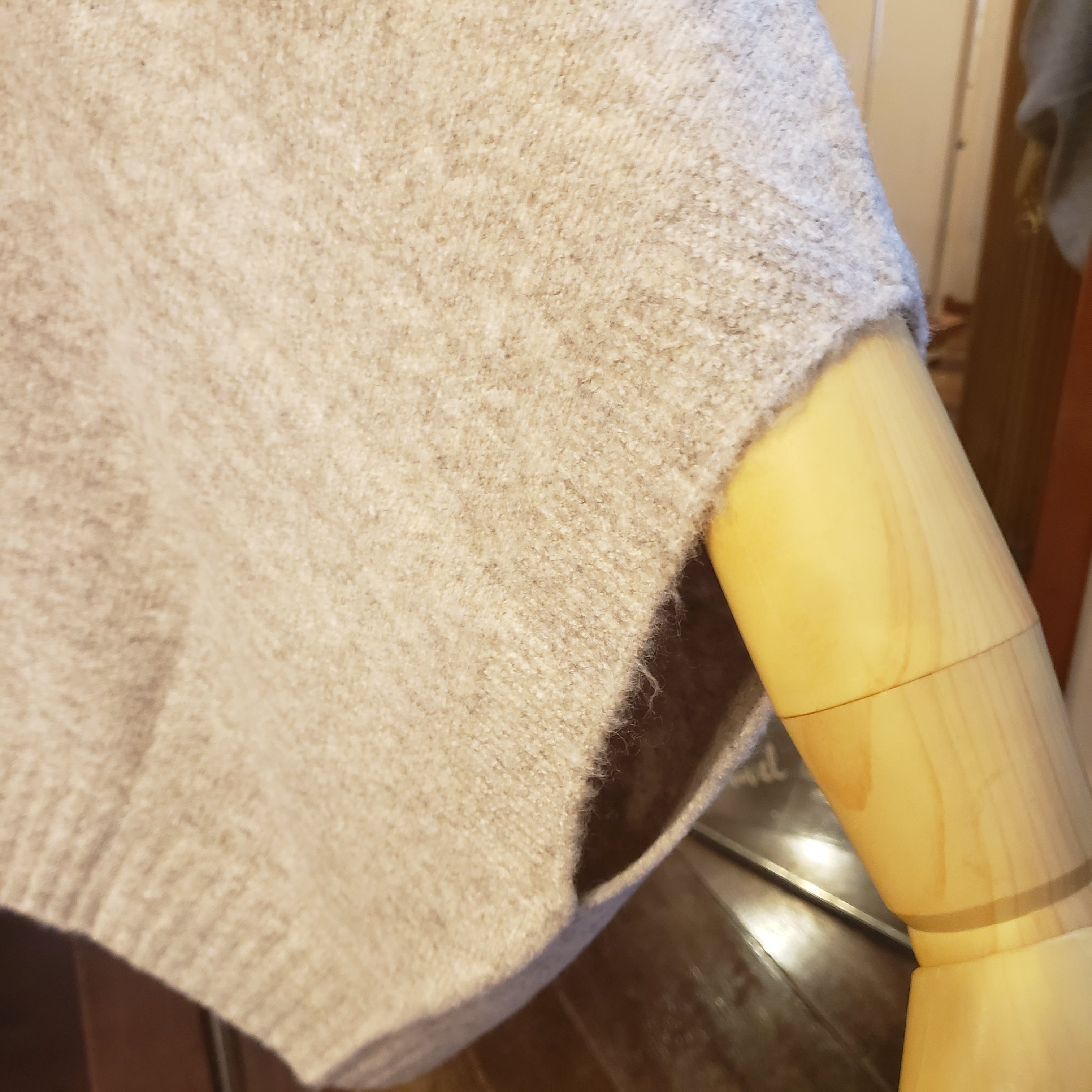 包み込むような丸みのシルエットに深めのVネックですっきり見え!