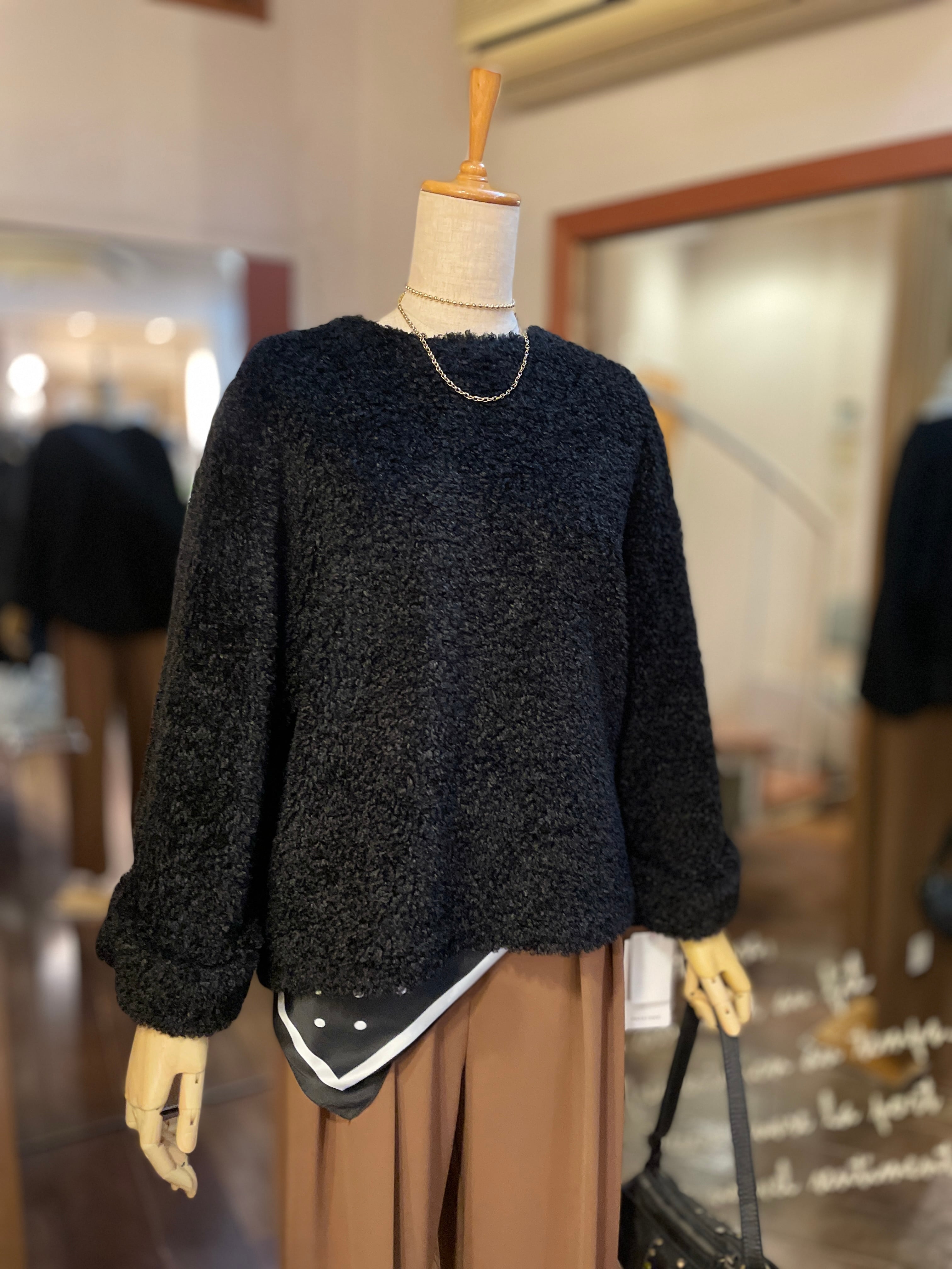 ふんわりした滑らかな肌触りのカールしたボア素材です。