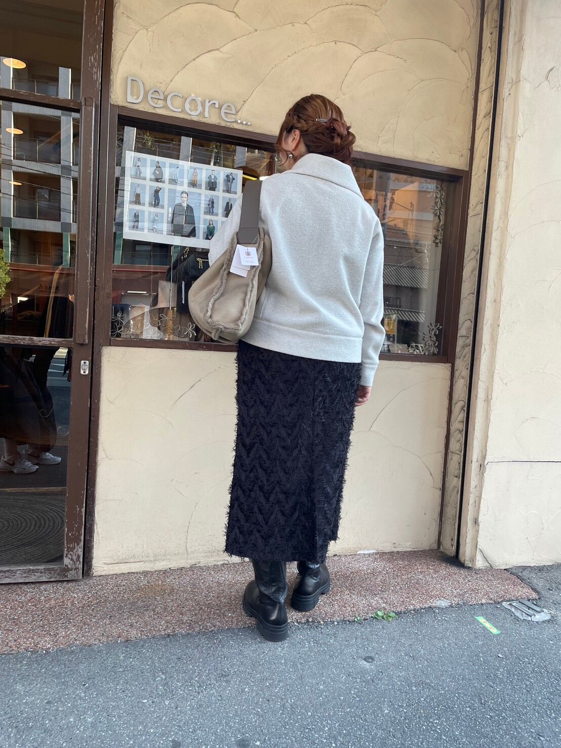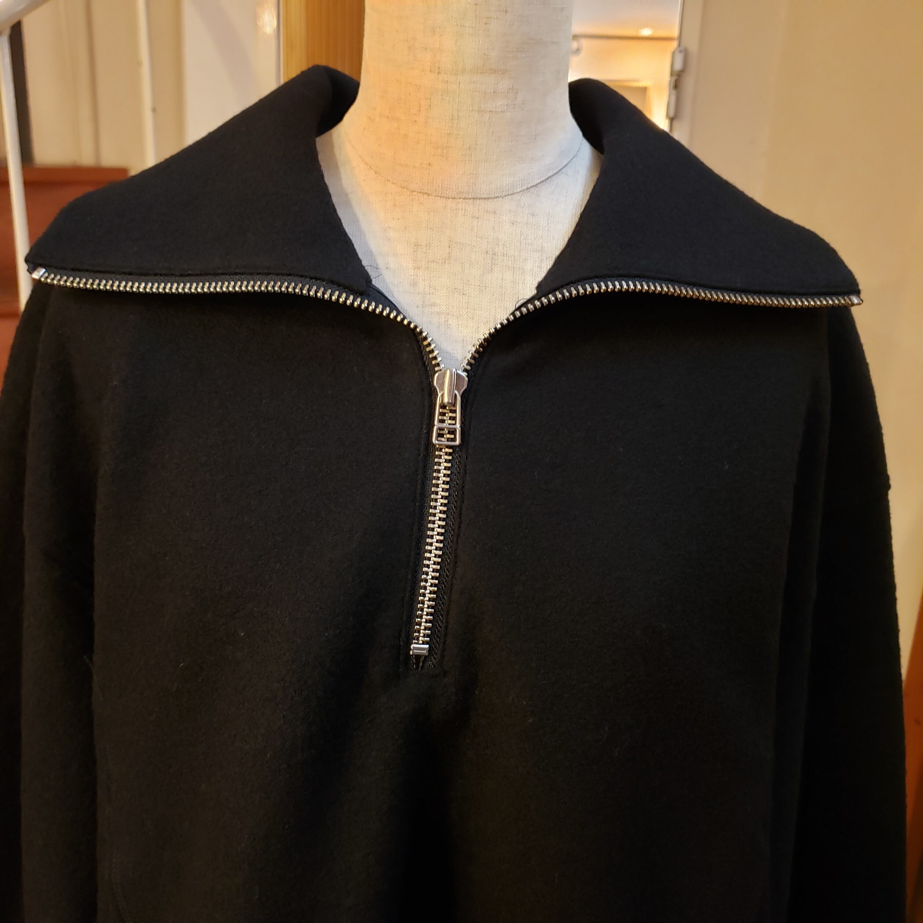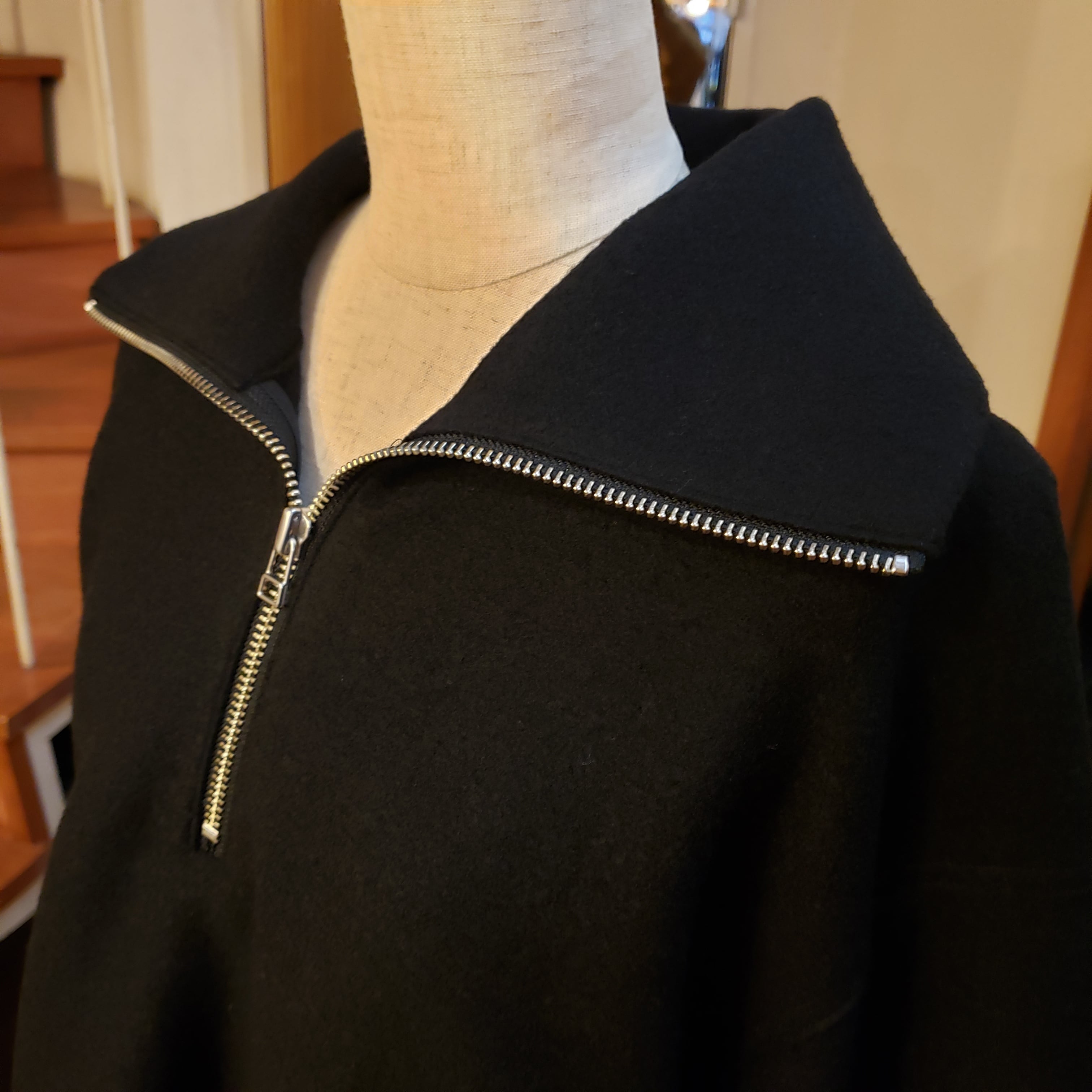 襟元がジップのスキッパーなので、すっきり見えするブルゾン風アイテム。
