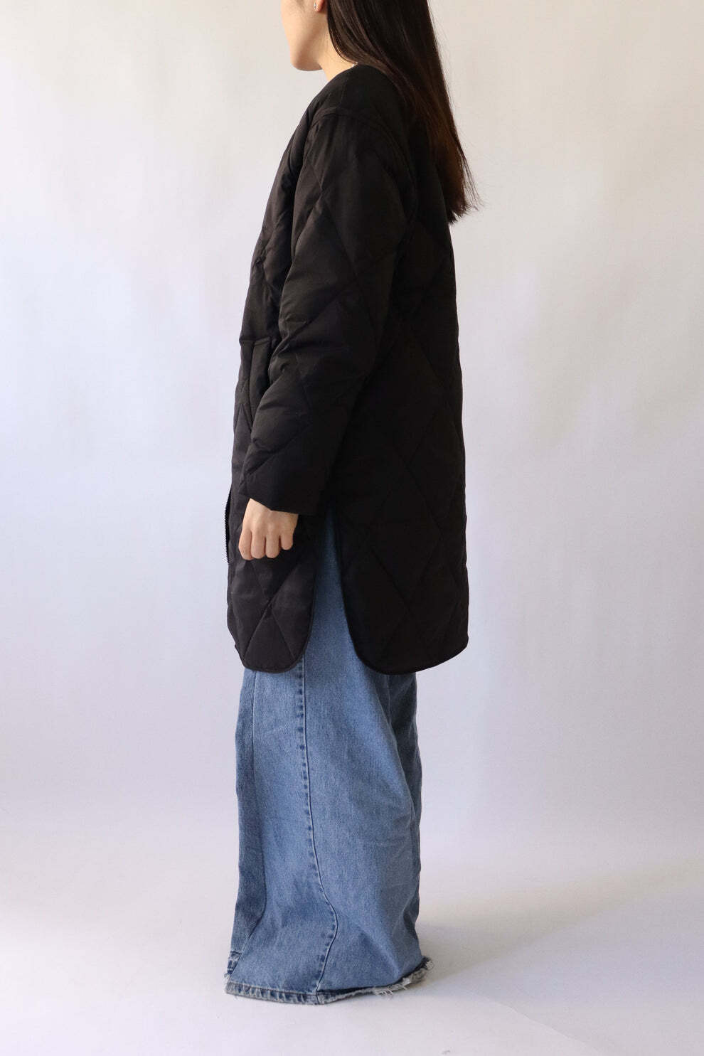 ストレスフリーな着心地を意識したストレッチタフタの素材のダイヤ柄キルティングのダウンコートです。
