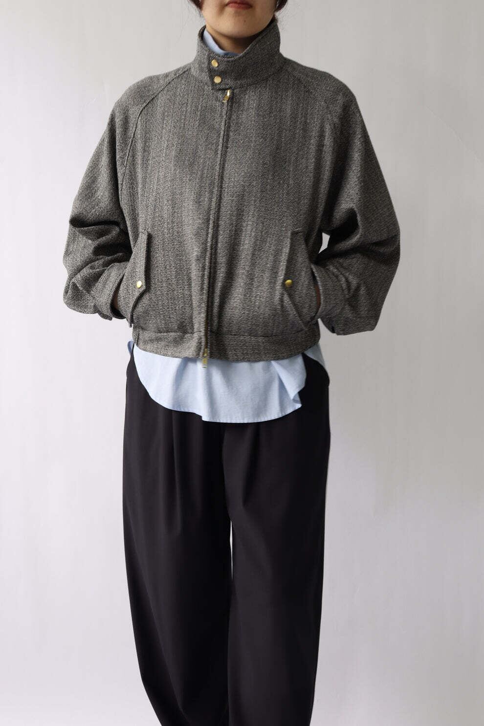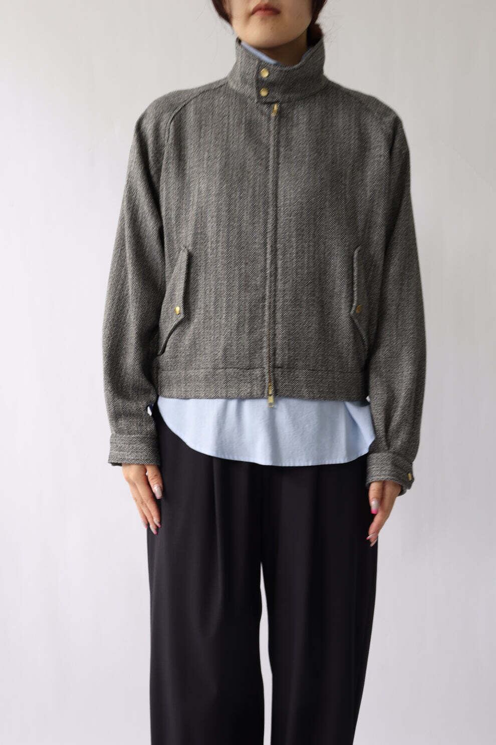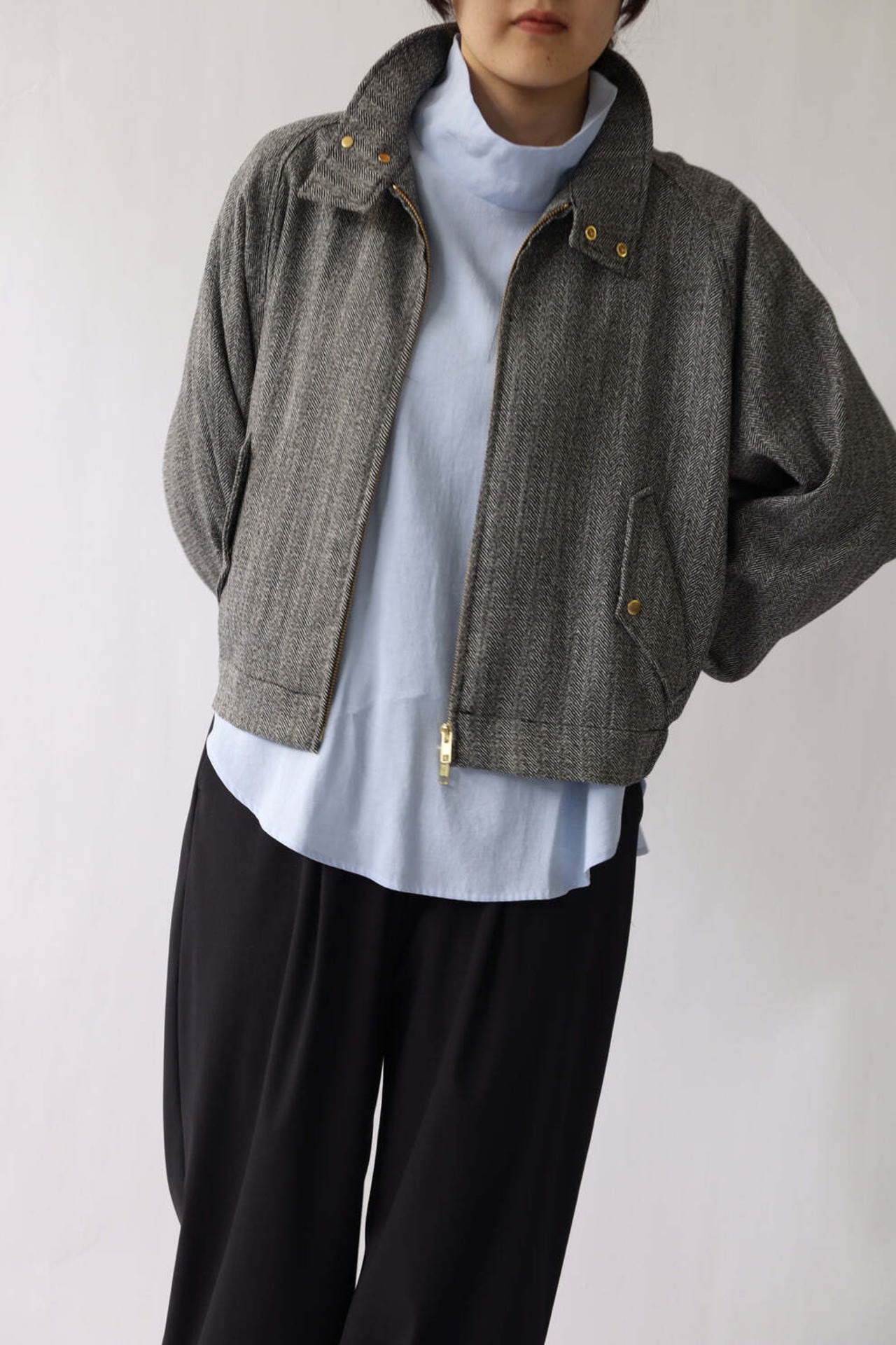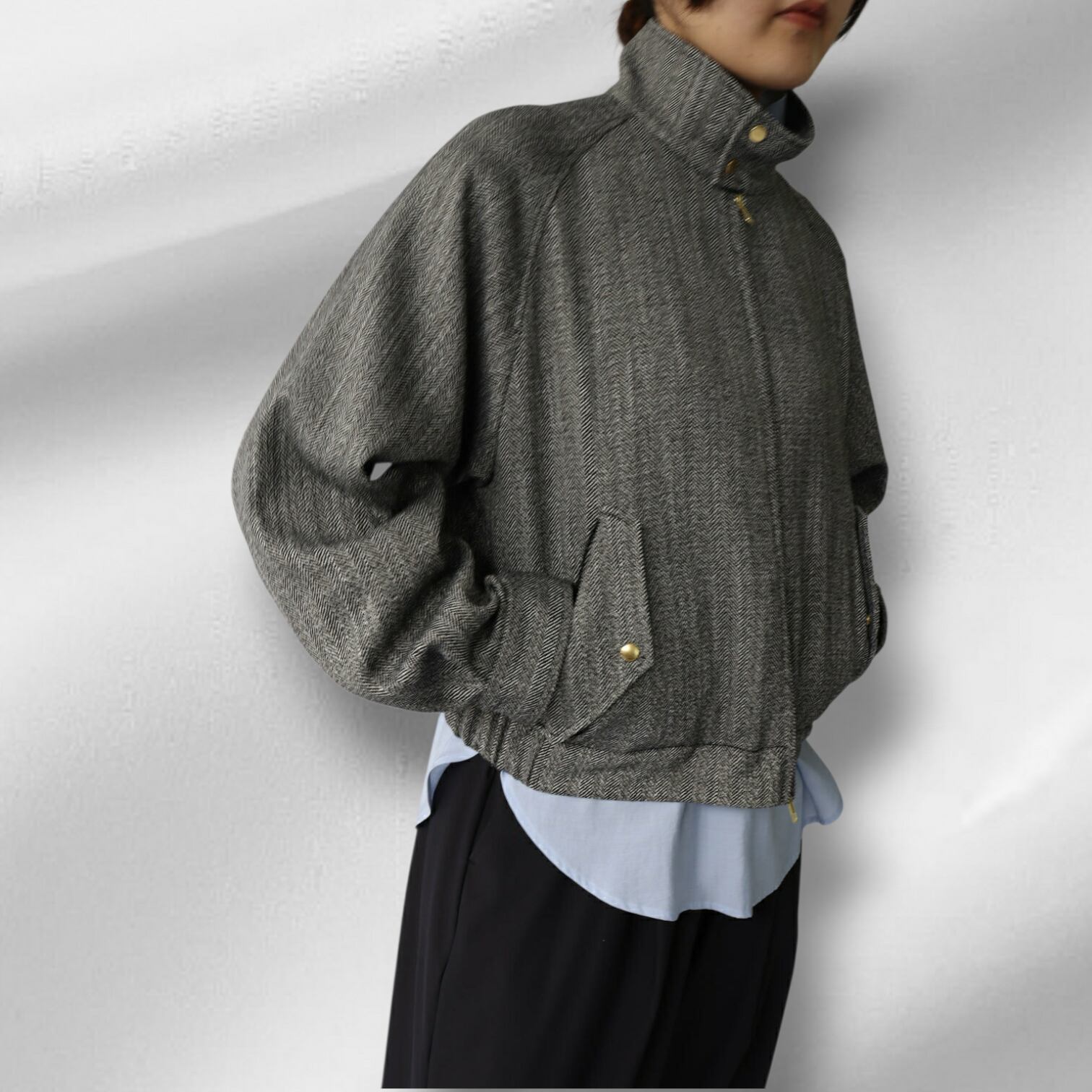 クラシックな雰囲気のヘリンボーン素材のスウイングトツプデザイン。