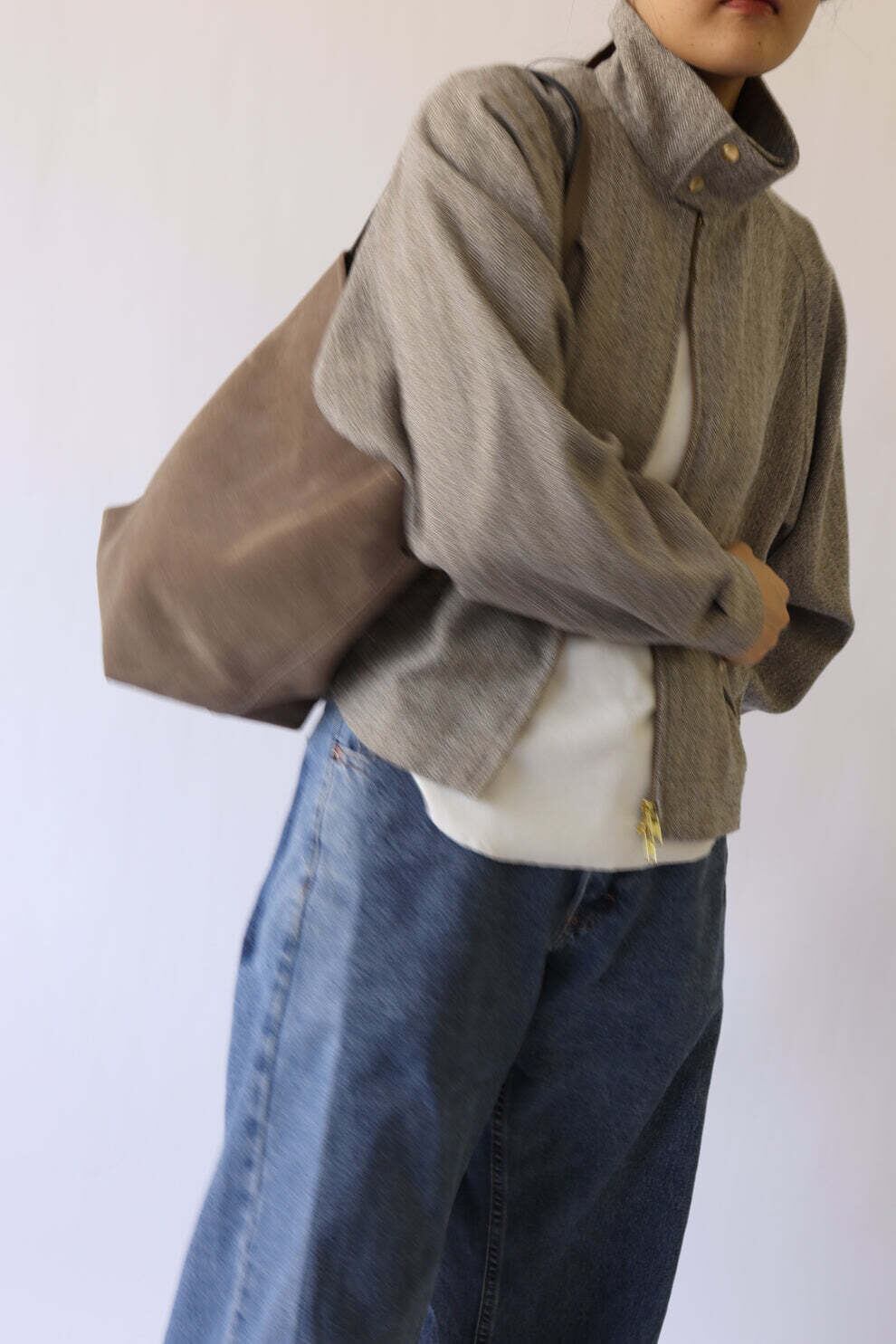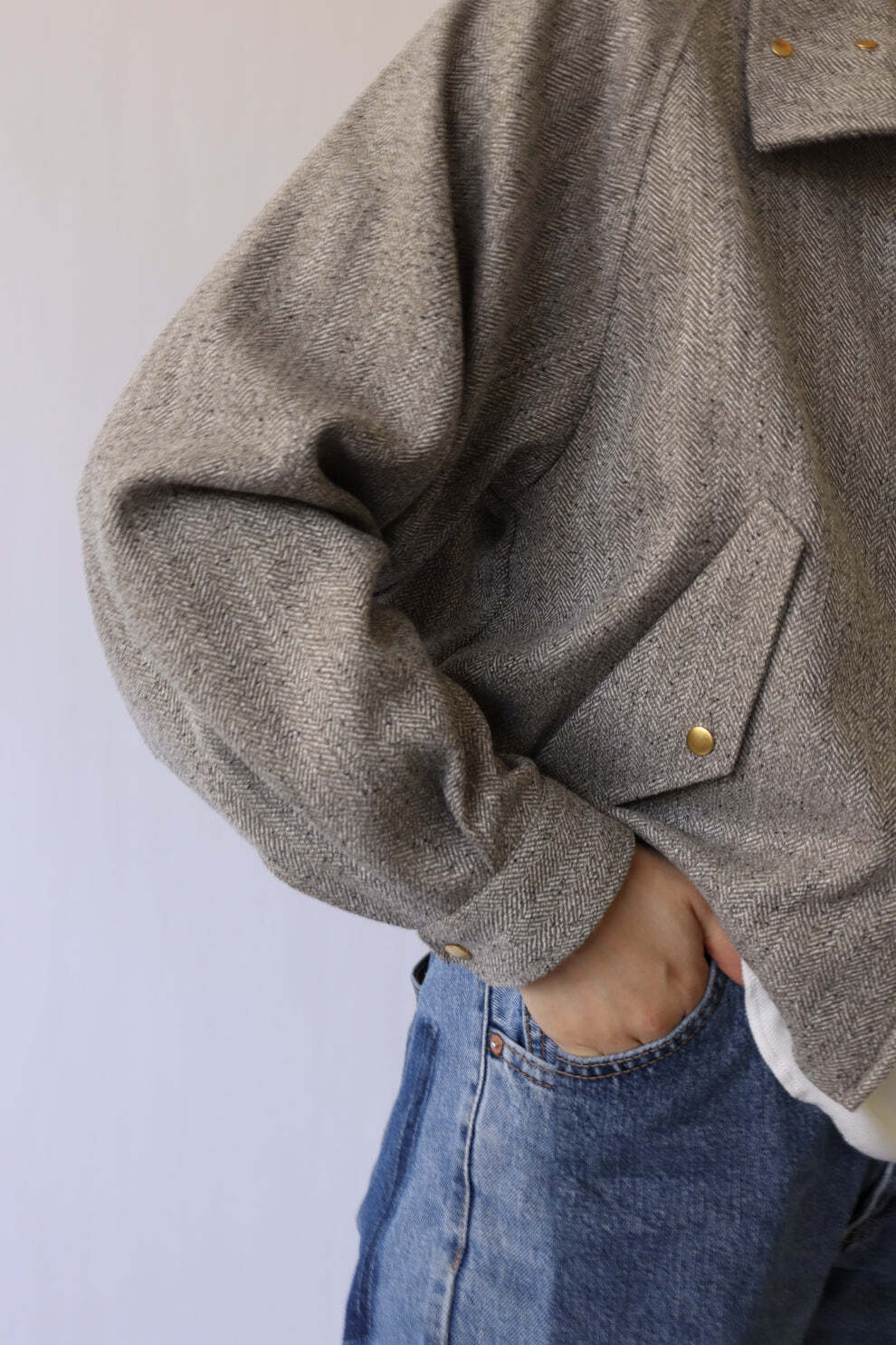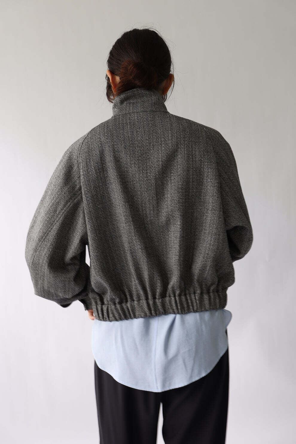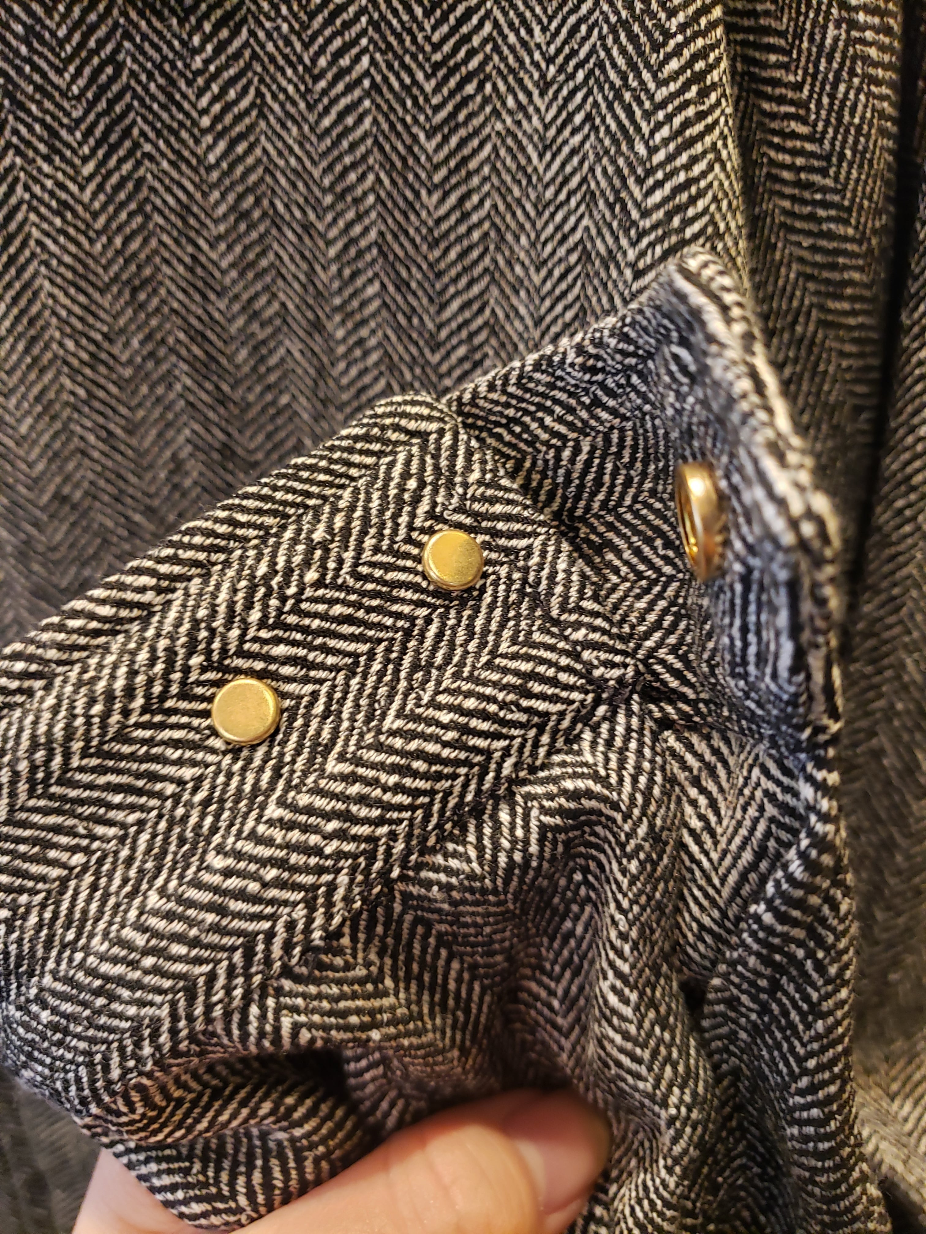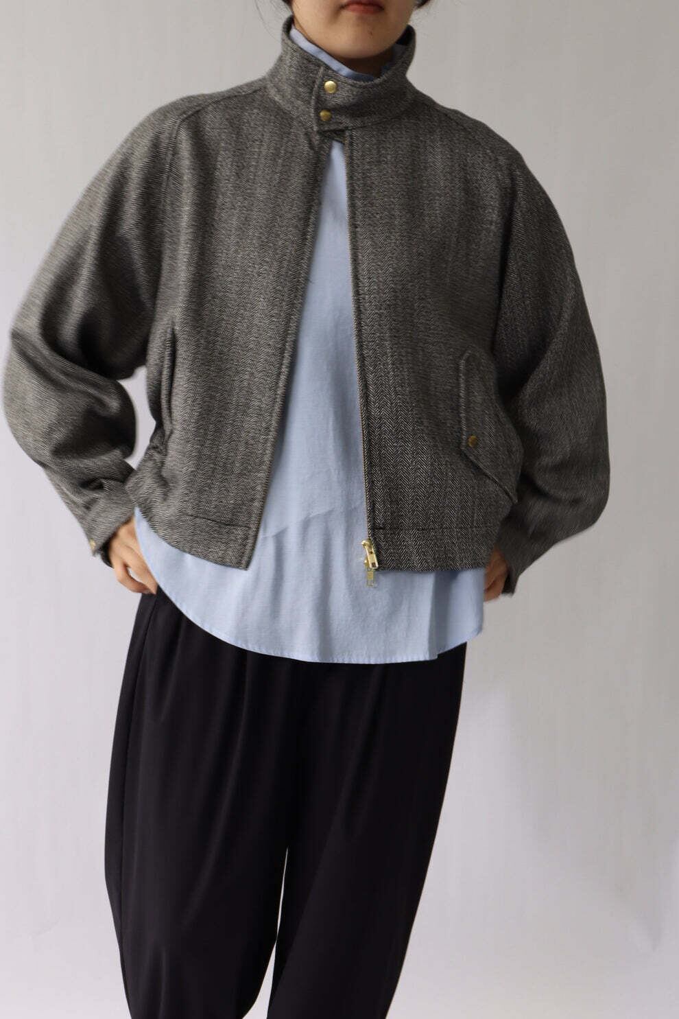クラシックな雰囲気のヘリンボーン素材のスウイングトツプデザイン。