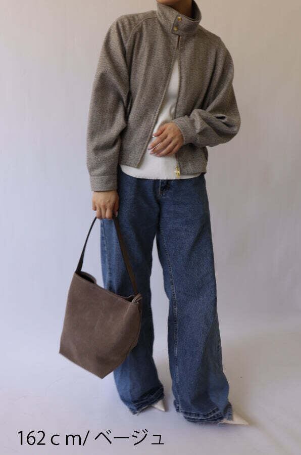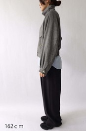ややコンパクトな丈なので、ボリュウームスカートに合わせるとモードなスタイルに。