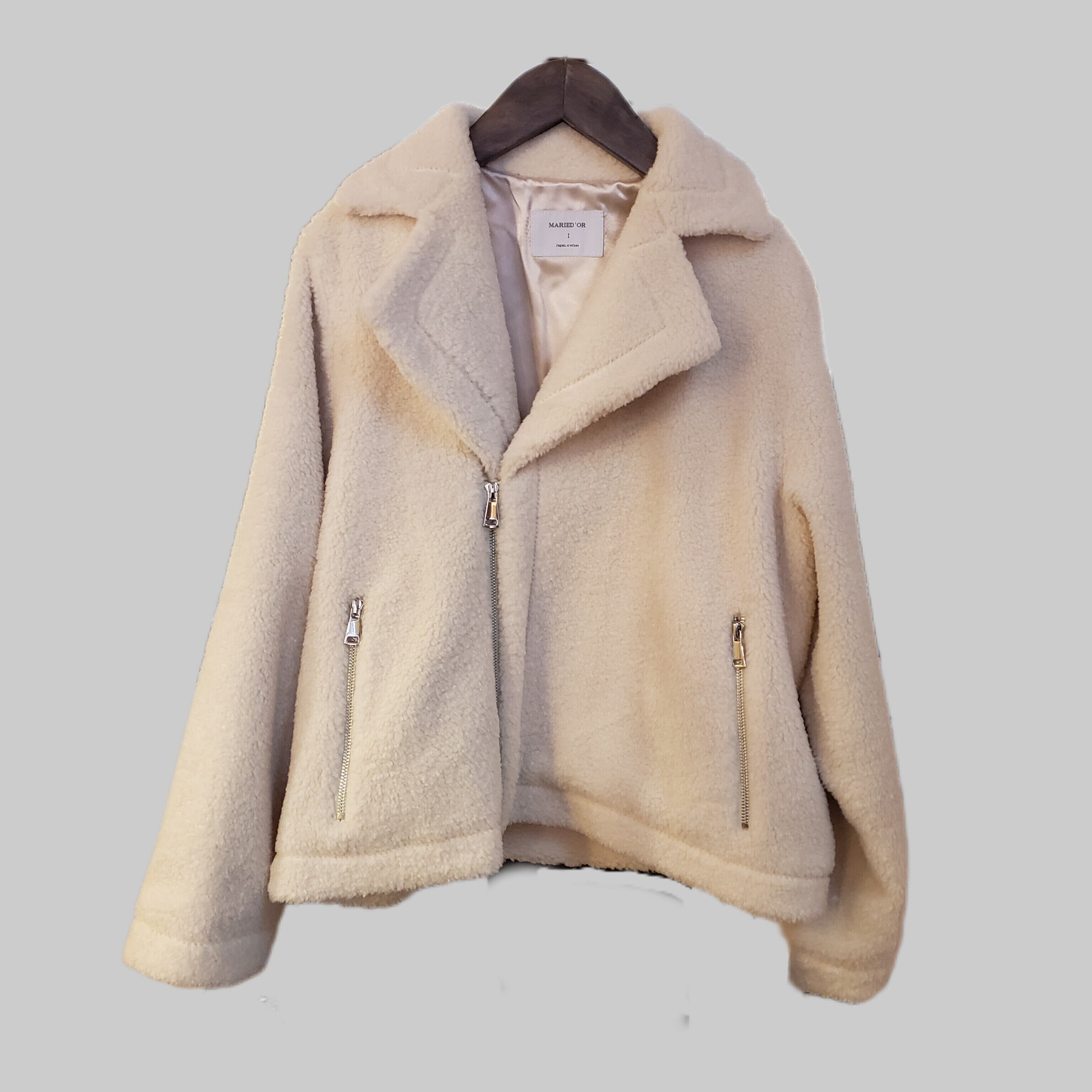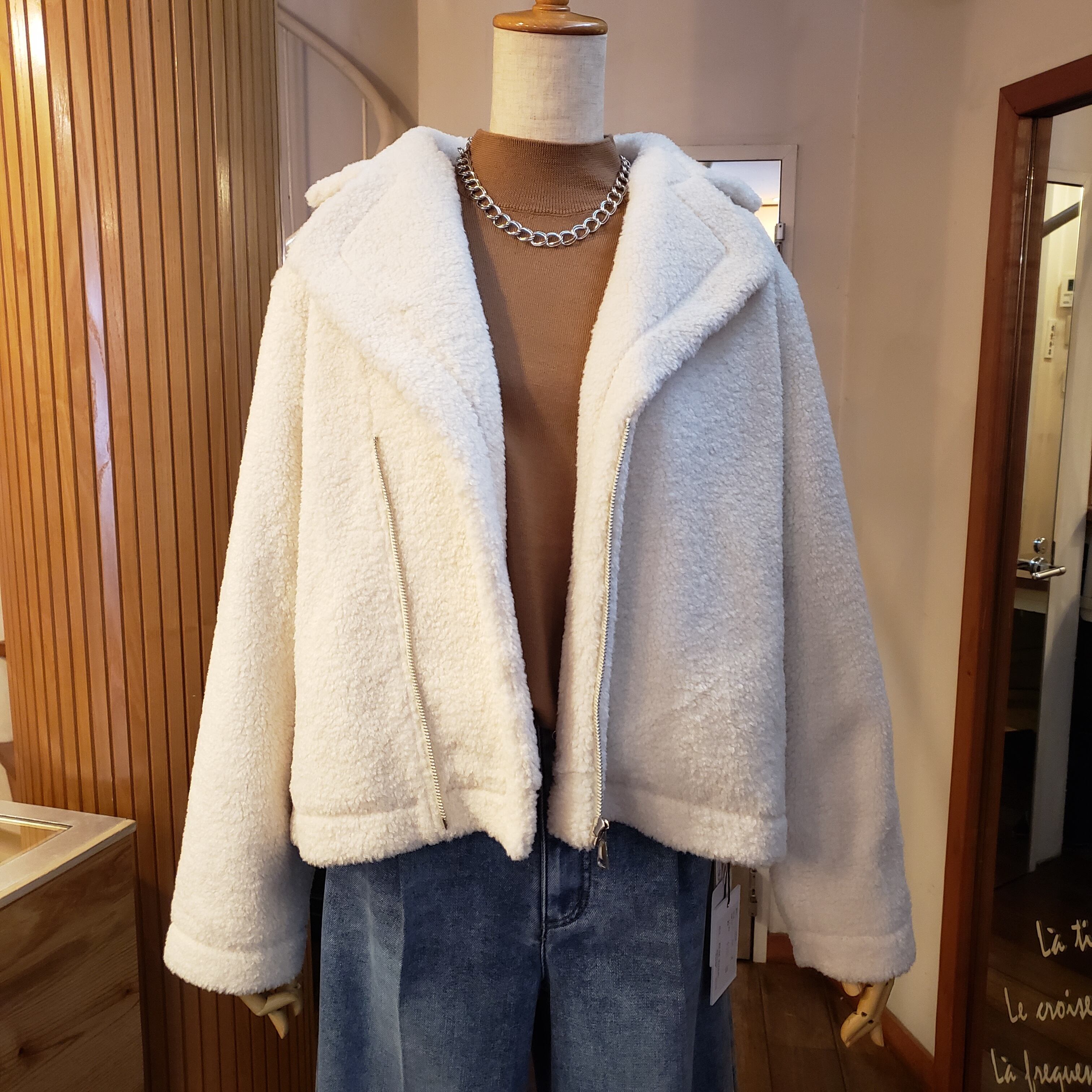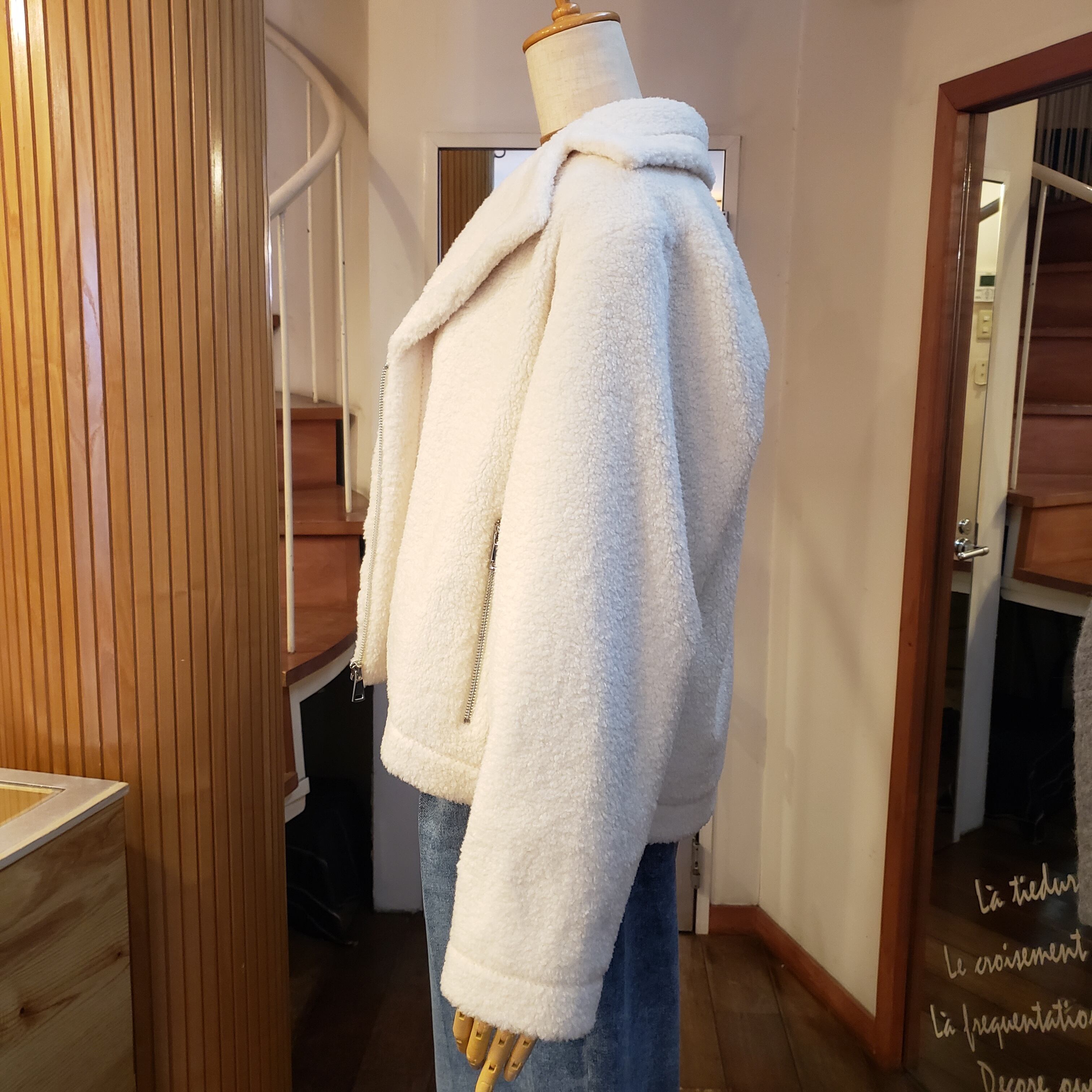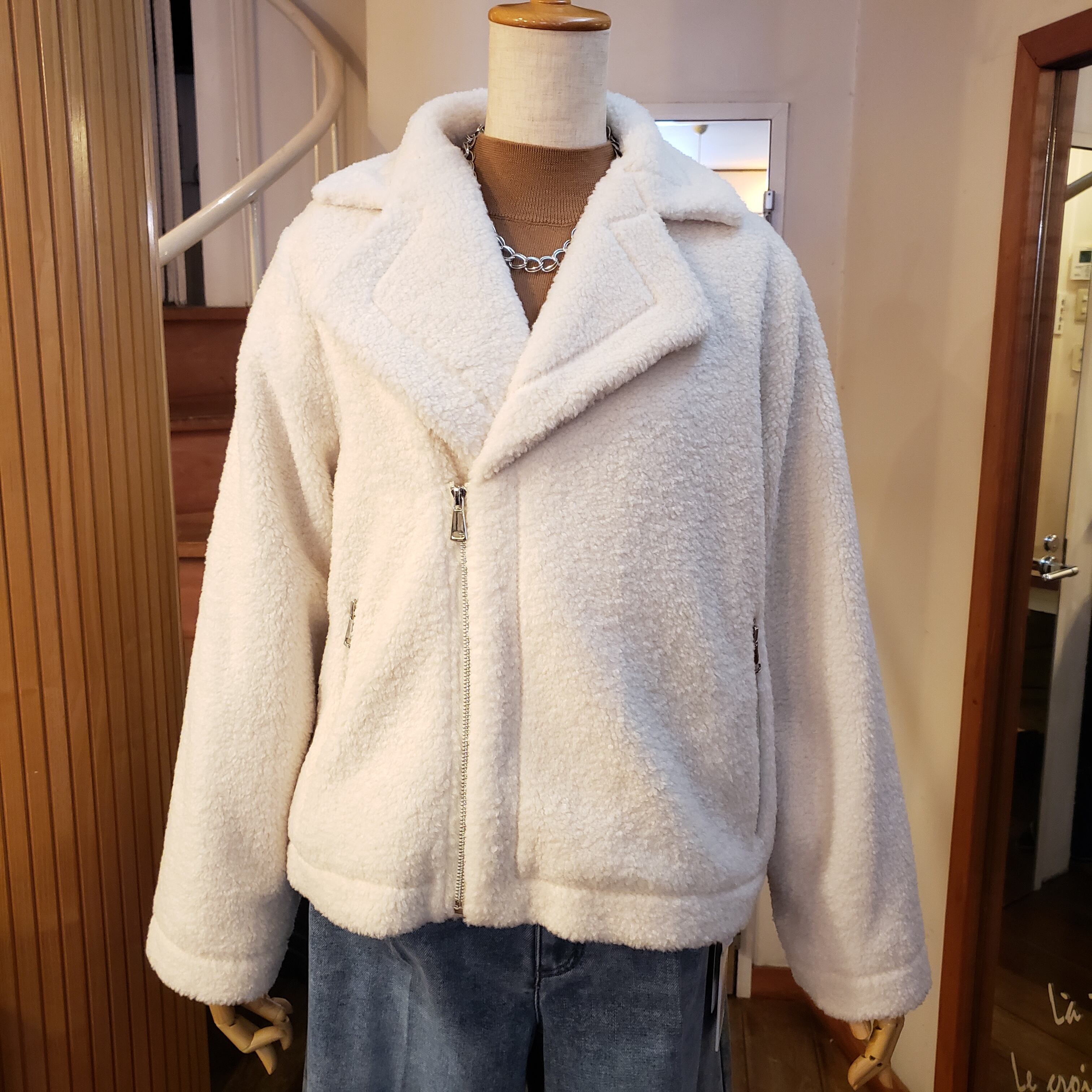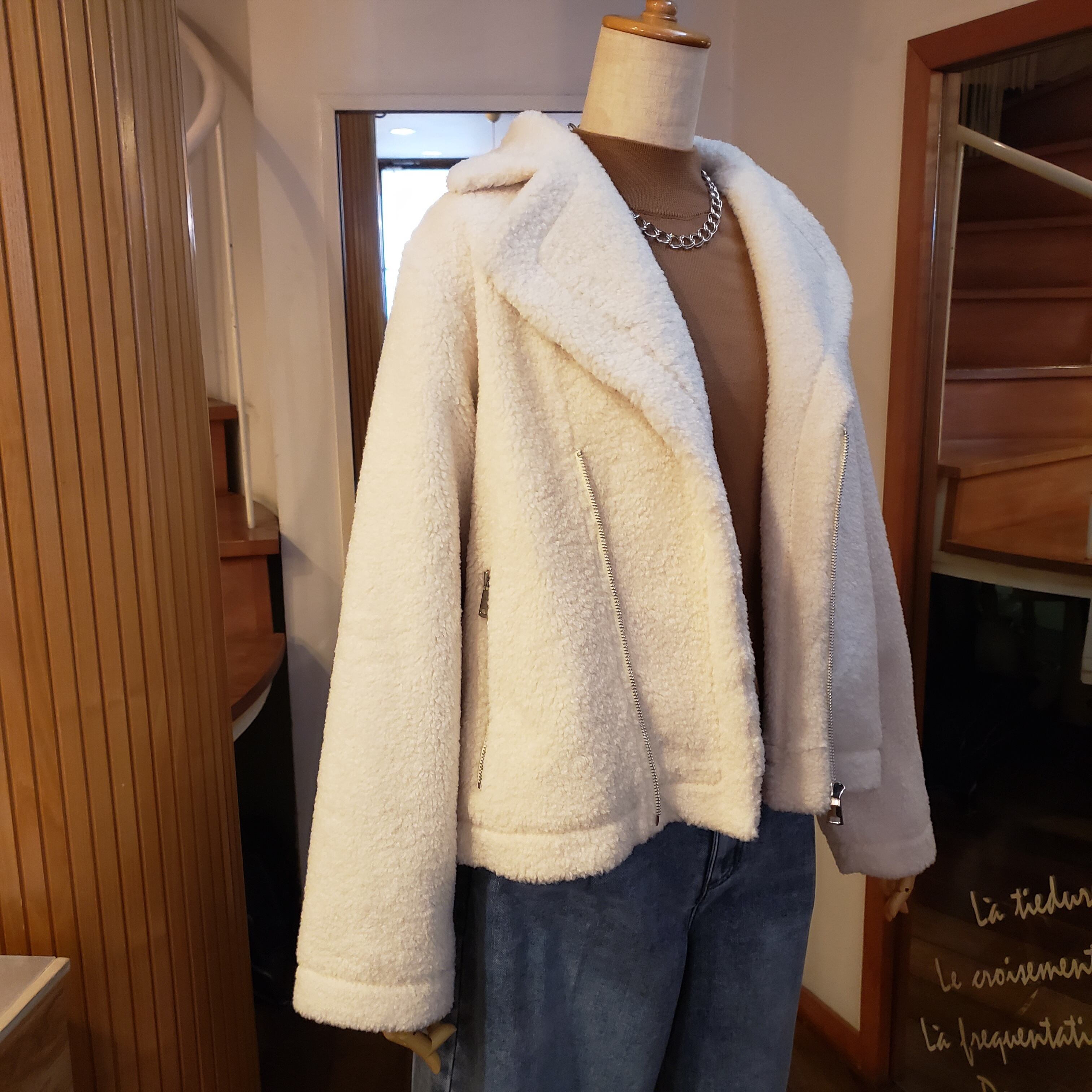 ハードなイメージのライダースを柔らかで優しさのあるボア素材が程よい大人な雰囲気に!