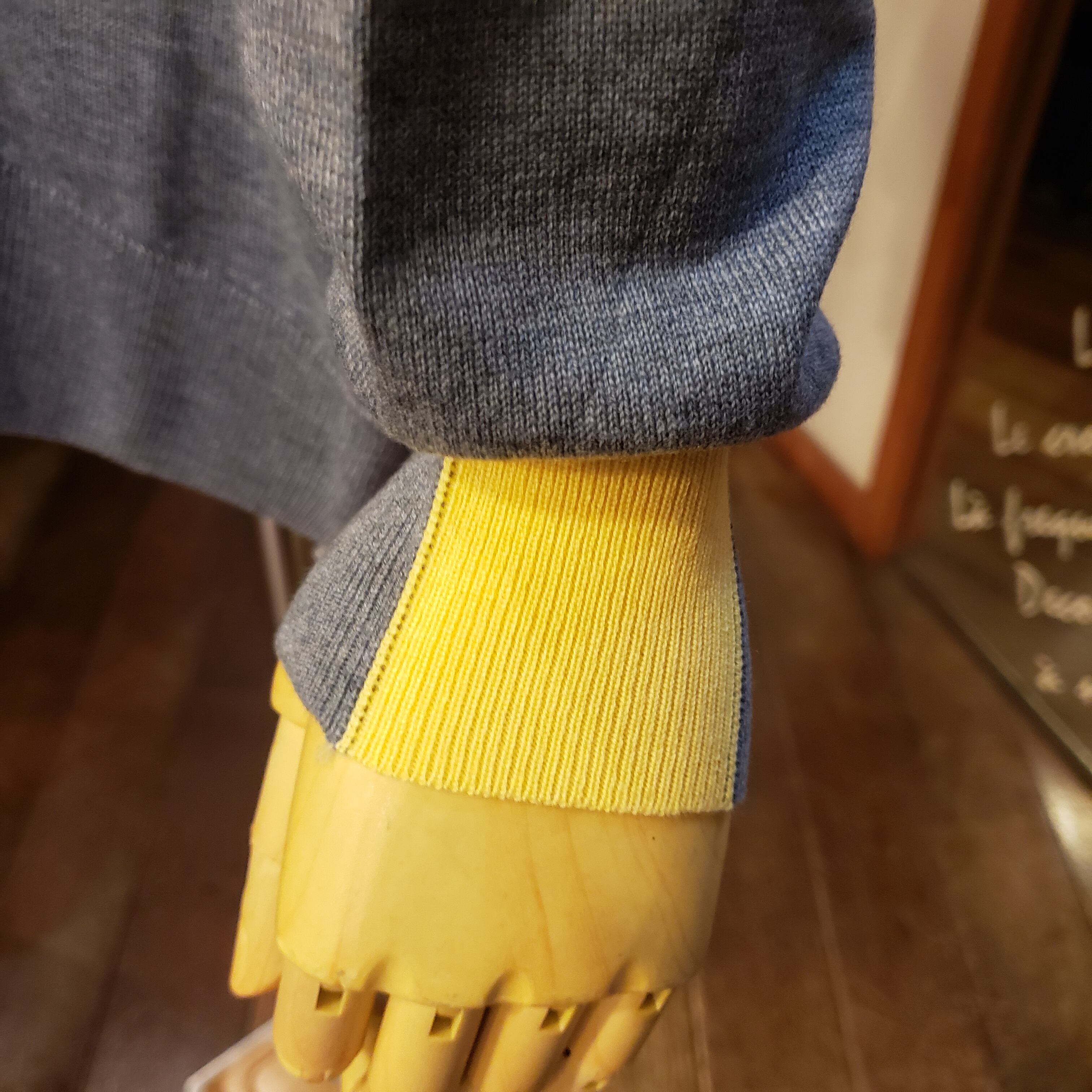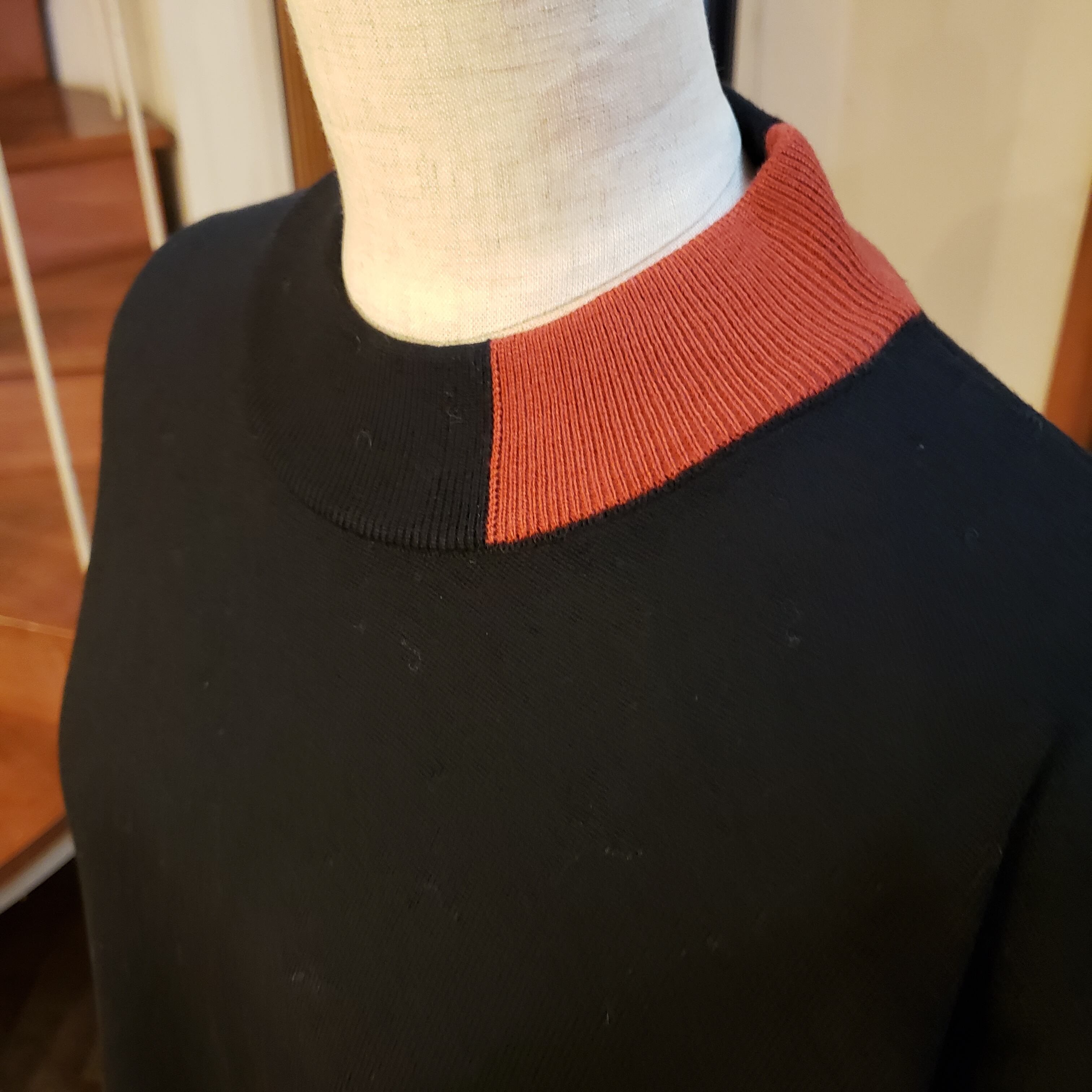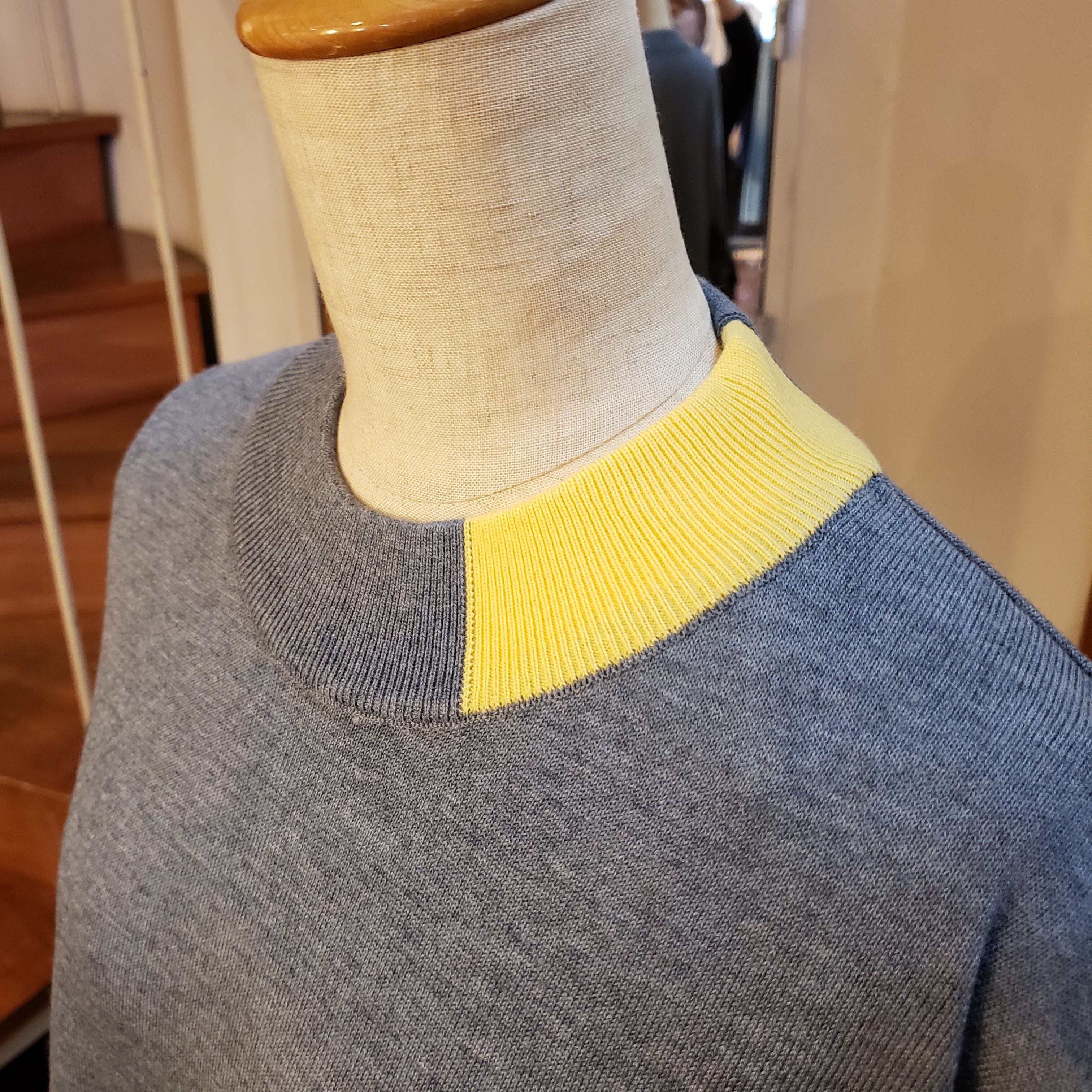 ハイゲージハイネック二ット。ポイント使いの配色がさりげないアクセントに!