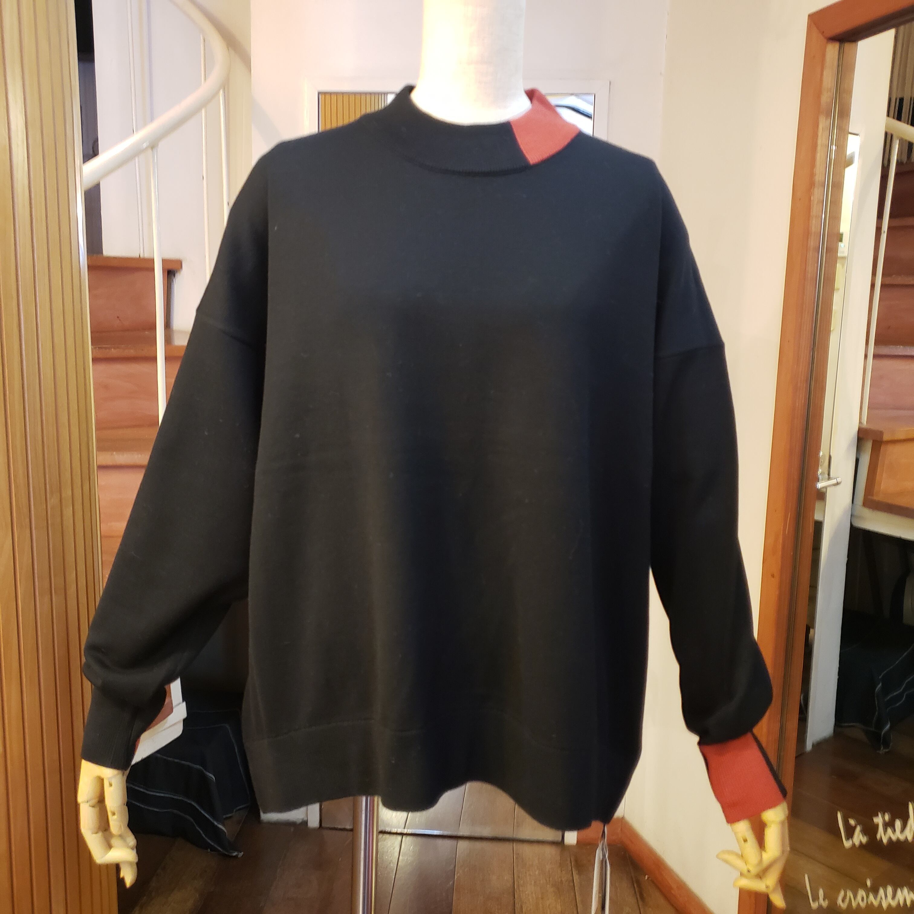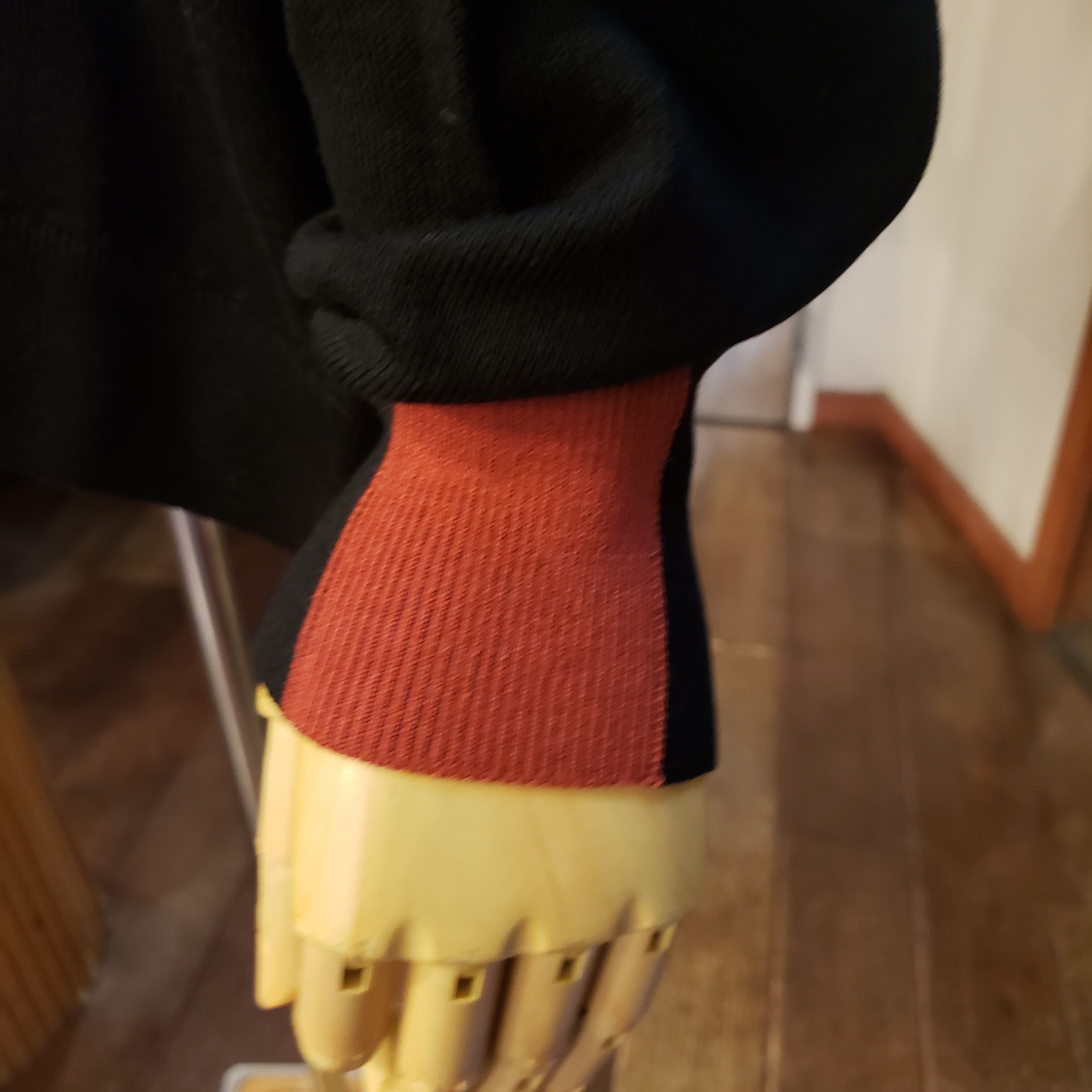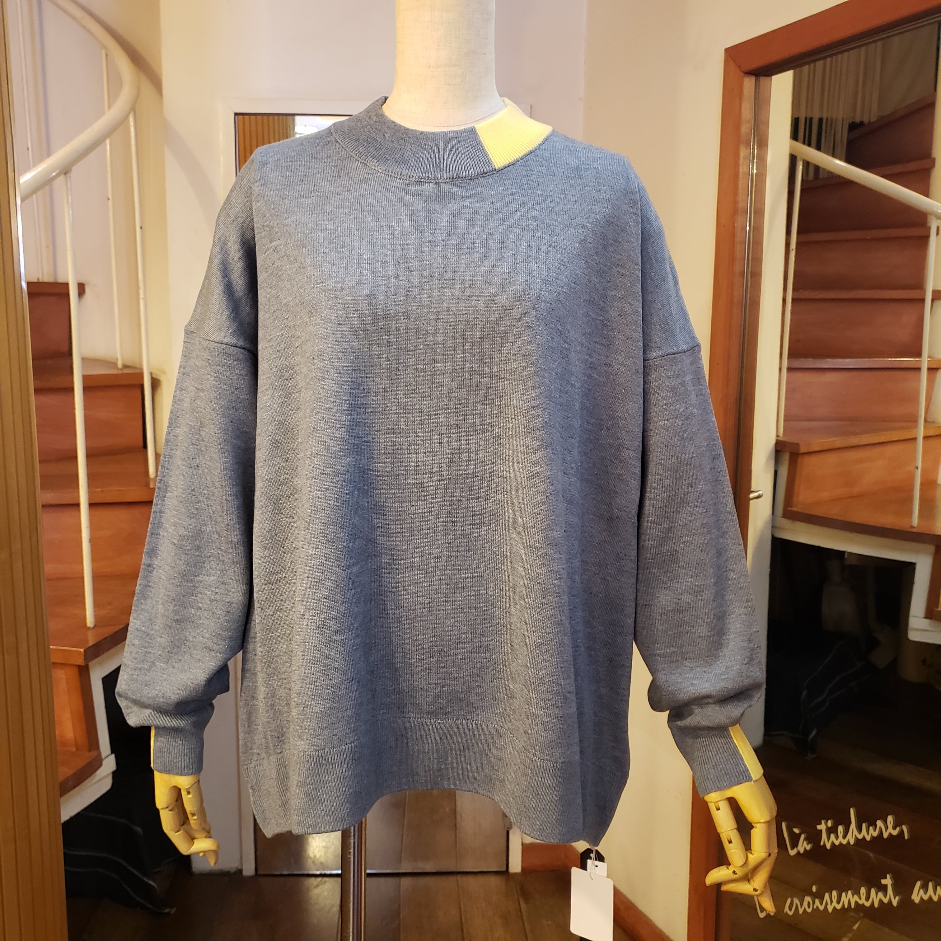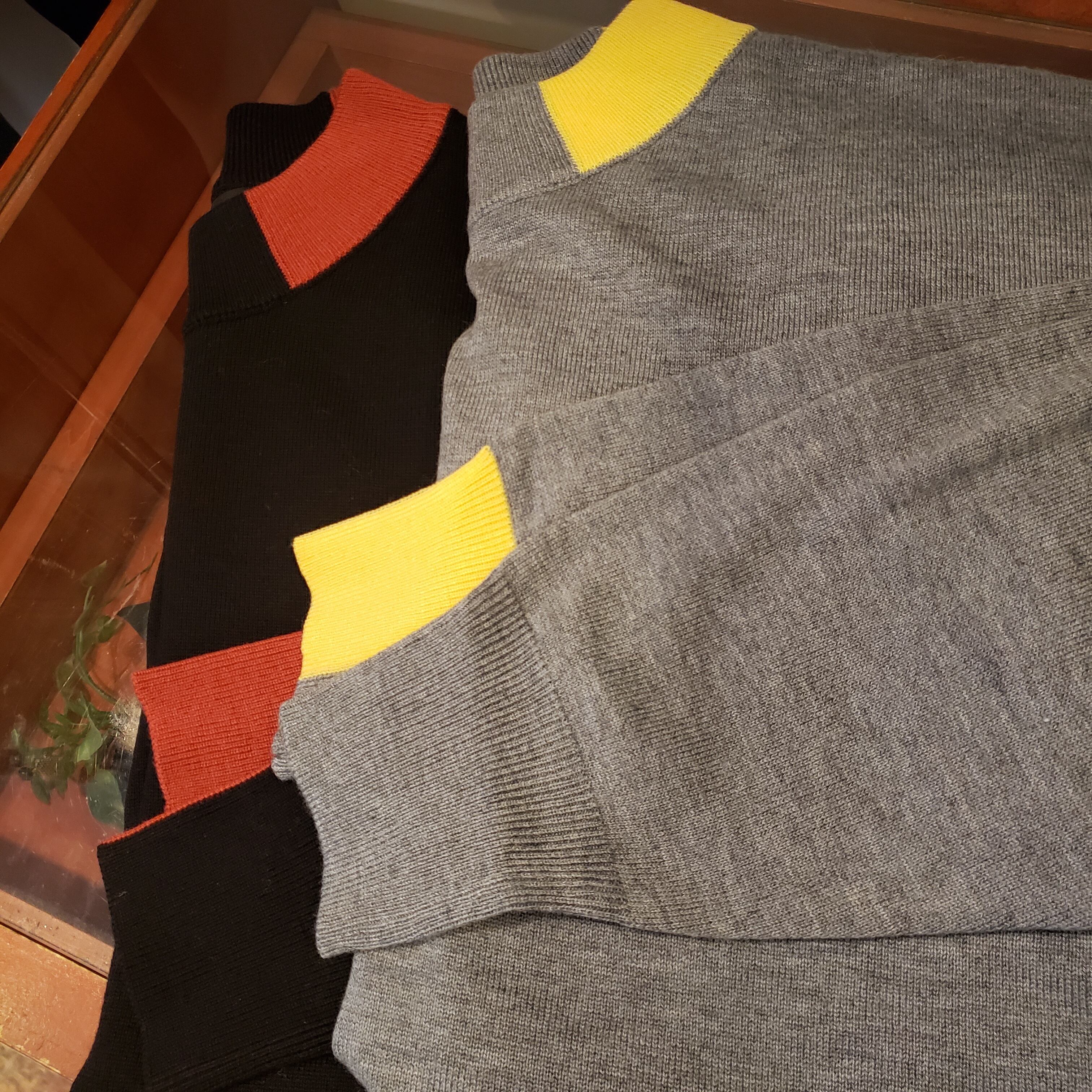 ハイゲージハイネック二ット。ポイント使いの配色がさりげないアクセントに!