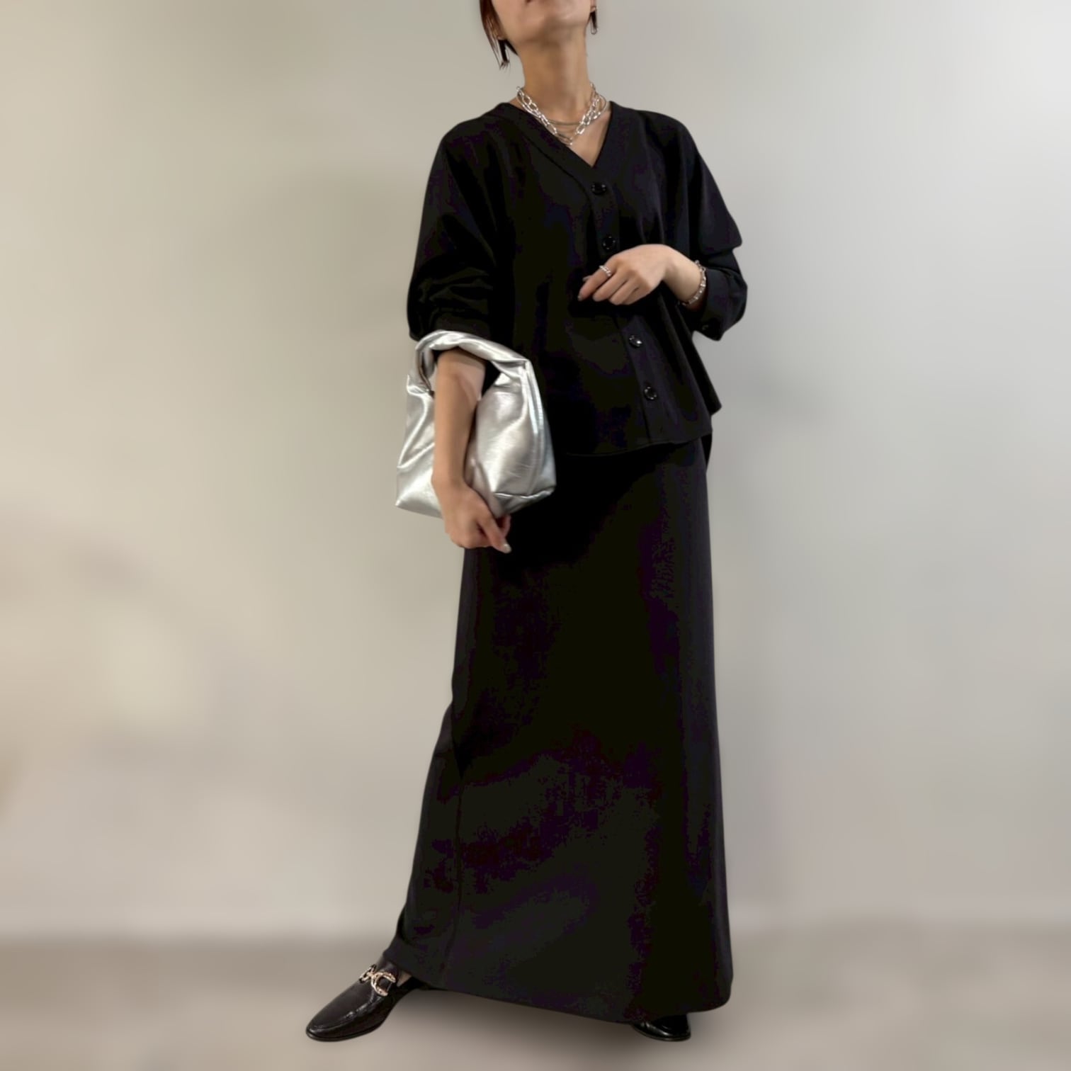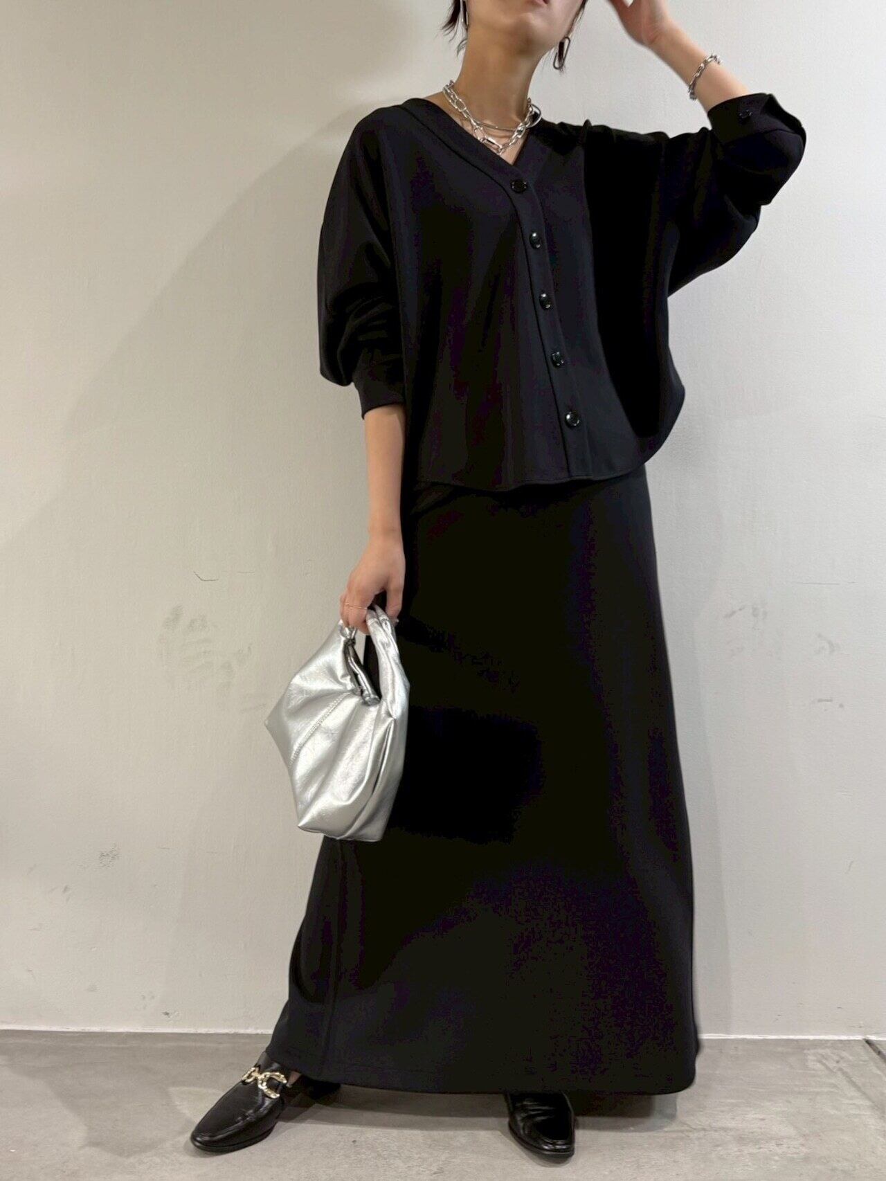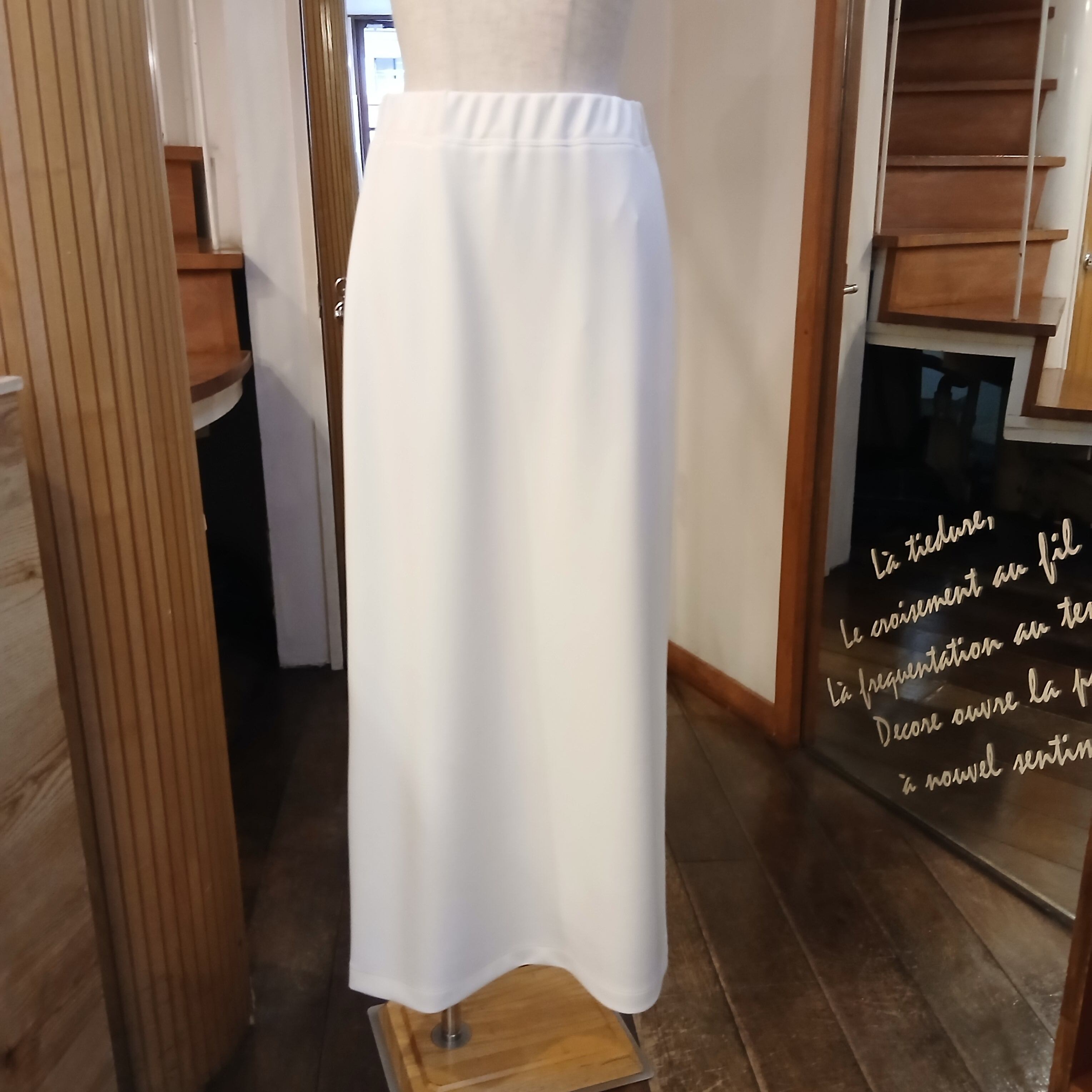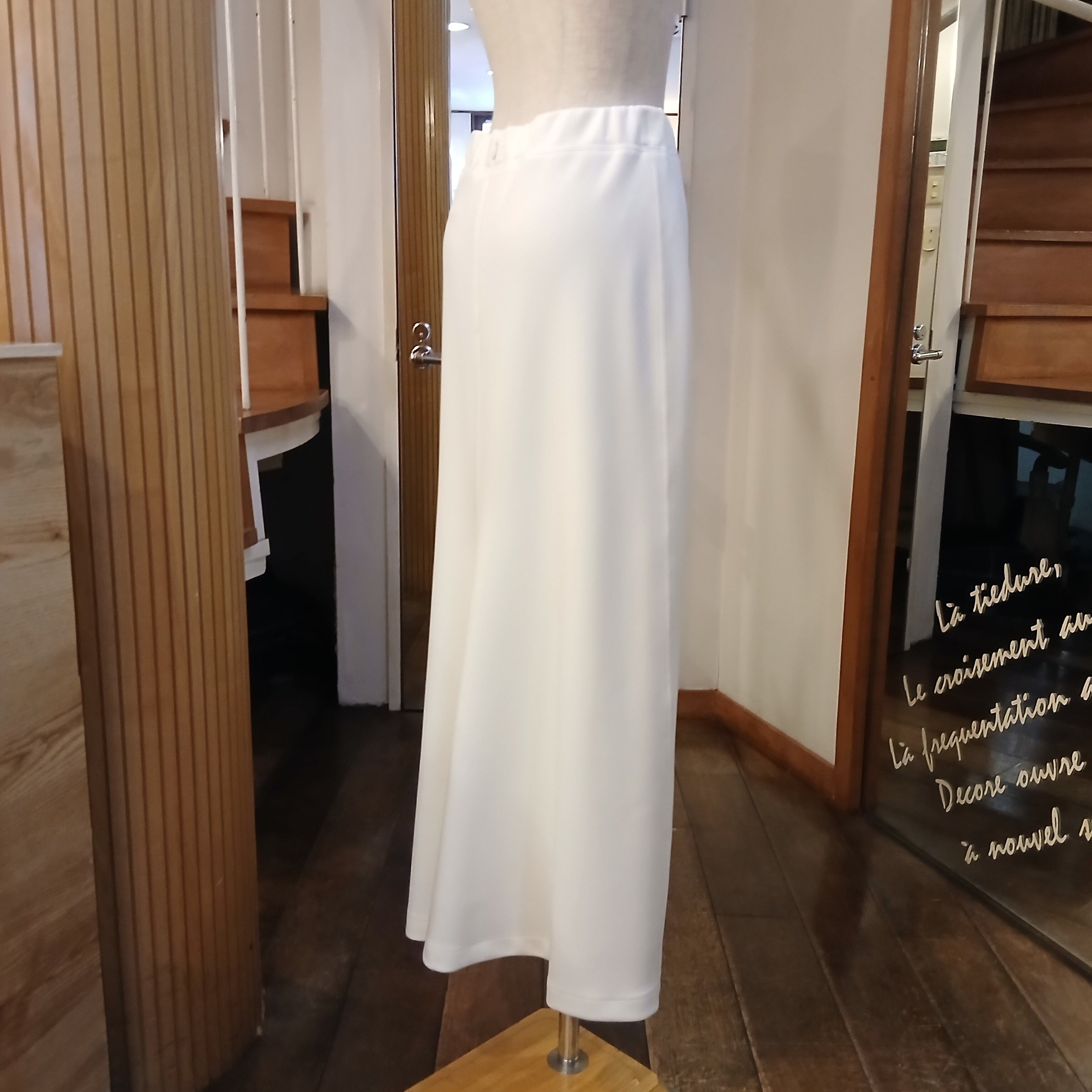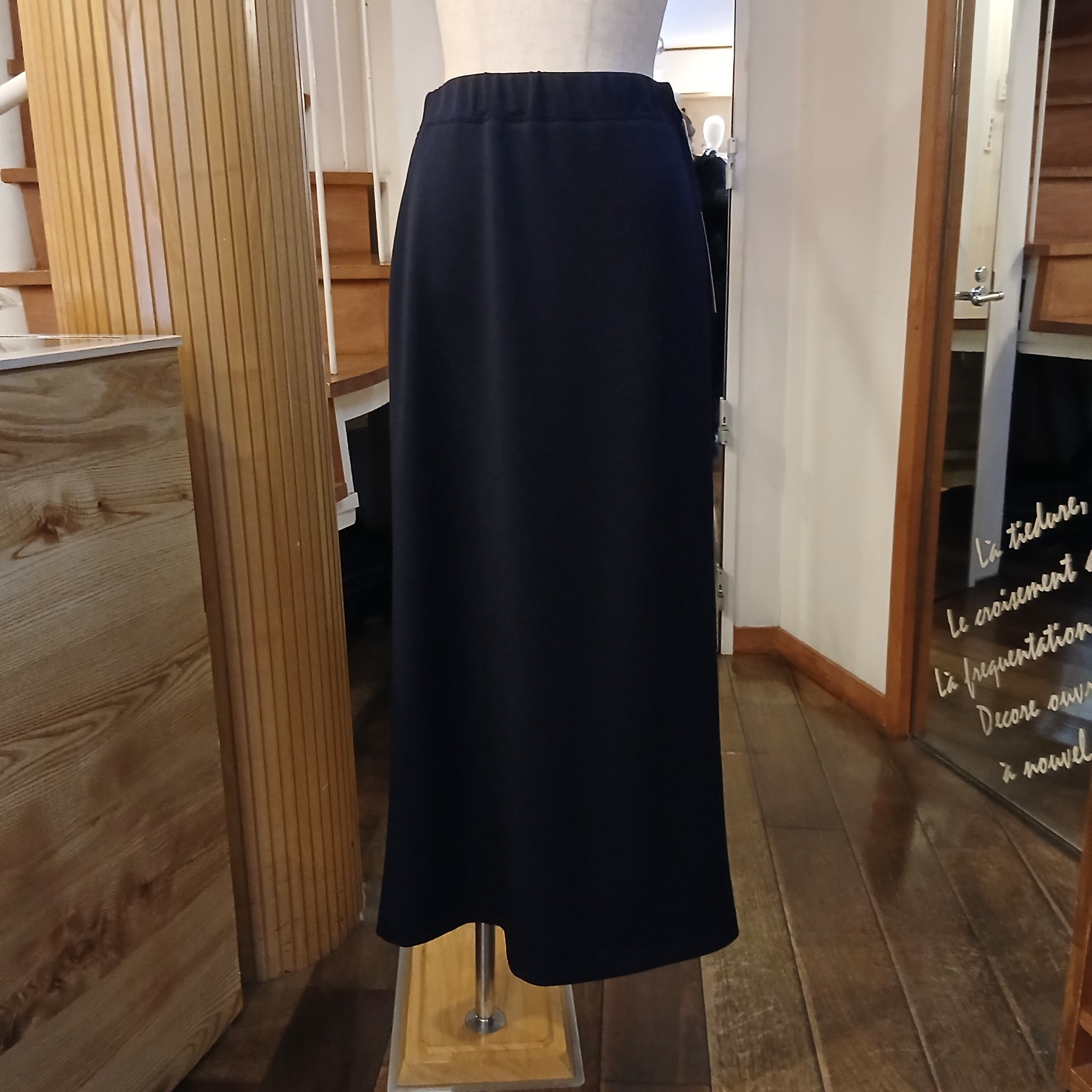なめらかでソフトな肌触りが特徴のジャージ素材を使⽤したロング丈スカート。ウエストからヒップあたりまではタイトめにし裾に向かって少しフレアを出した⼤⼈の⼥性らしいシルエットです。後ろ⾝頃の裾に施したタックデザインで歩く度に揺れるフレアラインがポイント。ウエストはゴム仕様のため楽な履き⼼地です。