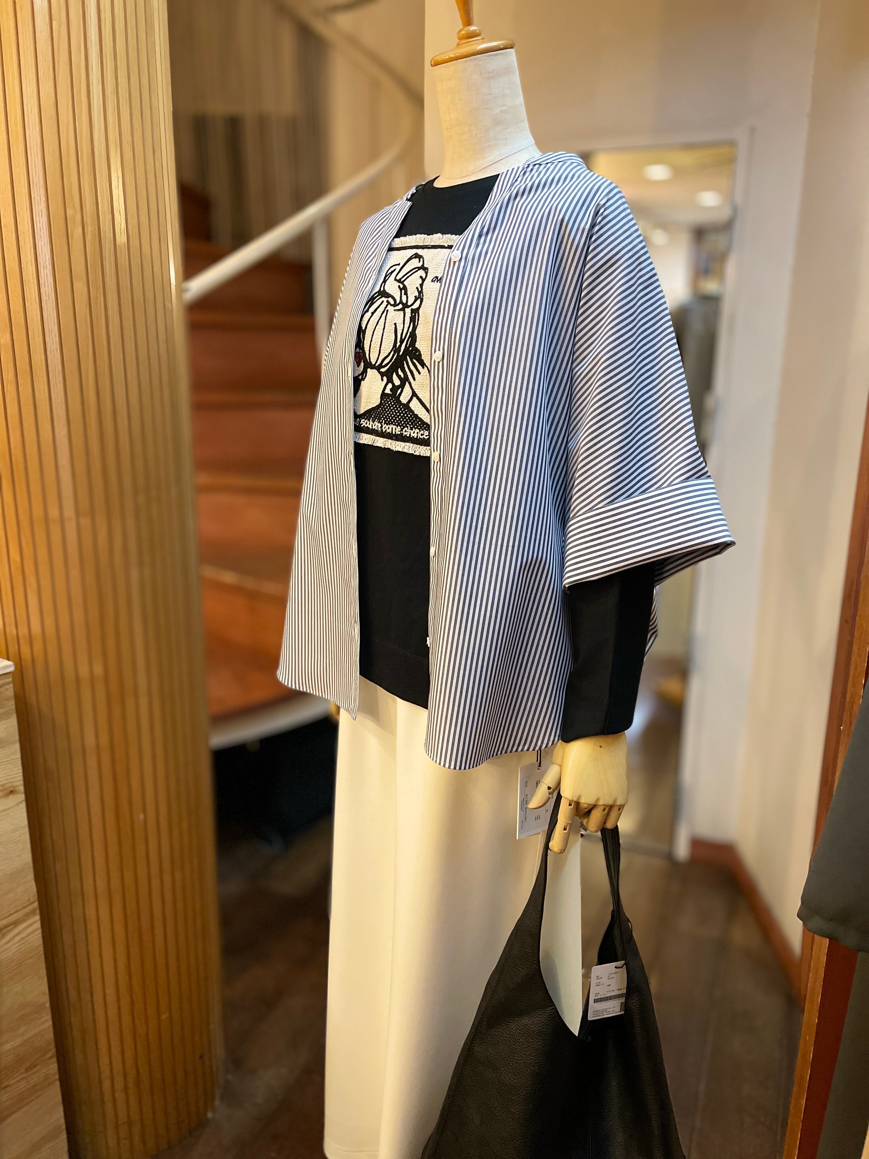 パンツにもスカートにも合わせやすいシャツです。羽織りとしてもOK!