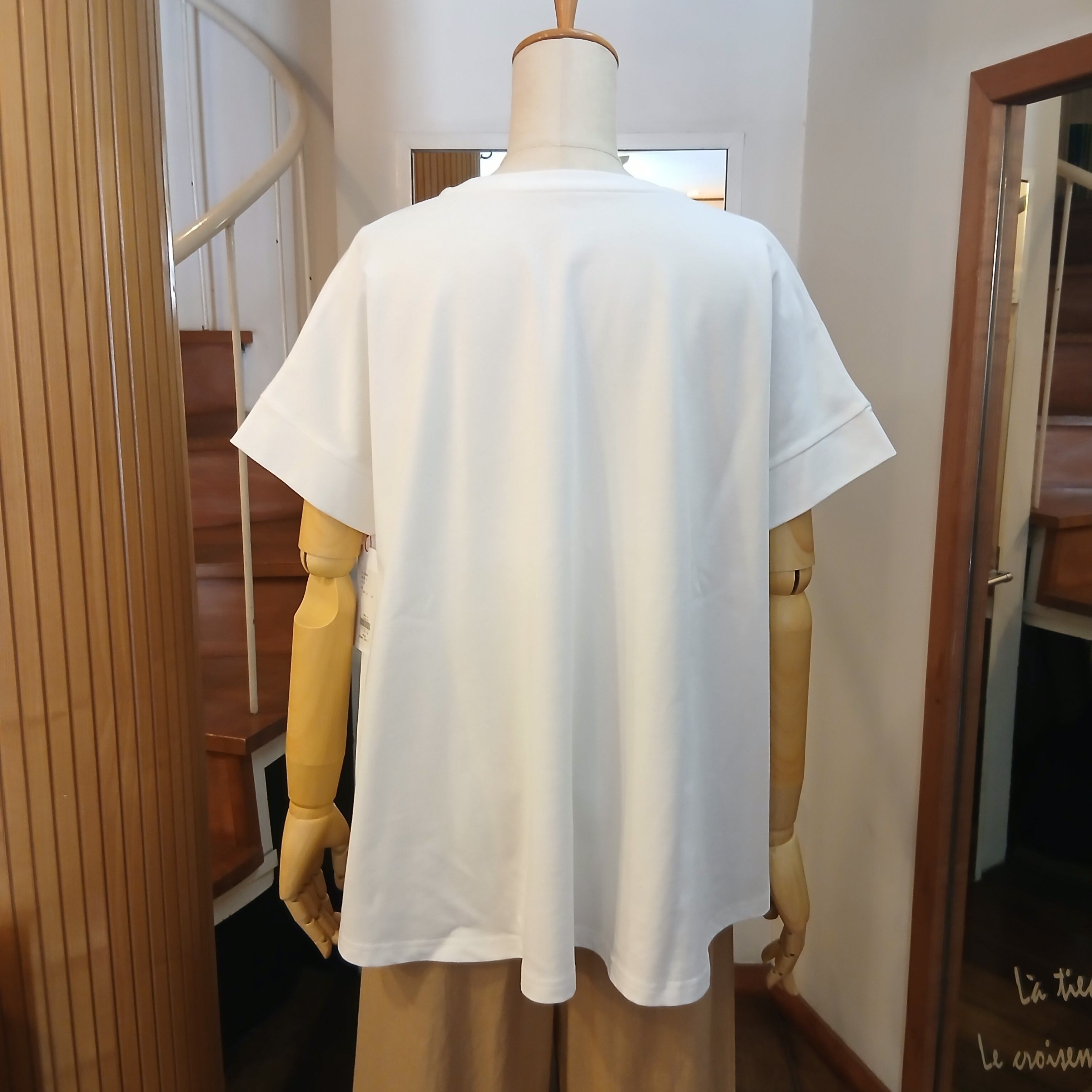 前後差のある着丈と裾が前振りになったデザインなのですっきり見えするプルオーバーです。