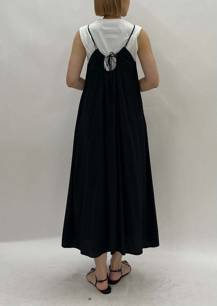広がりすぎないストンと縦長なシルエットは大人っぽく、甘さを抑えたキャミワンピです◎