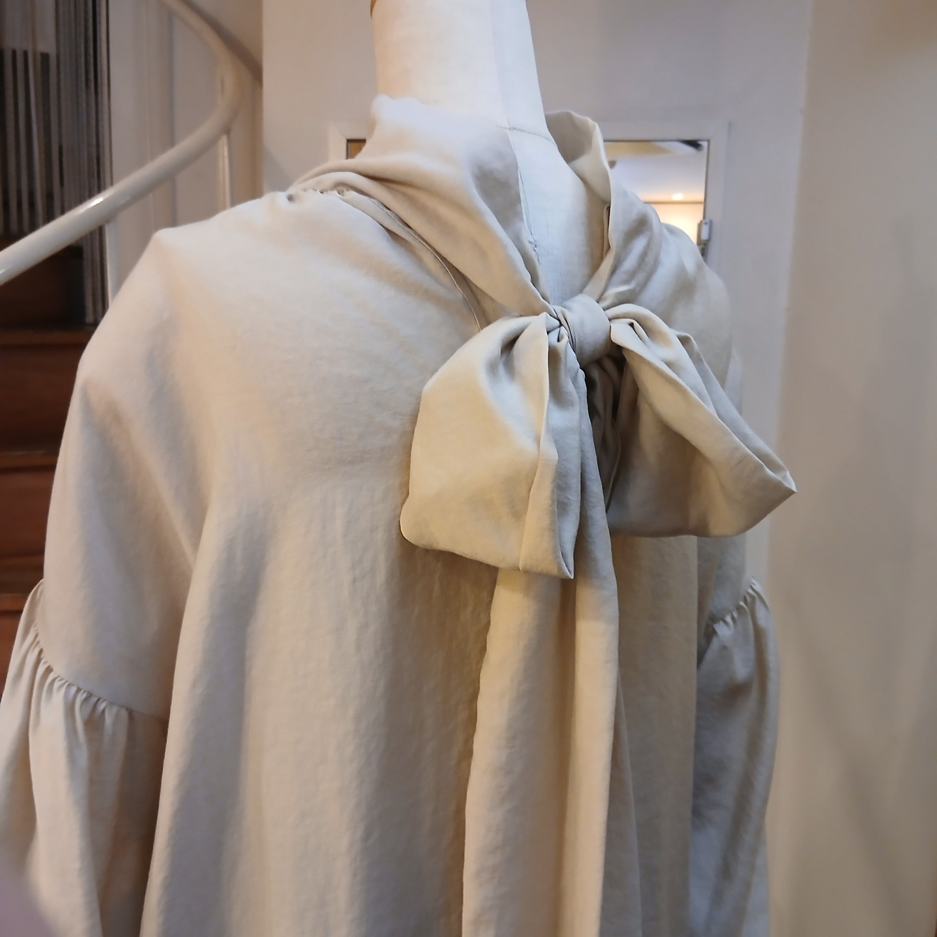 上品な光沢感とシアー感がある素材でスタイリングに合わせてアレンジ可能な長めの