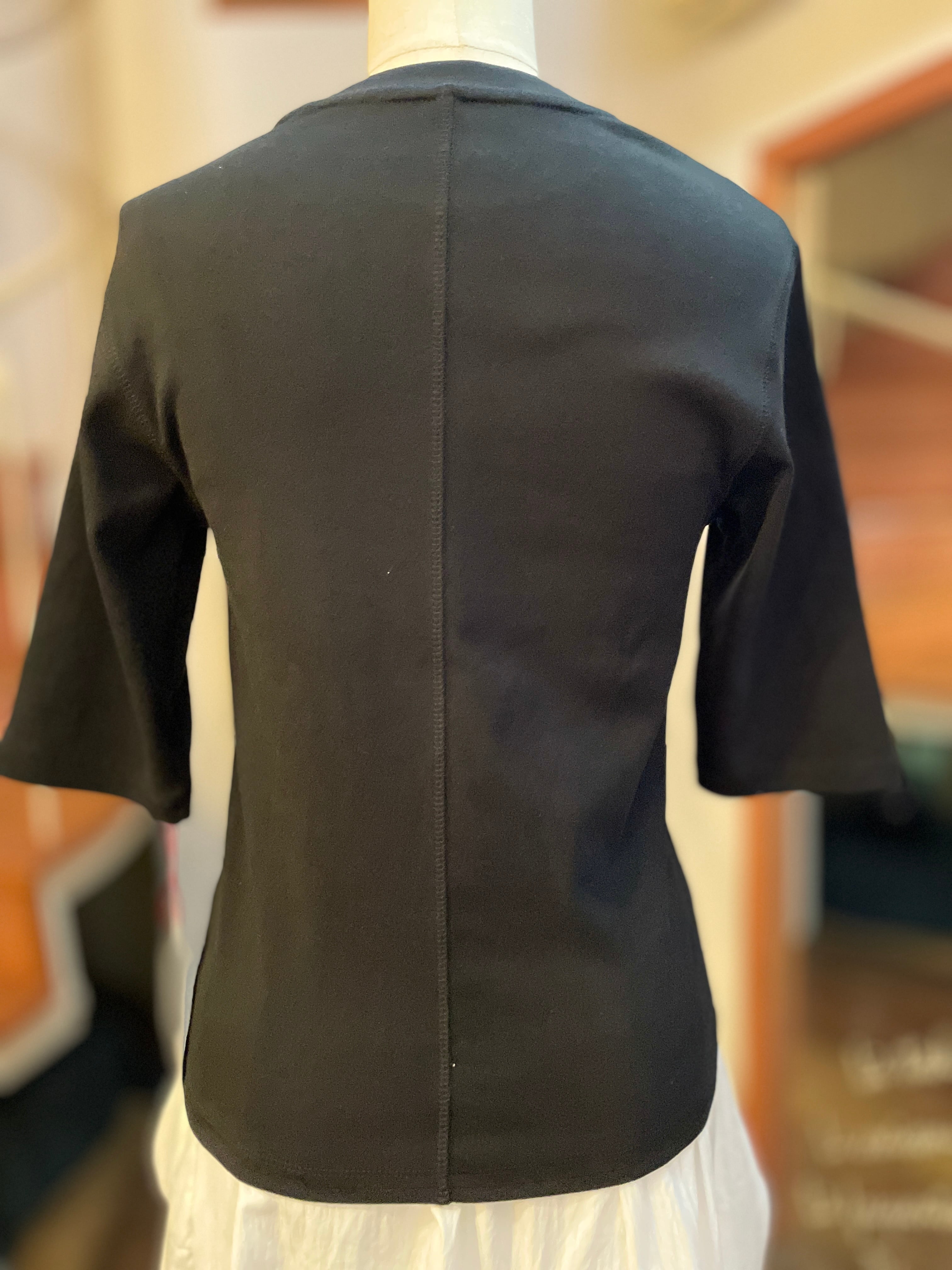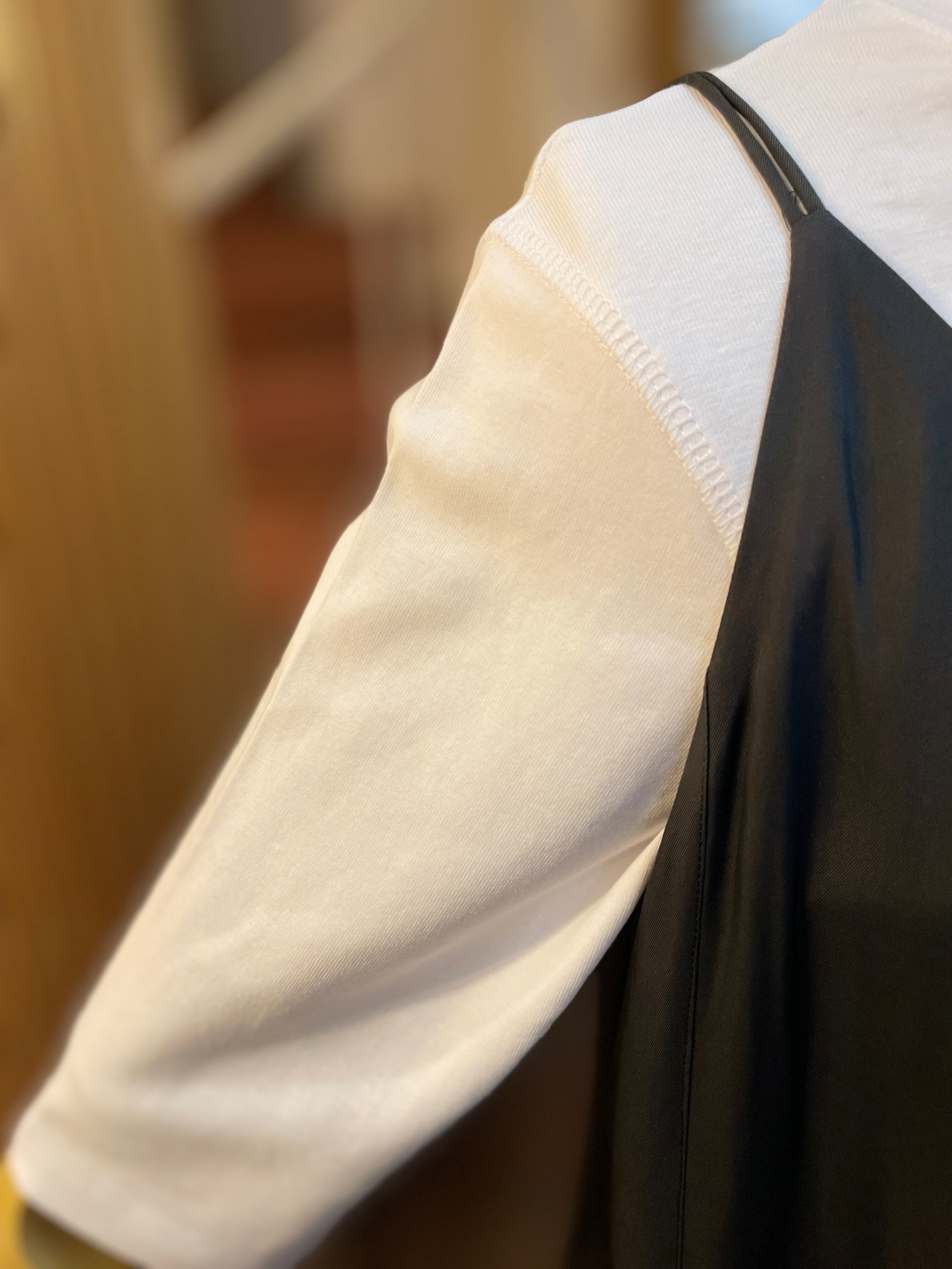 肘までカバーしてくれる五分袖、二本針のステッチも何気ないポイント◎