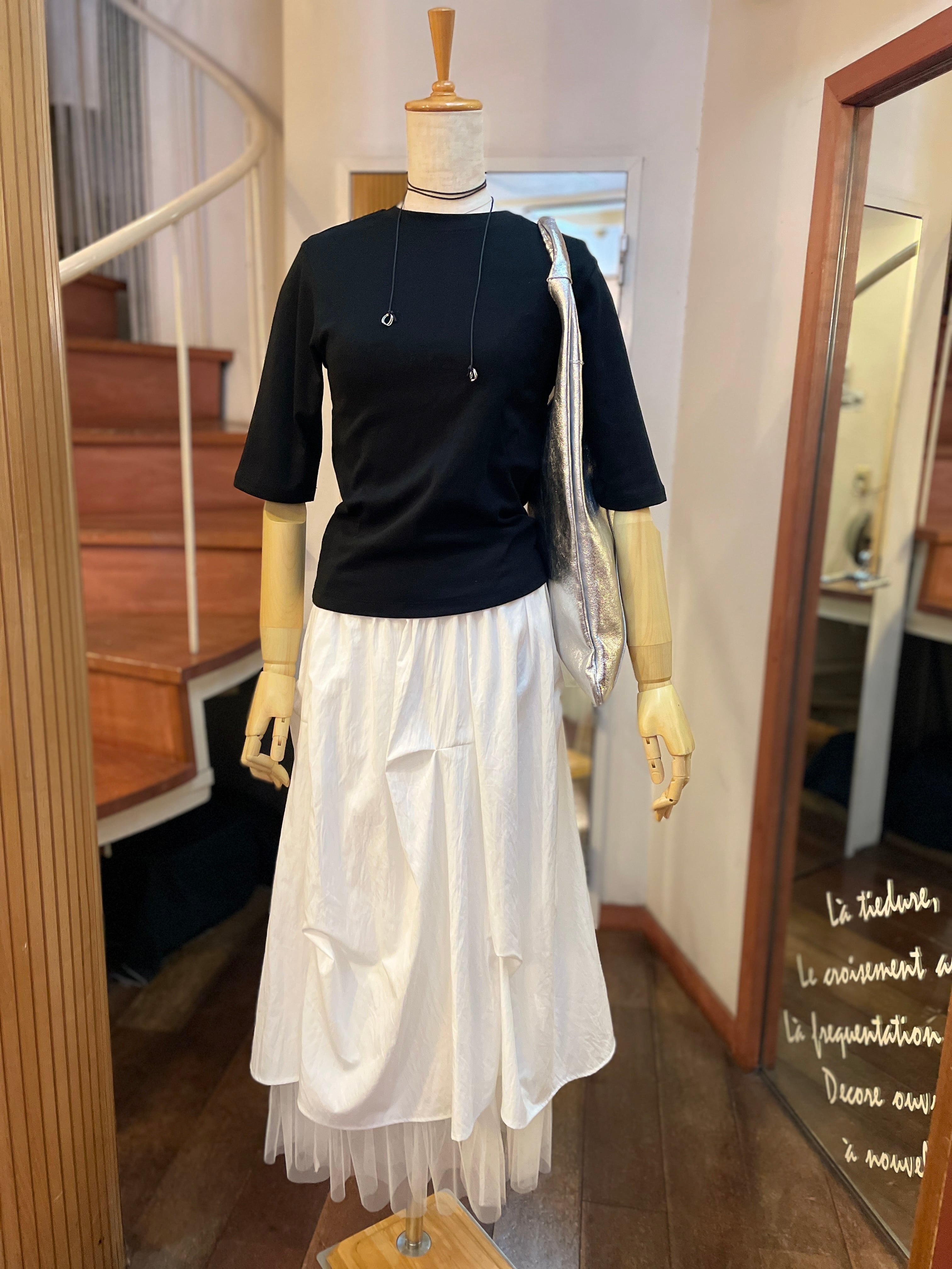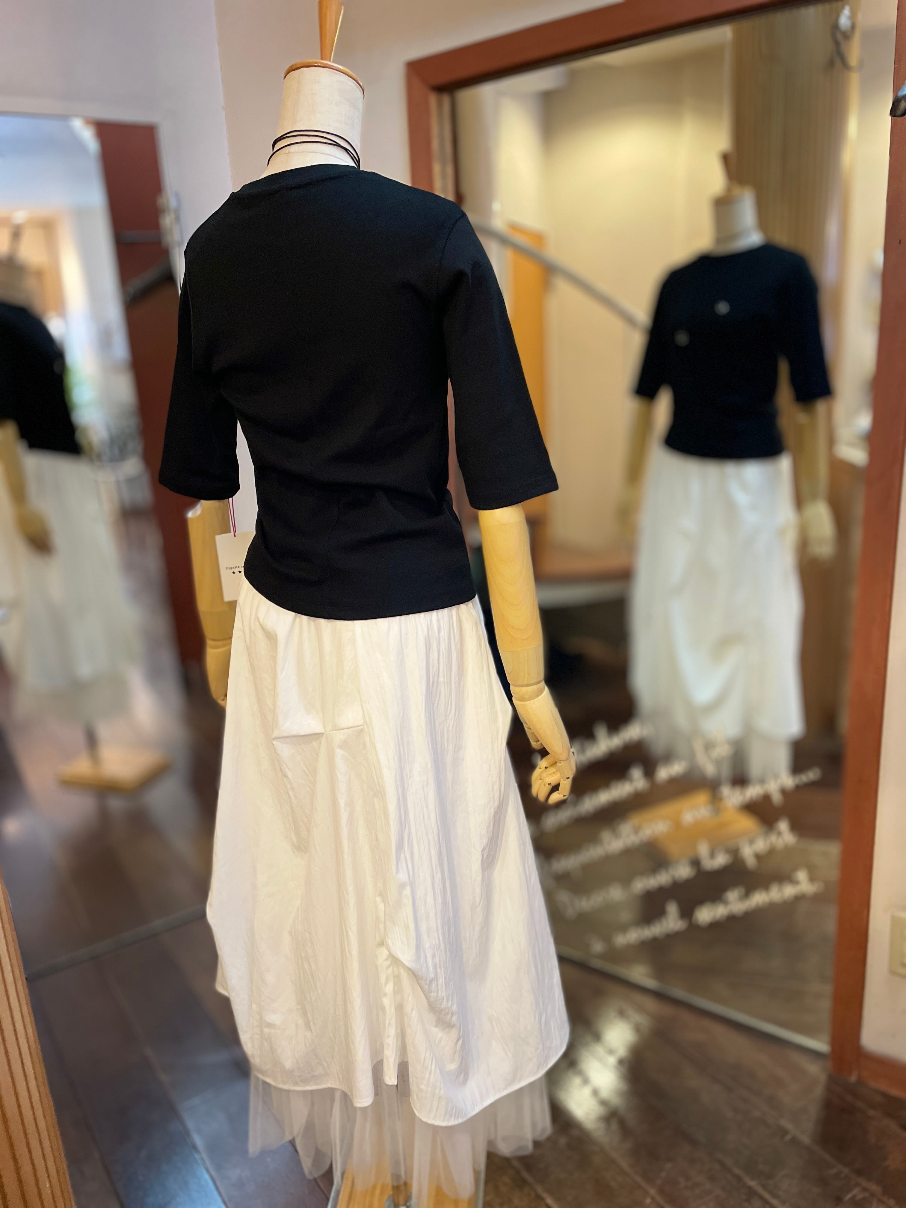 キャミOPやサロペット、ジレ等にレイヤードしやすいインナーです。