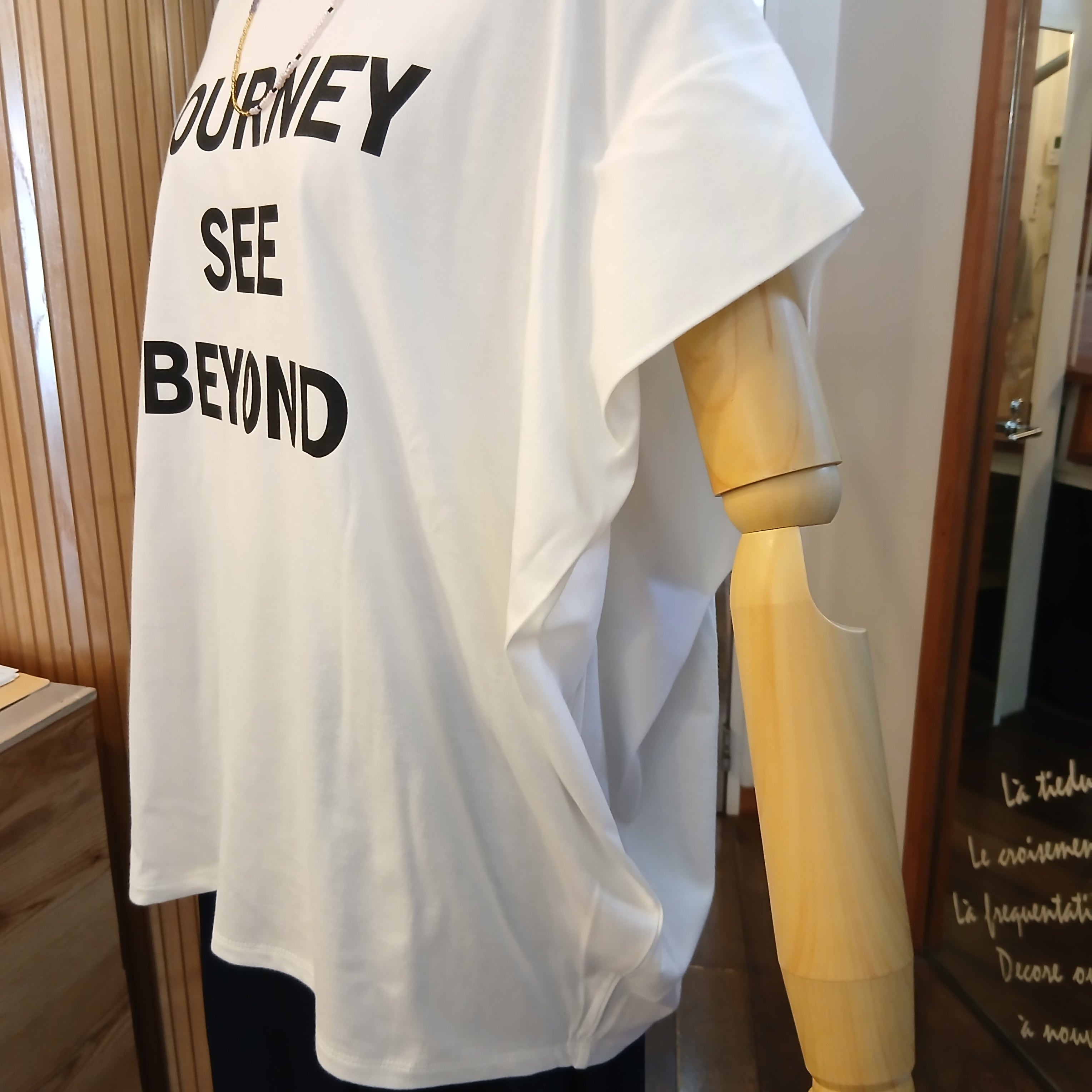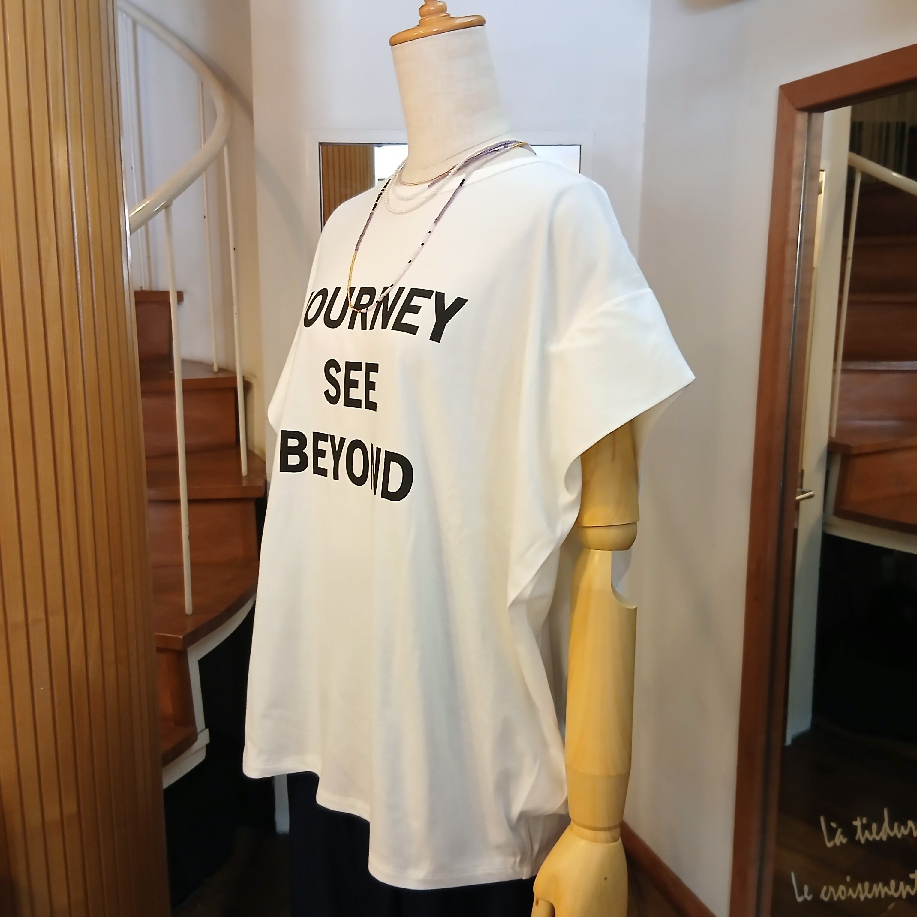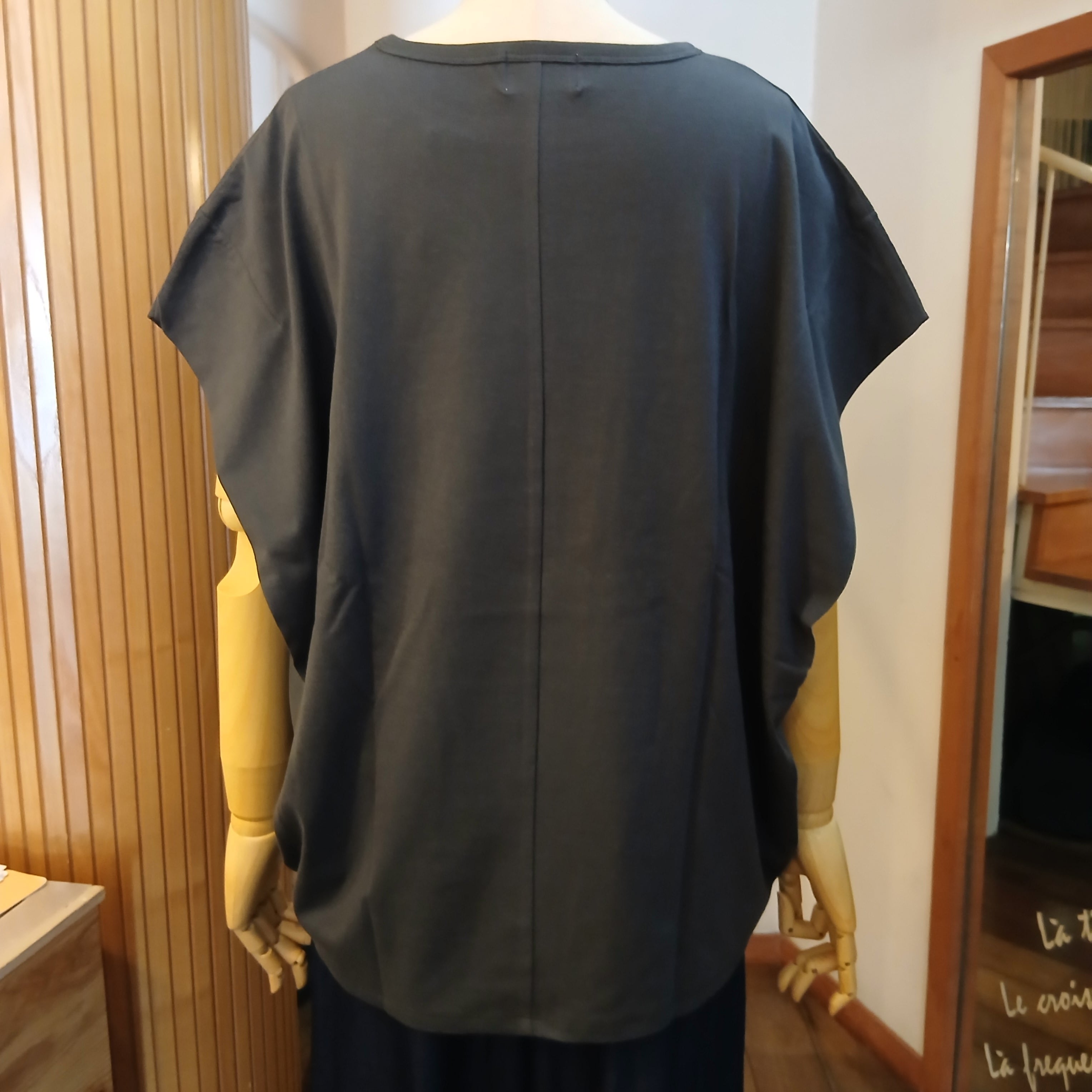 袖のタックが二の腕をカバーし、裾に向けて緩やかにコクーンシルエットです。