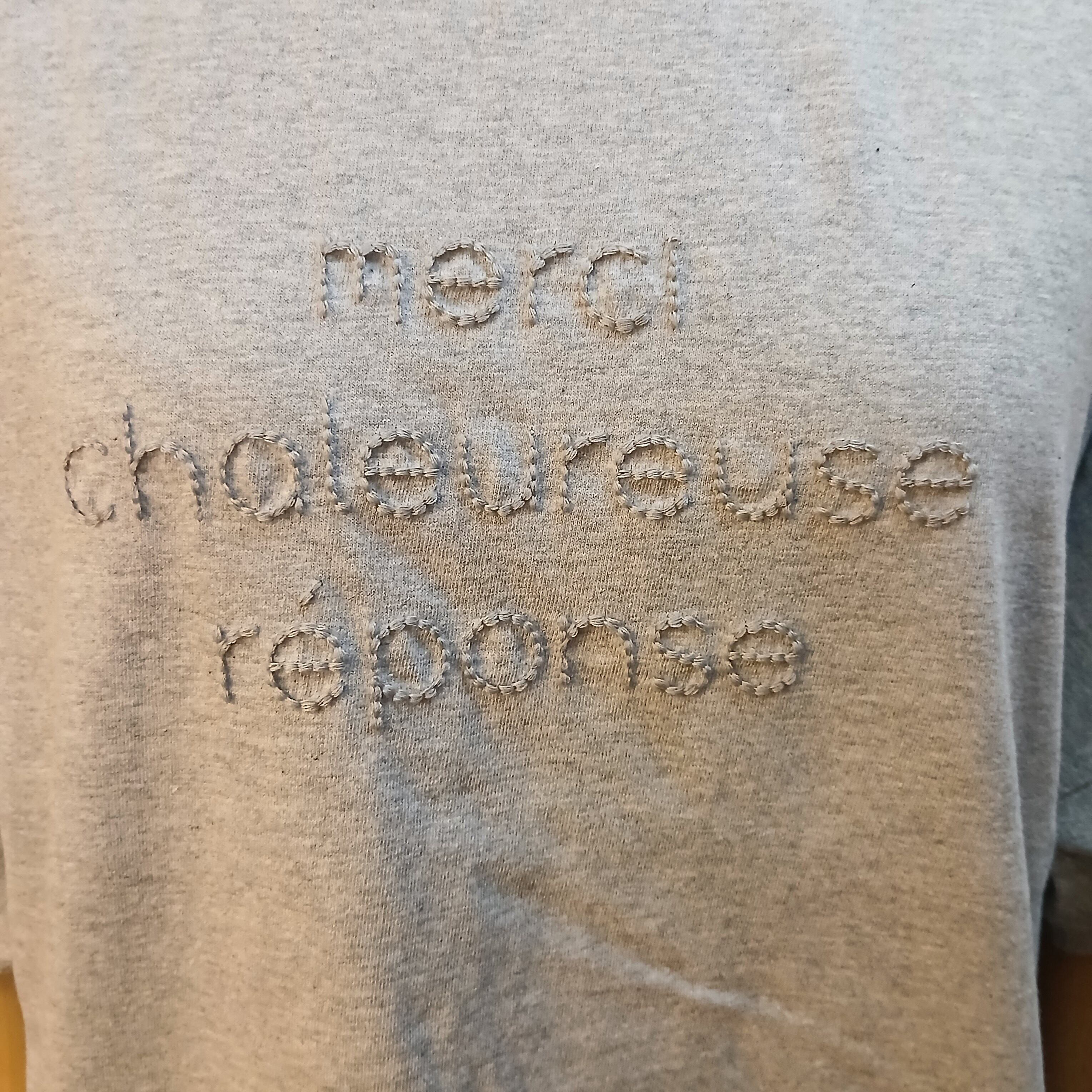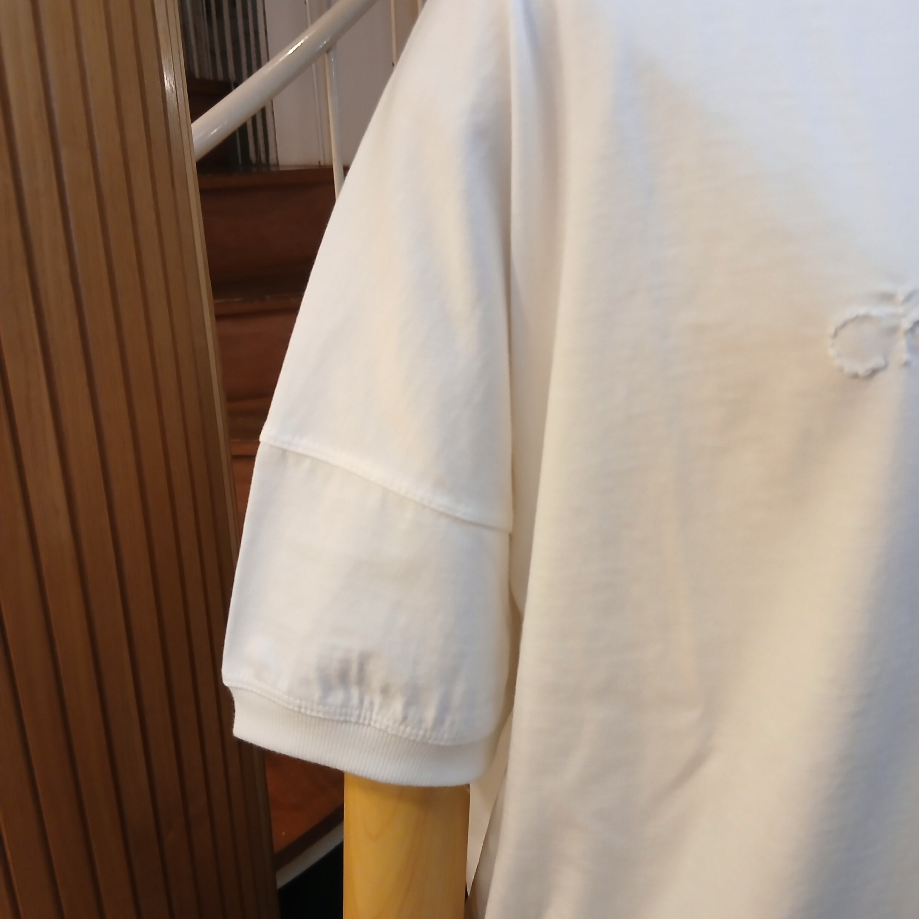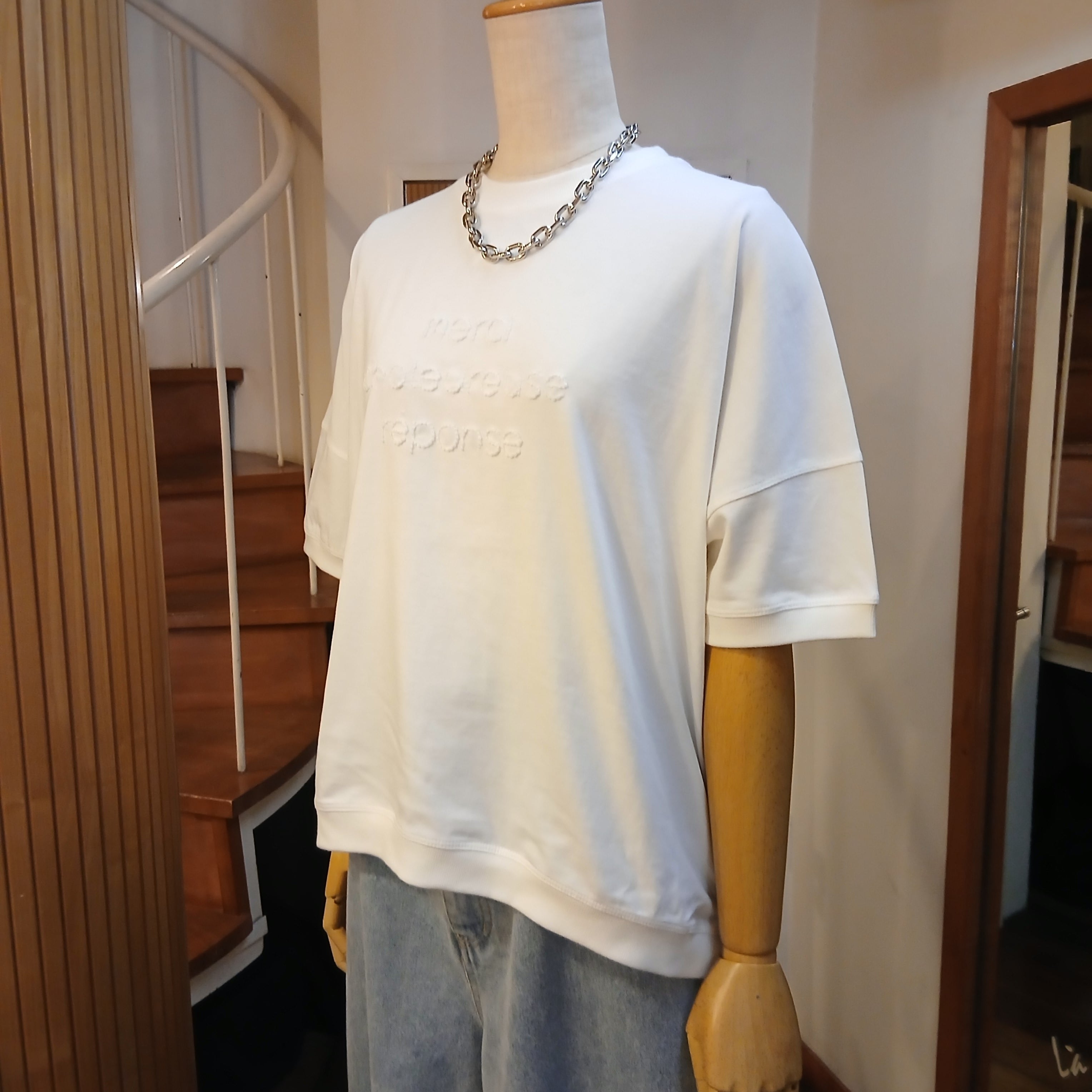 ポコポコした立体的な刺繍がポイントのクルーネックプルオーバーです。