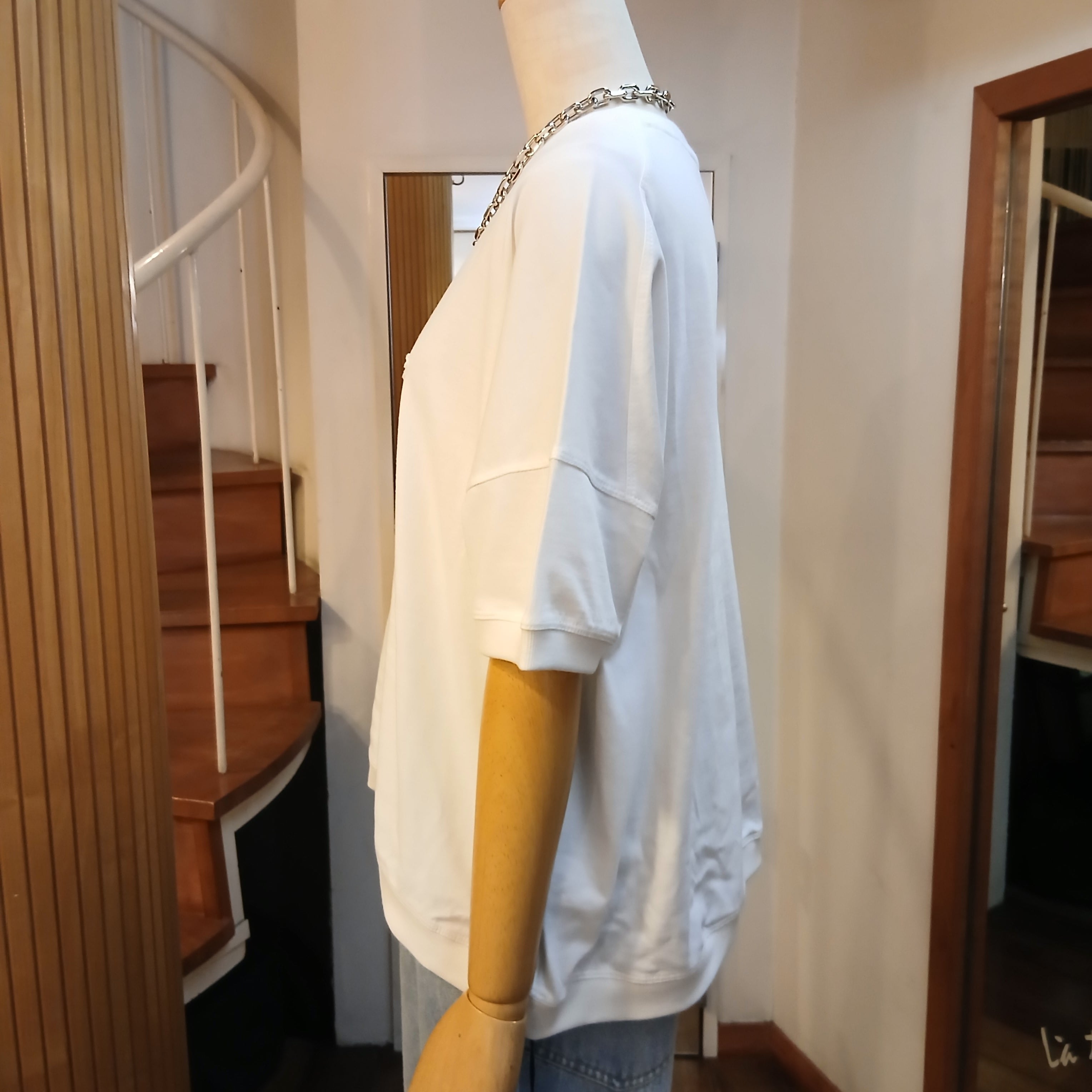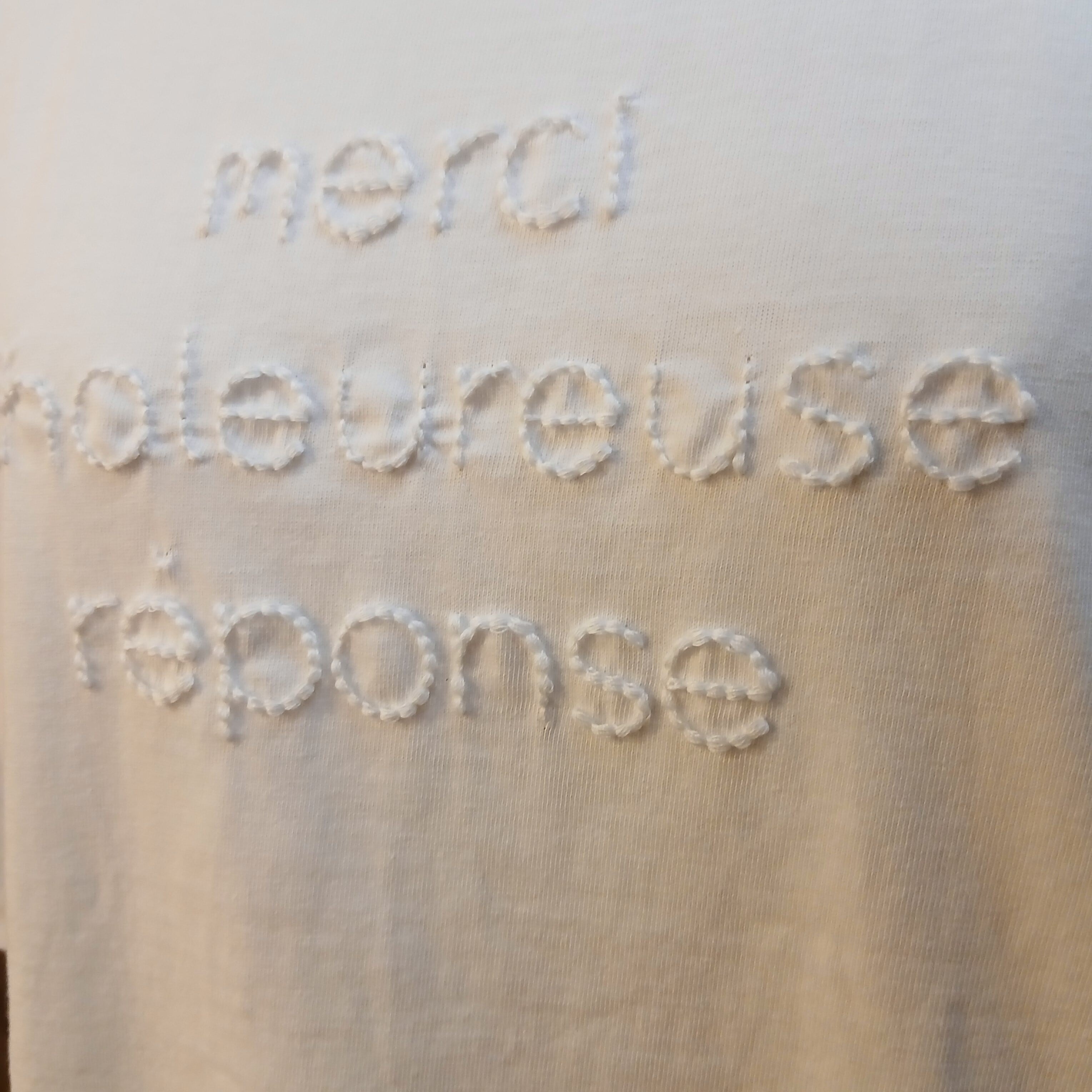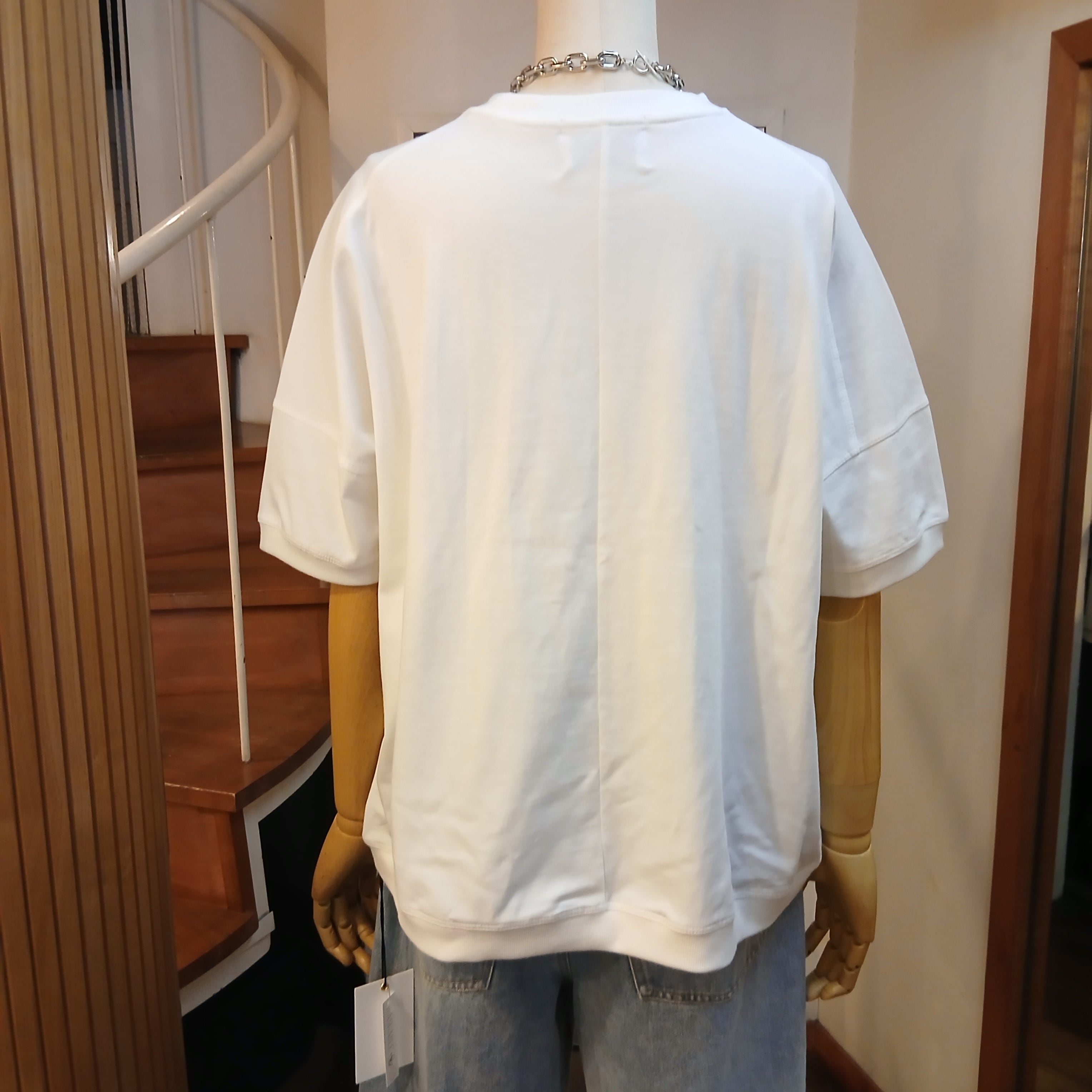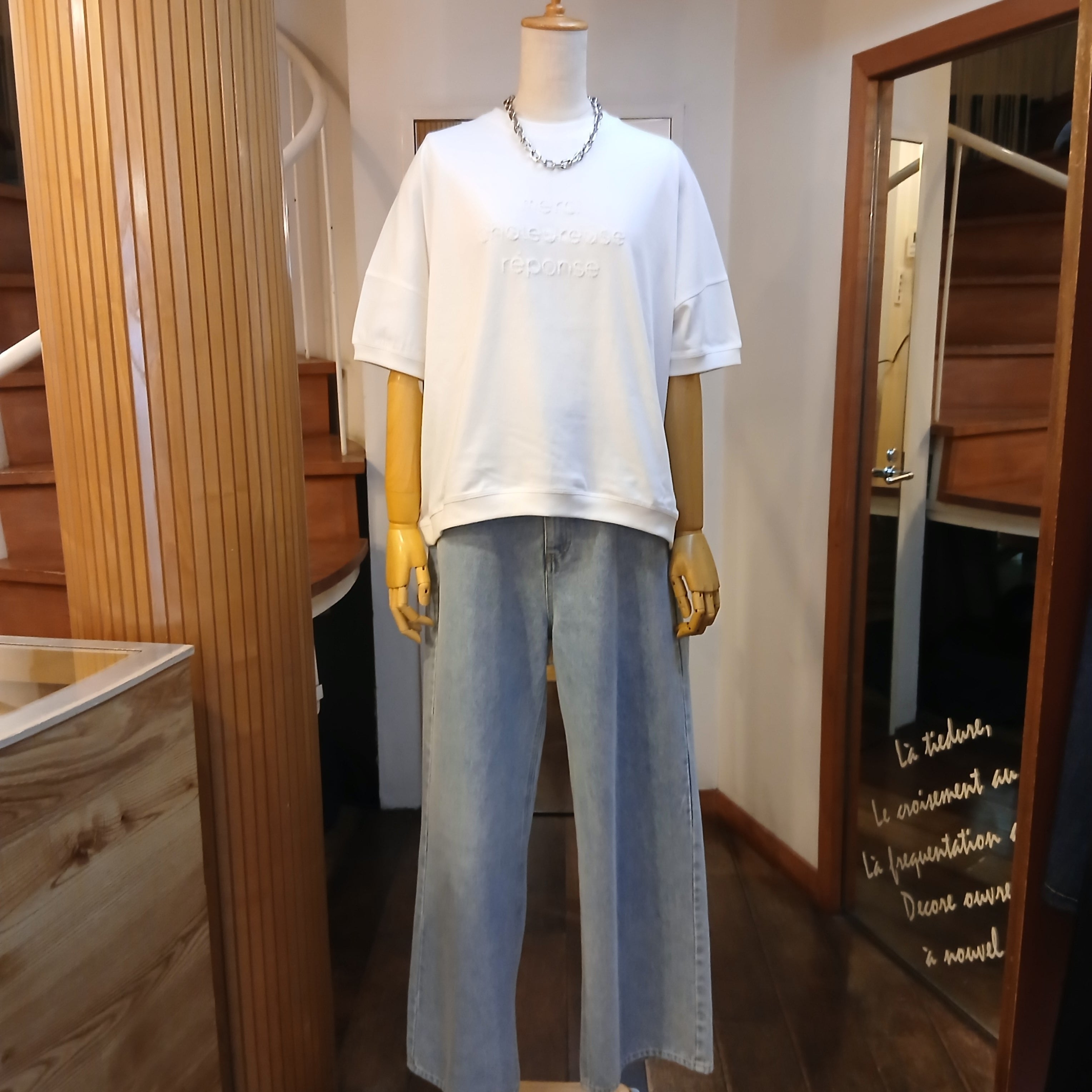 ポコポコした立体的な刺繍がポイントのクルーネックプルオーバーです。